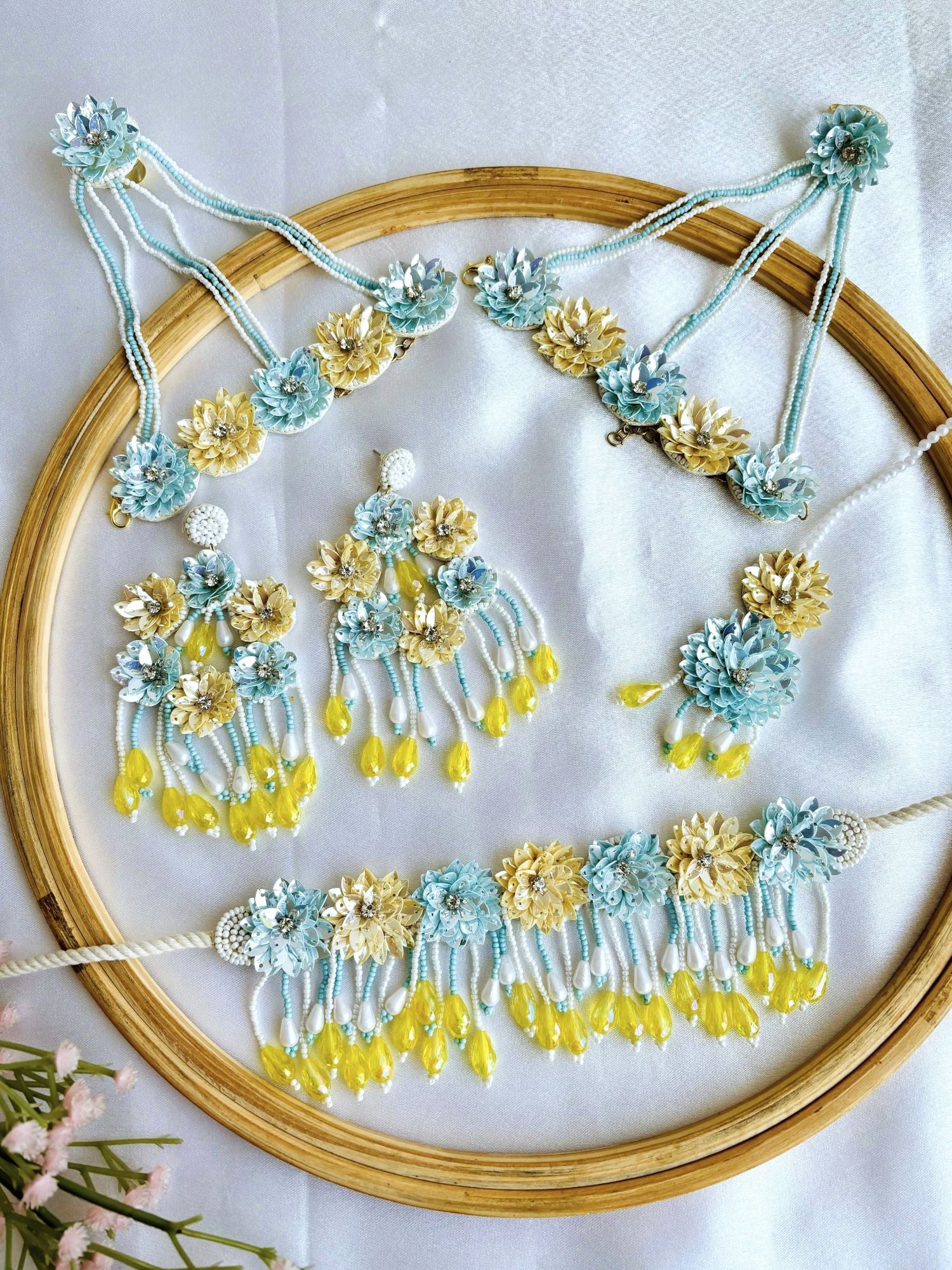 Handcrafted Pastel Pink & Powder-Blue Floral Beaded Ensemble