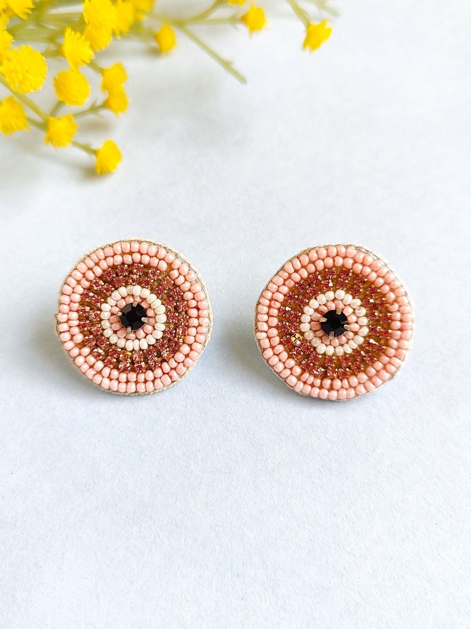 - HANDICRAFT Enchanting Pink Evil Eye Boho Beaded Studs - Unique Handmade Fashion Statement