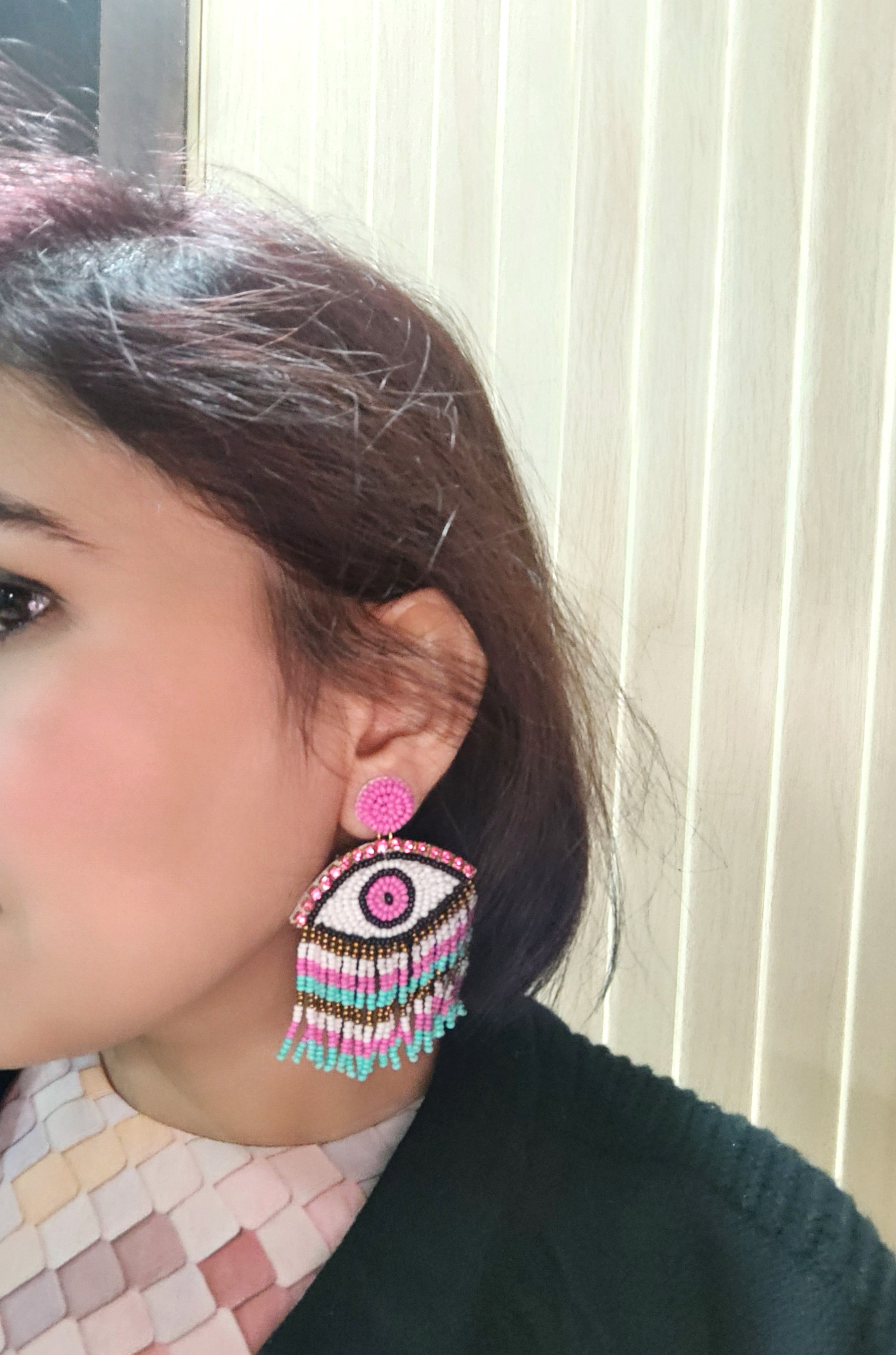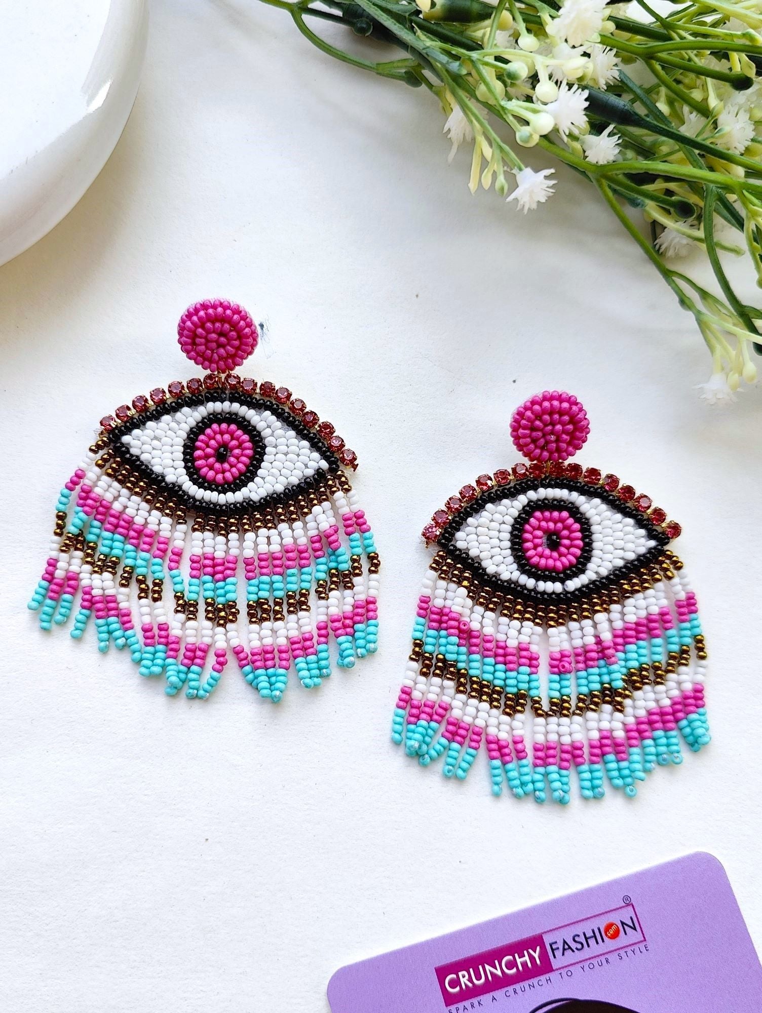 - Nature's Ethereal Dance: Handmade 'Evil Eye' Beaded Earrings for Dynamic Women and Girls
