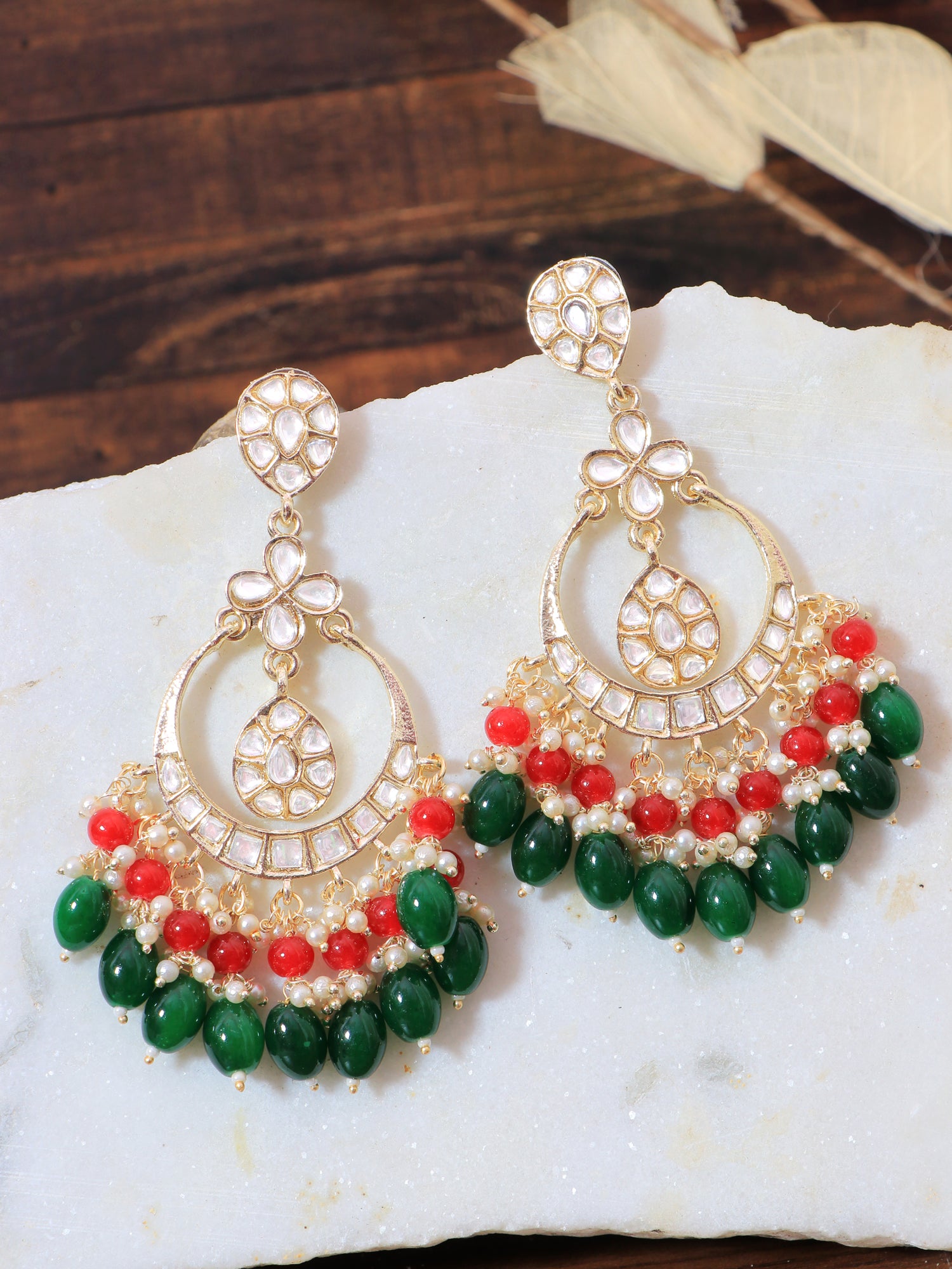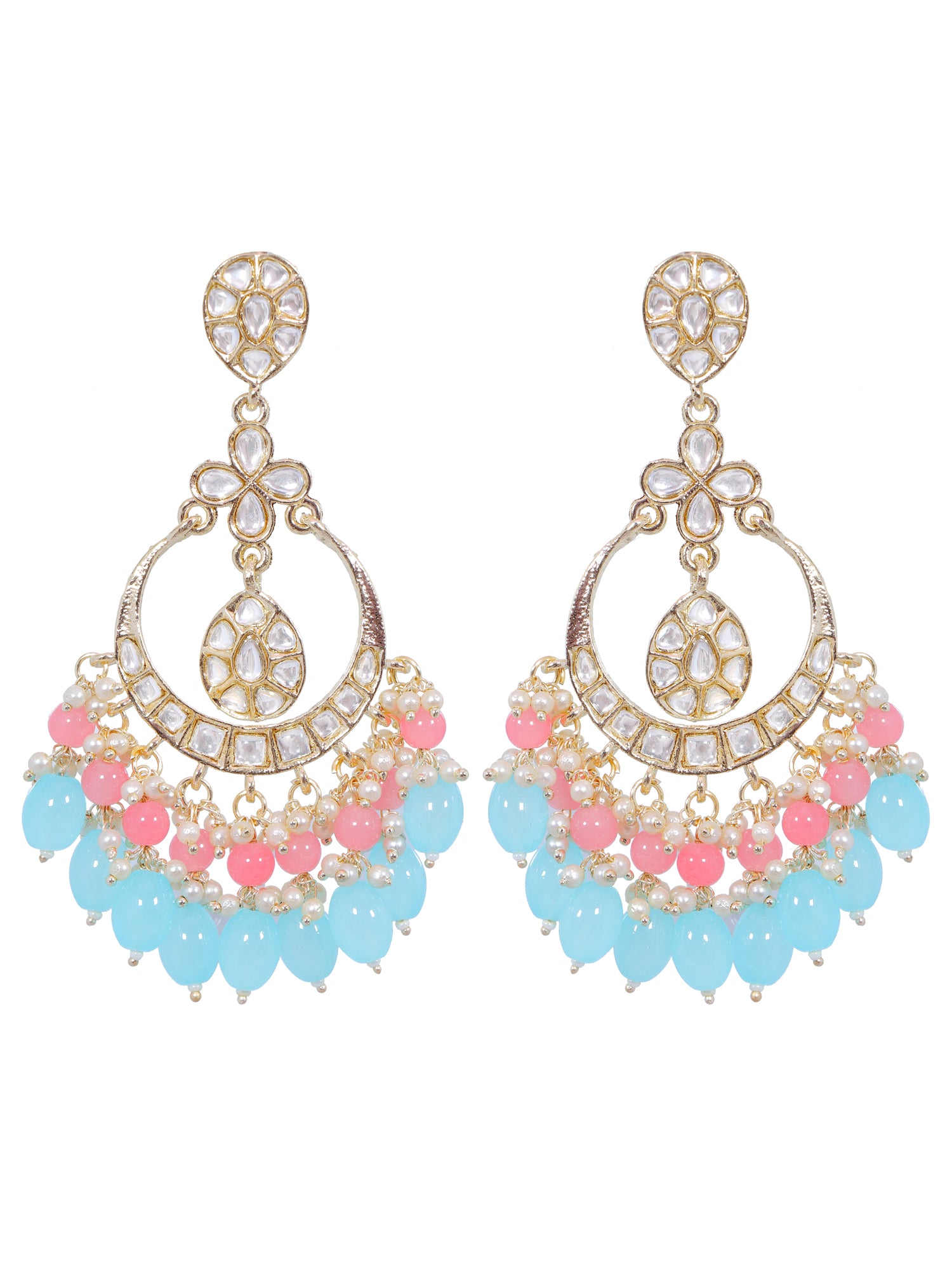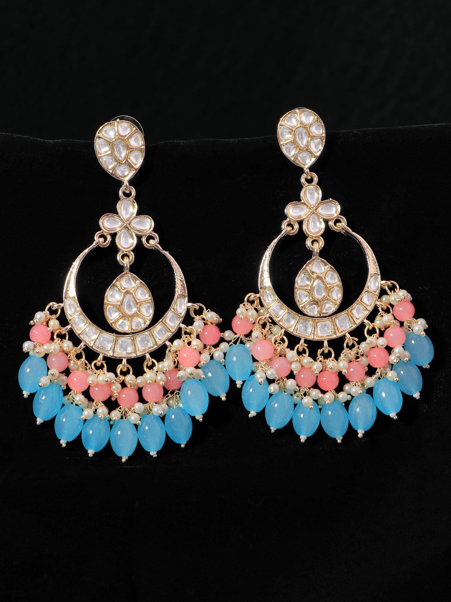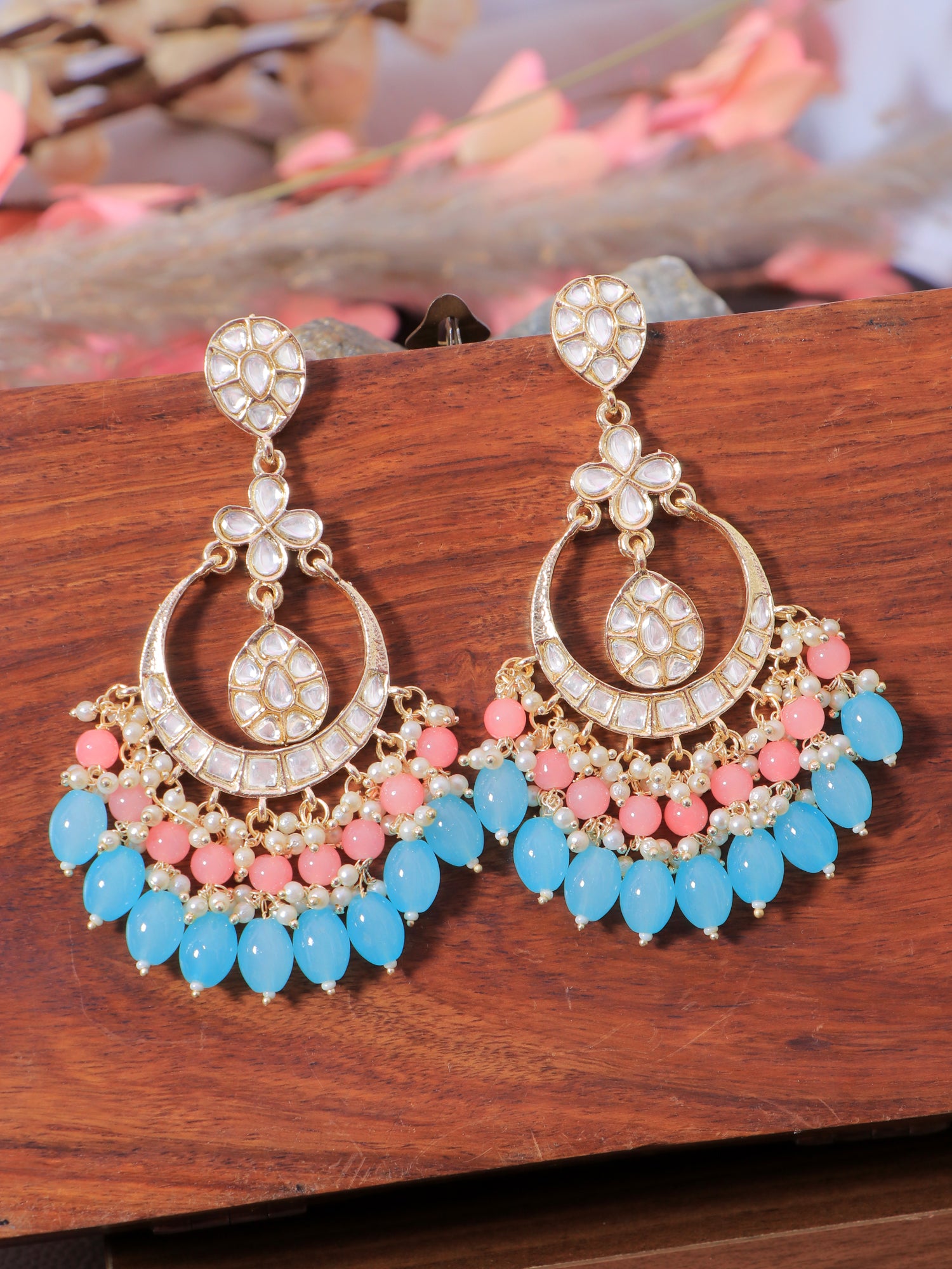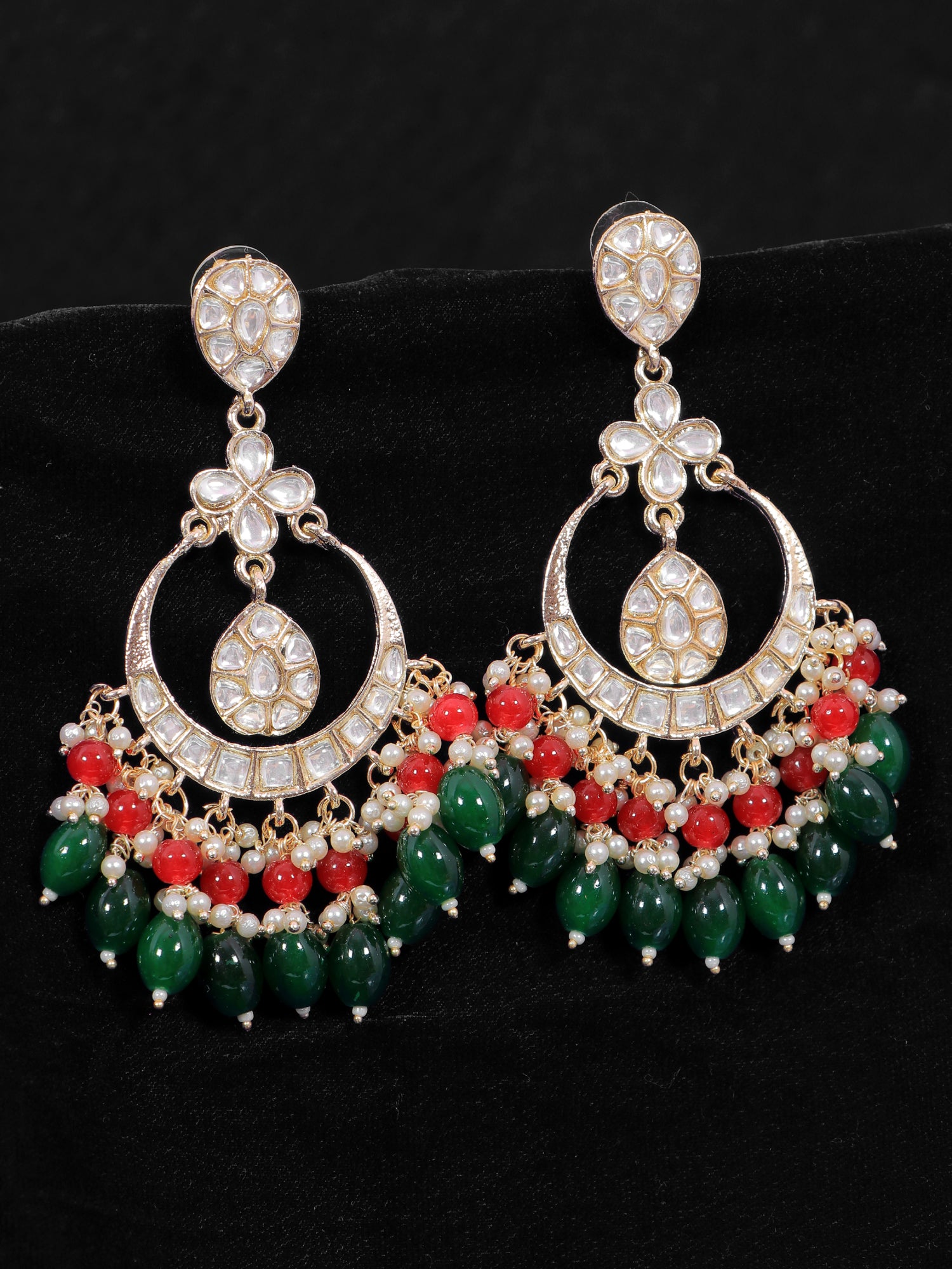 - Uniquely Stylish Multicolor Half Moon Kundan Gold Plated Earrings for Women & Girls