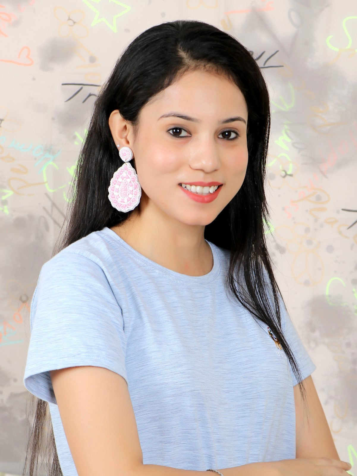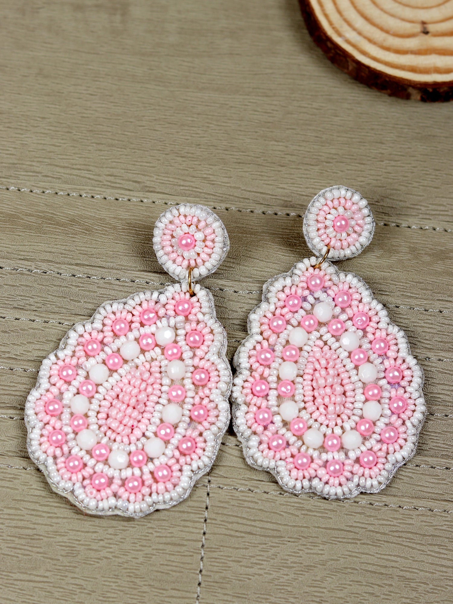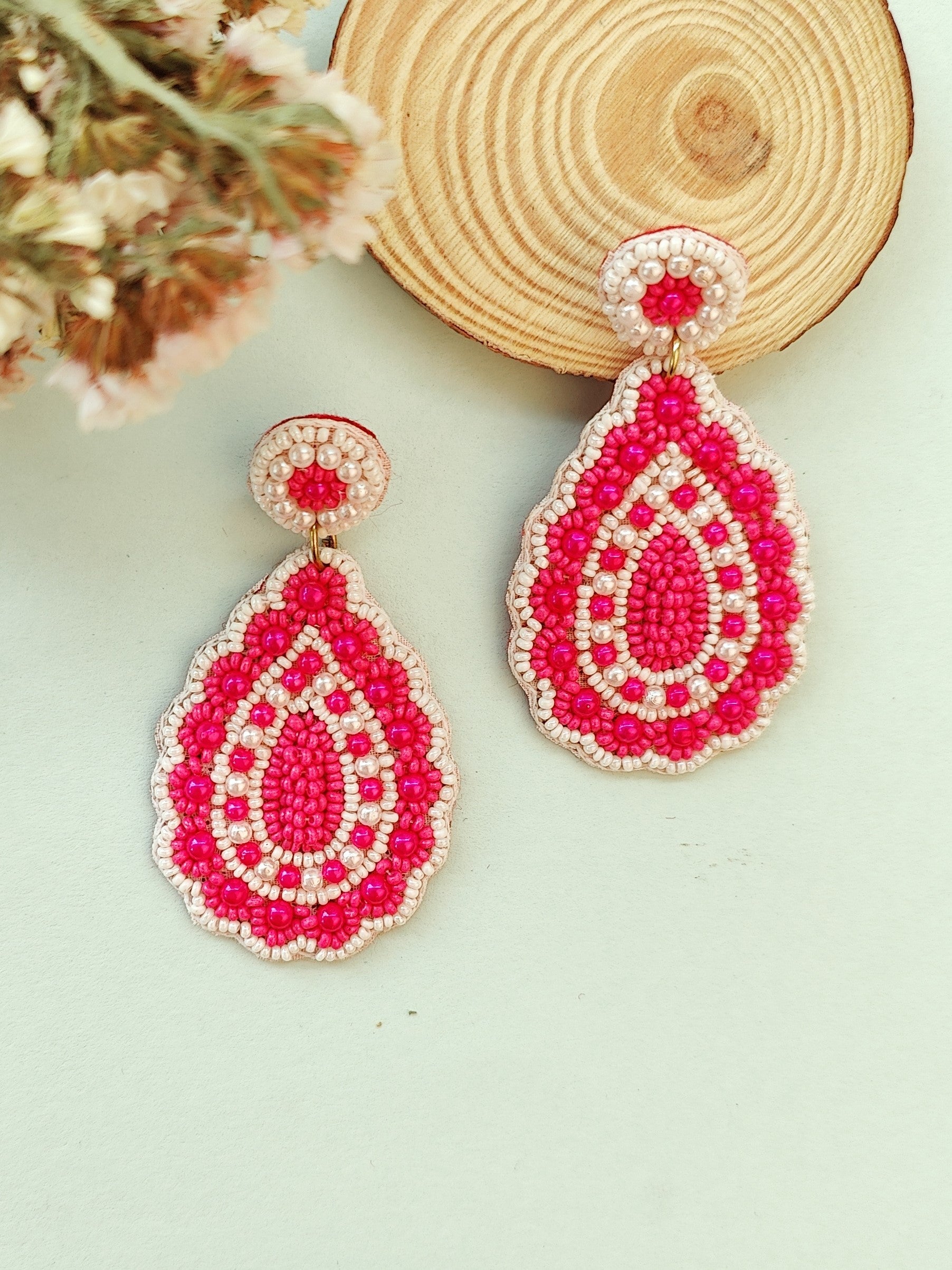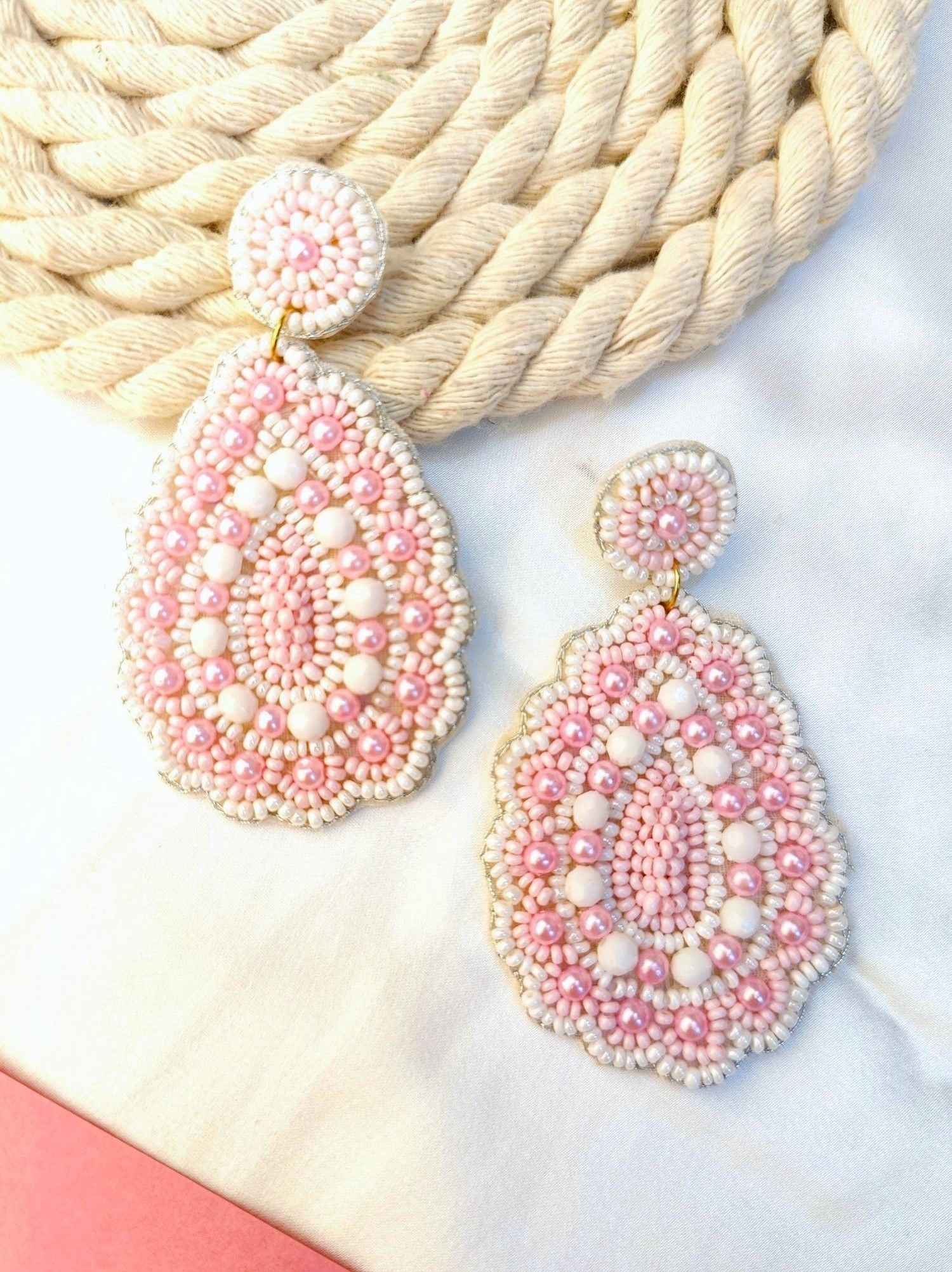 - Gulnaaz Chic Chaandbali - Handmade Beaded Pink & White Earrings for Indian Style Enthusiasts