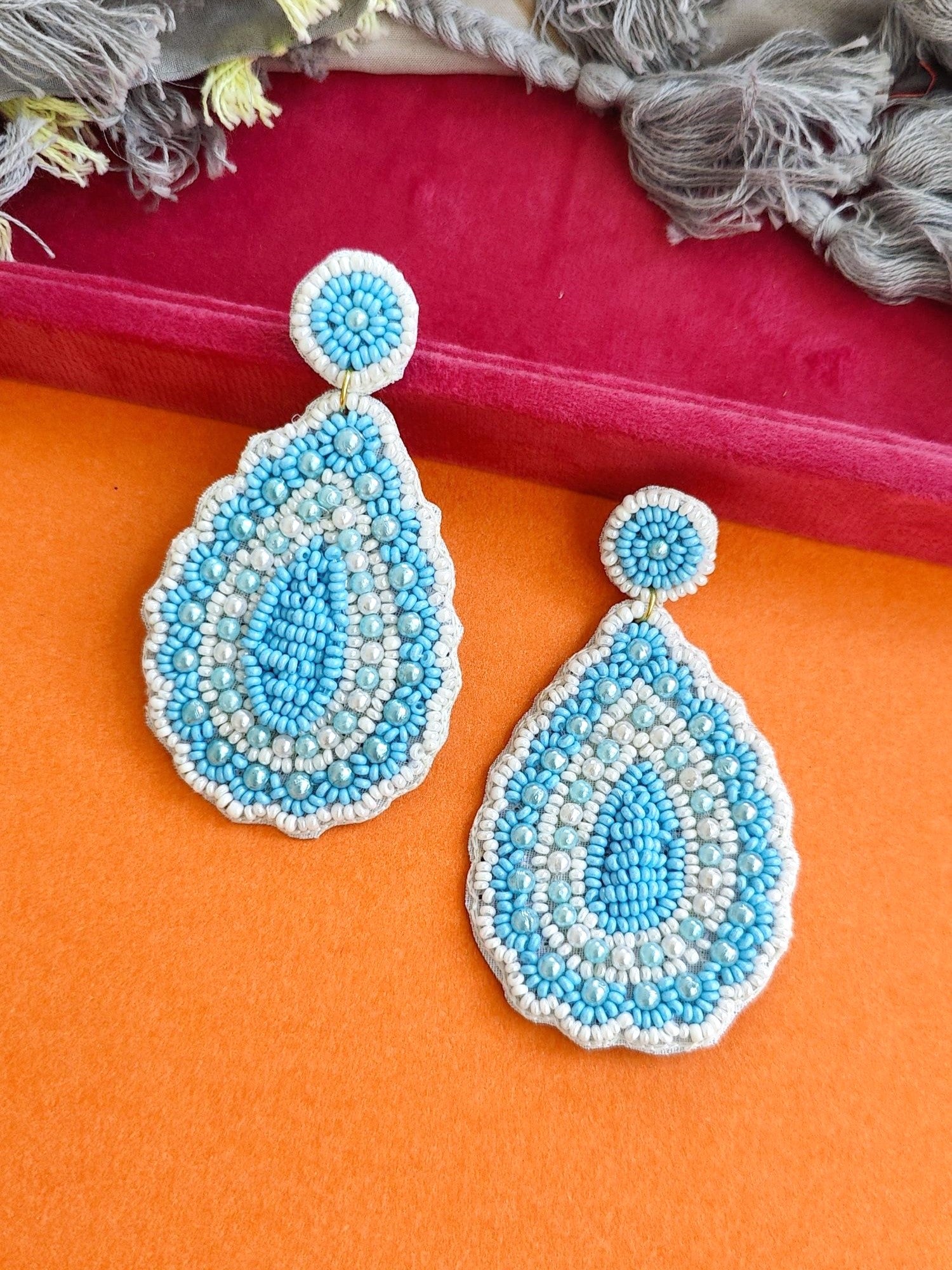 I bought a number of earrings and they arrived well packed in a box and attached to cute cards. I have taken them off the cards. I love these blue beaded handmade earrings! I love all the earrings I bought. They are of high quality and shipping is quick