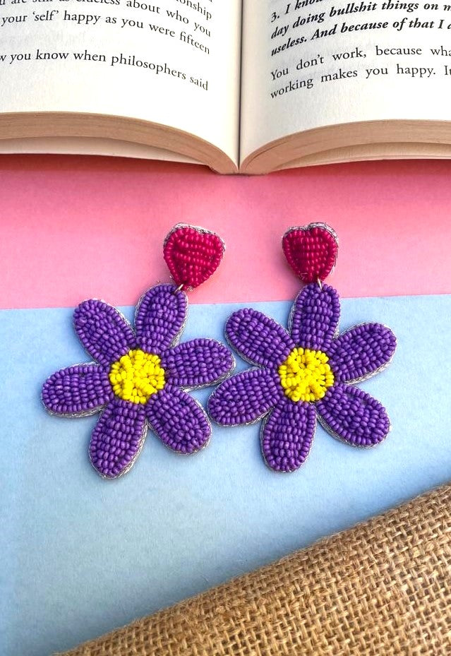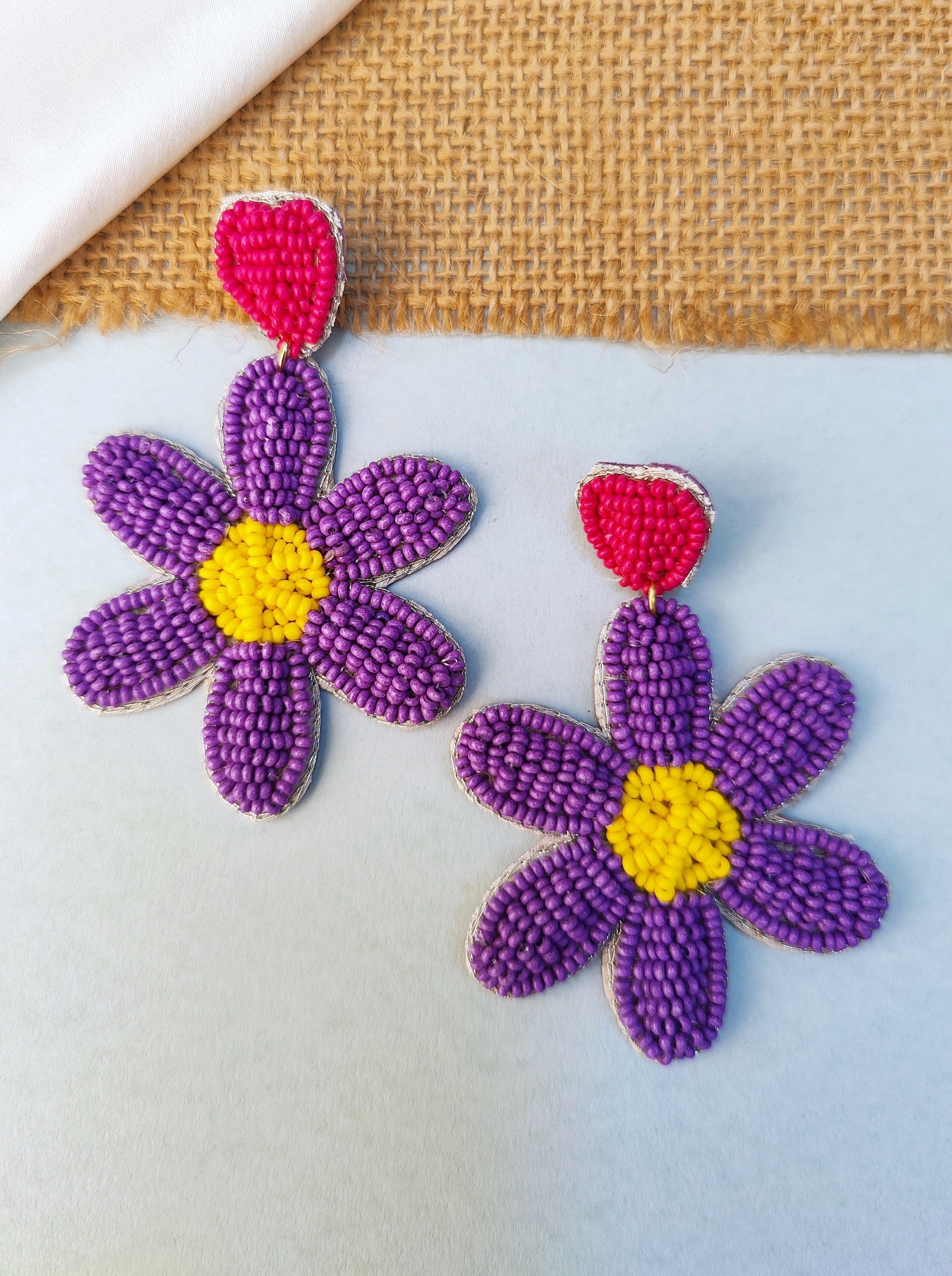 - Handmade Lavender Bloom: Purple Beaded Floral Statement Earrings