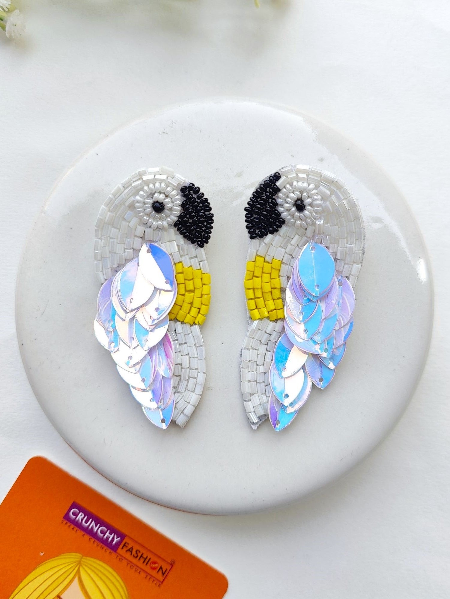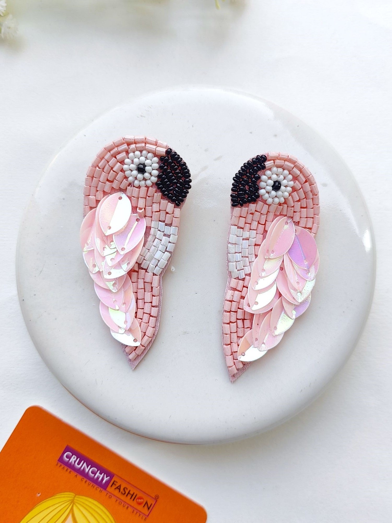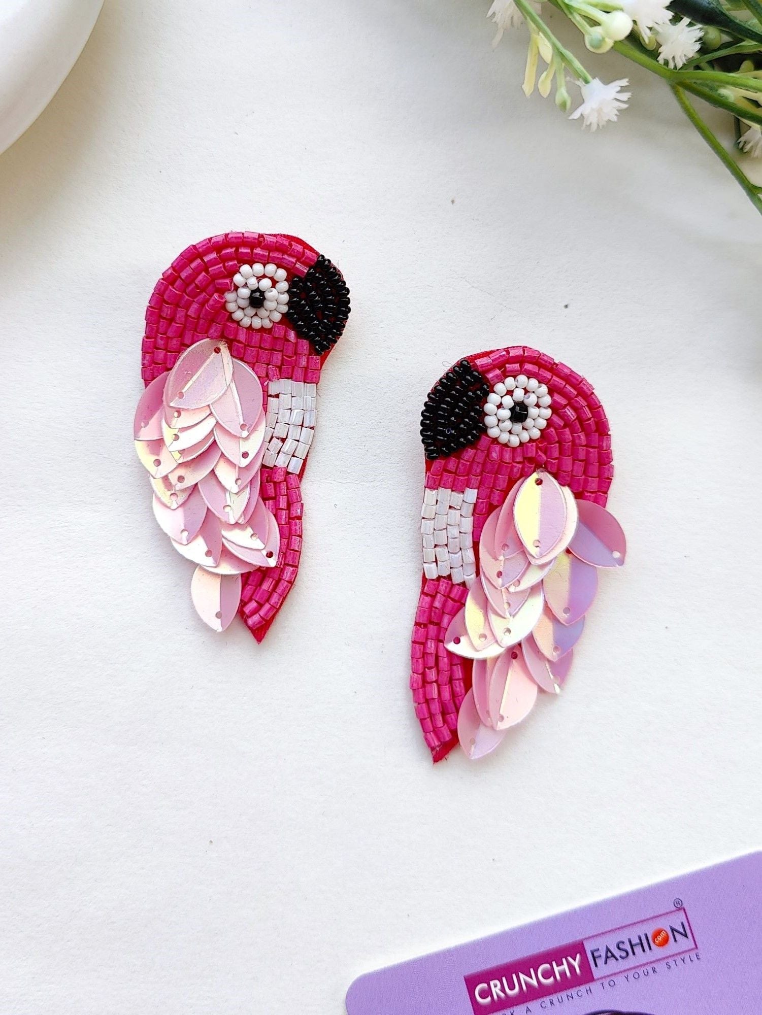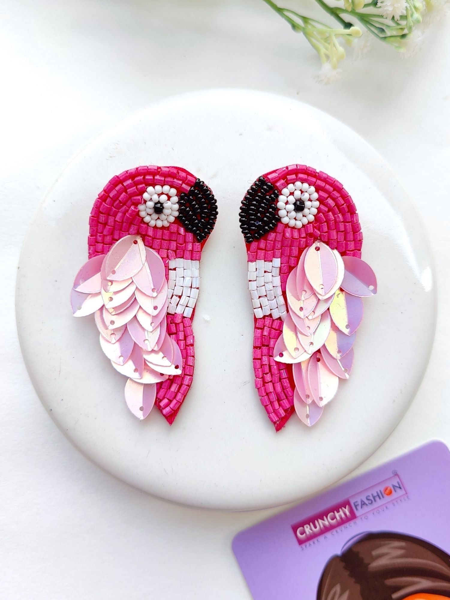 - Pink Panchi Earrings- Quirky Beaded Bird Earrings for Women and Girls