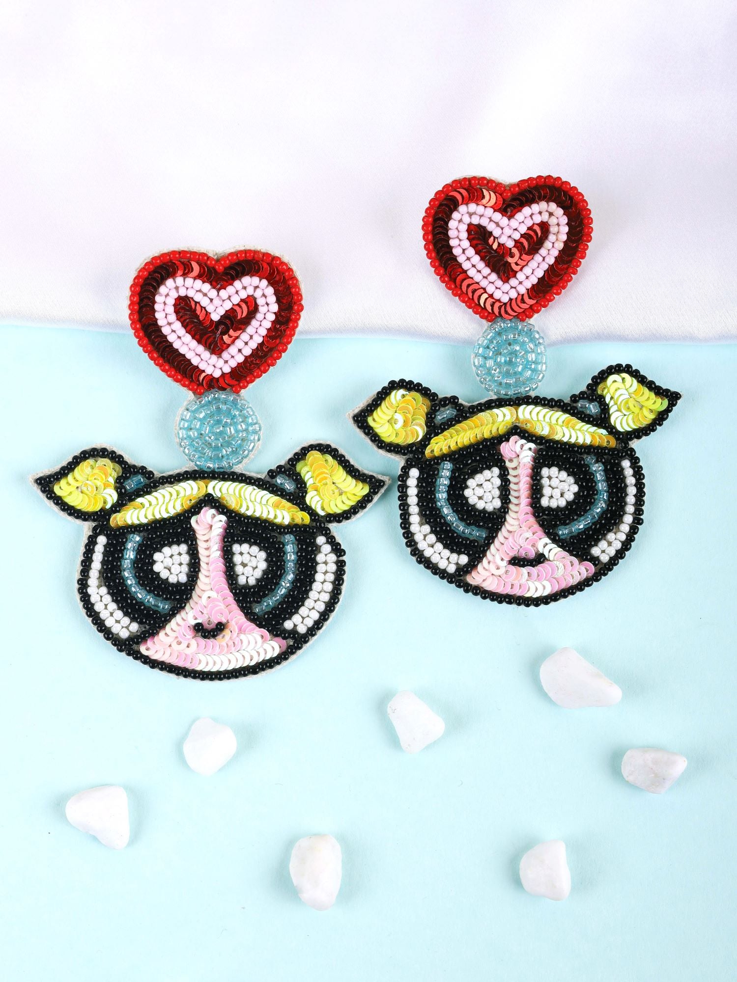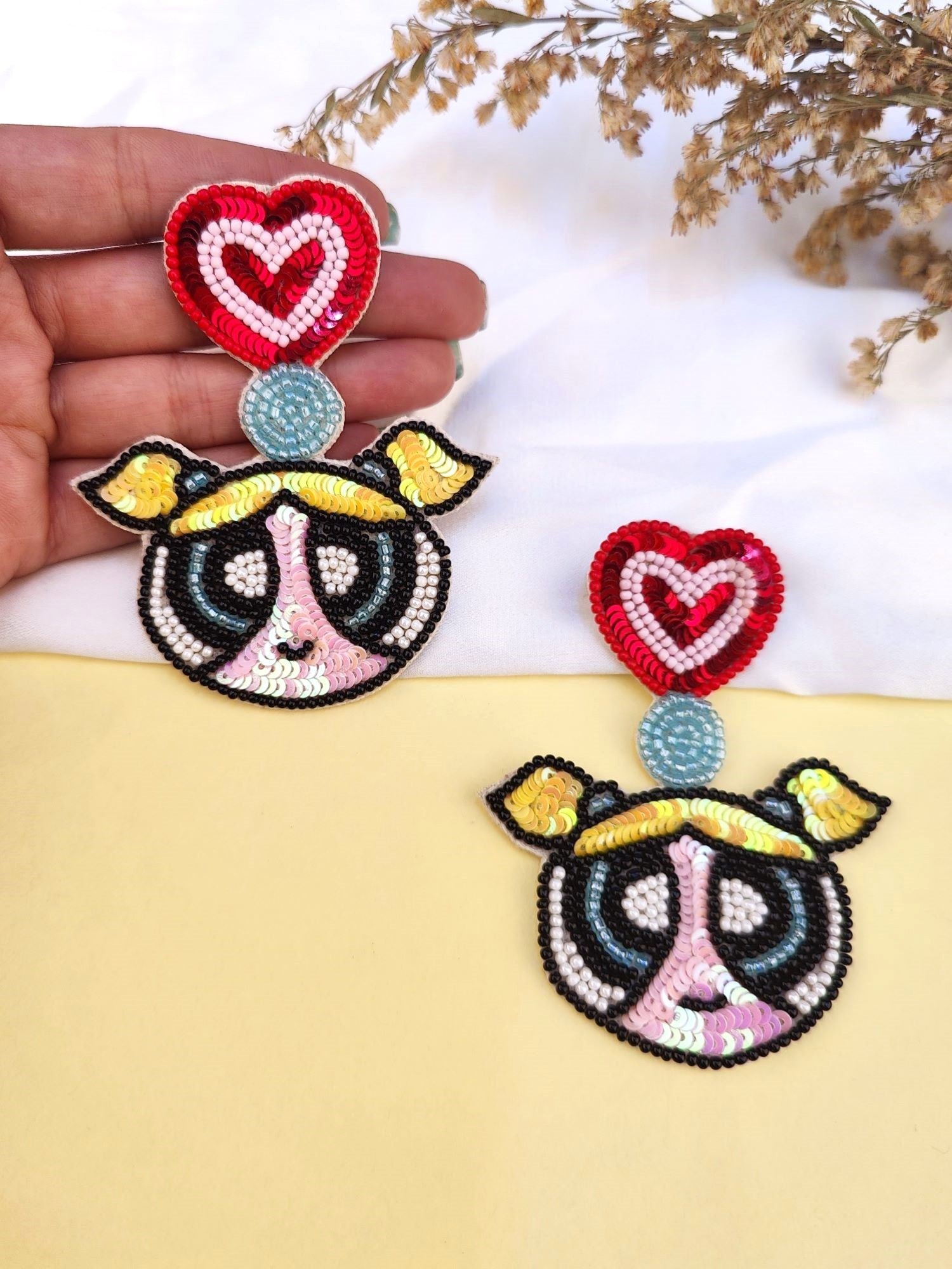 - Powerpuff Girl Earrings - Handmade Quirky Beaded Statement Dangling Earrings