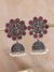 - Pink Crystal Oxidised Silver Long Jhumka Earrings for Women & Girls