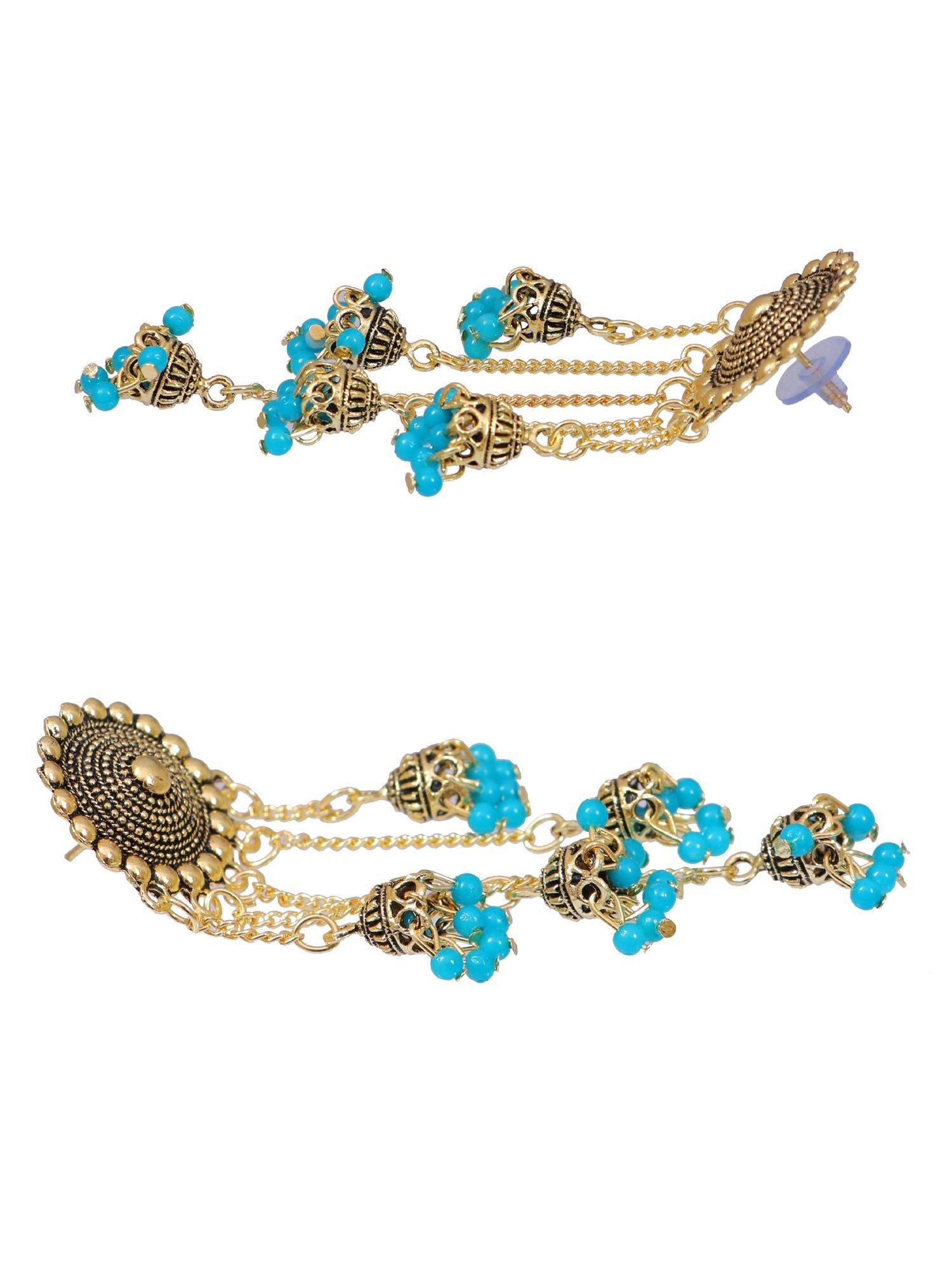 Elegant Asymmetric Sky-Blue & Gold Jhumka Earrings for Women - Perfect Sky Blue Saree Matching Jewellery