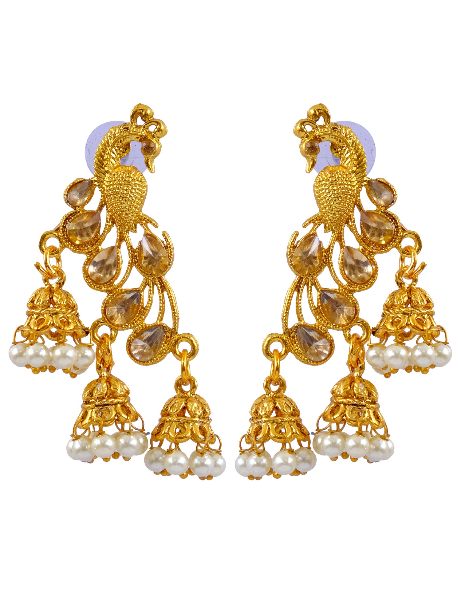 Traditional Gold-Plated Peacock Design Earrings with hanging beads in jhumka RAE1190