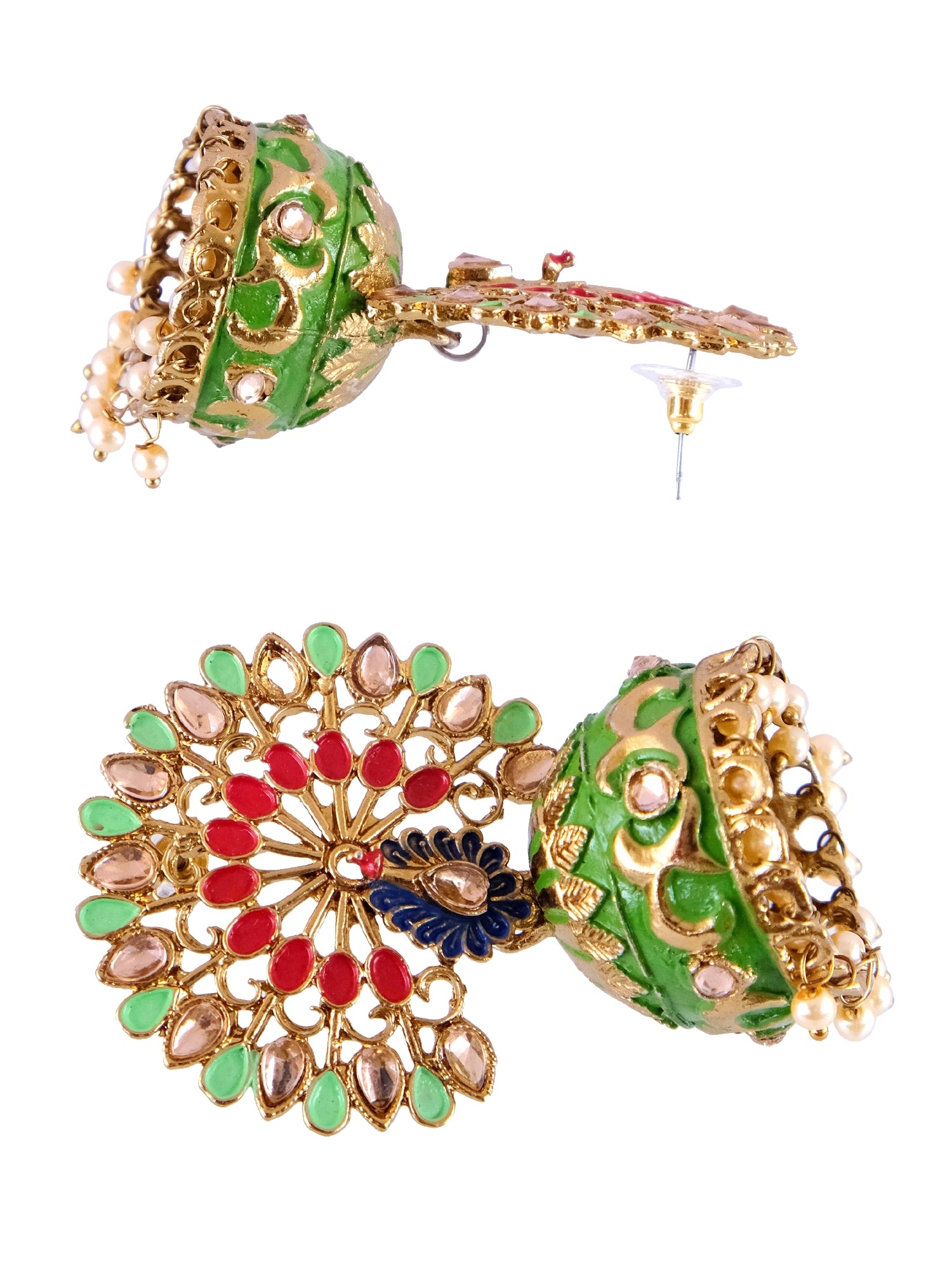 Stunning Peacock Jhumka Earrings: Multicolor, Gold-Plated Traditional Design for Women and Girls