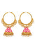 Gold-Plated Round Hoop Earrings with Royal Pink Meenakari Jhumka for Women