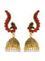 Gold Plated Jhumka Peacock Earrings for Women and Girls, Red Meenakari Design