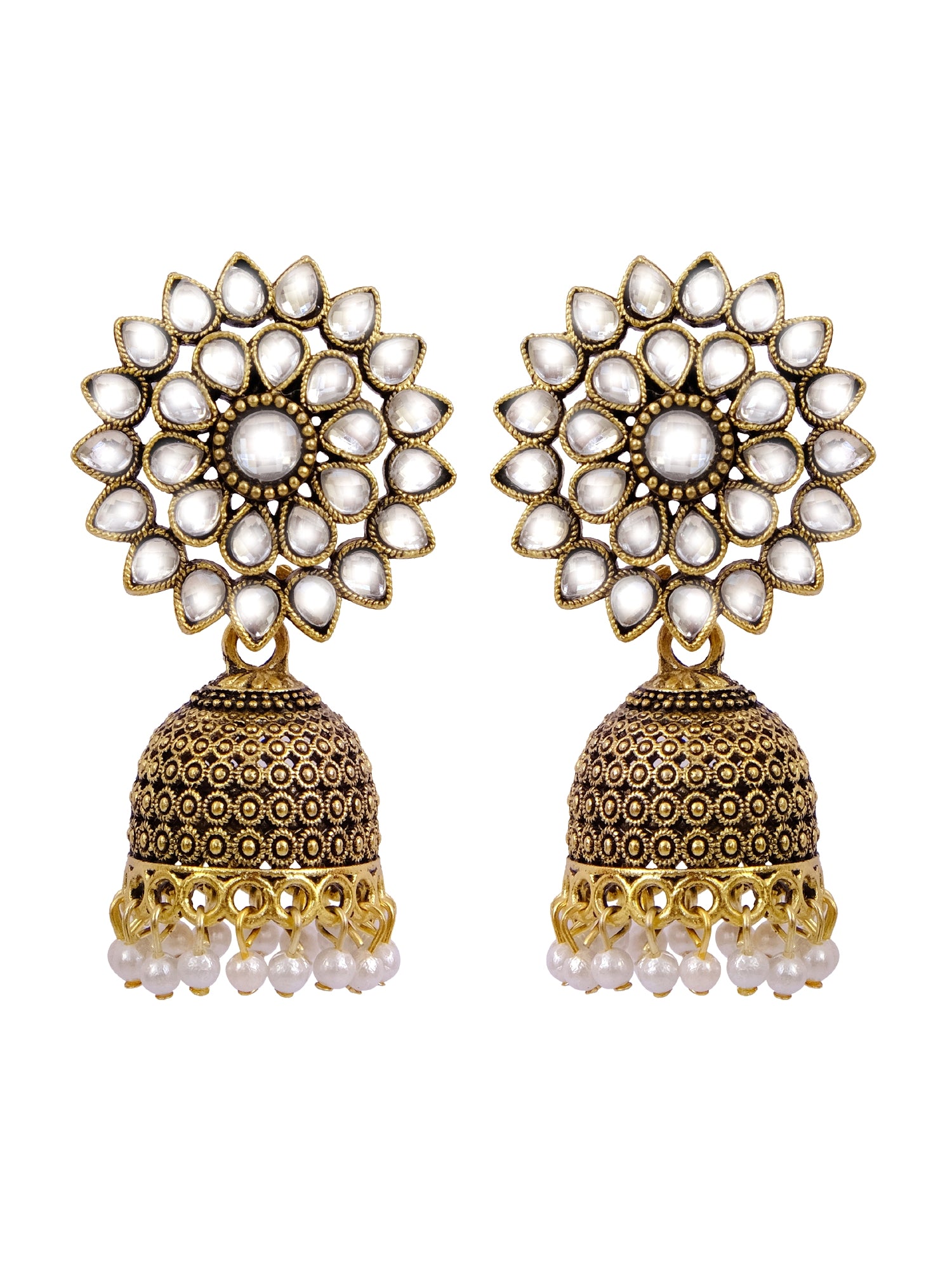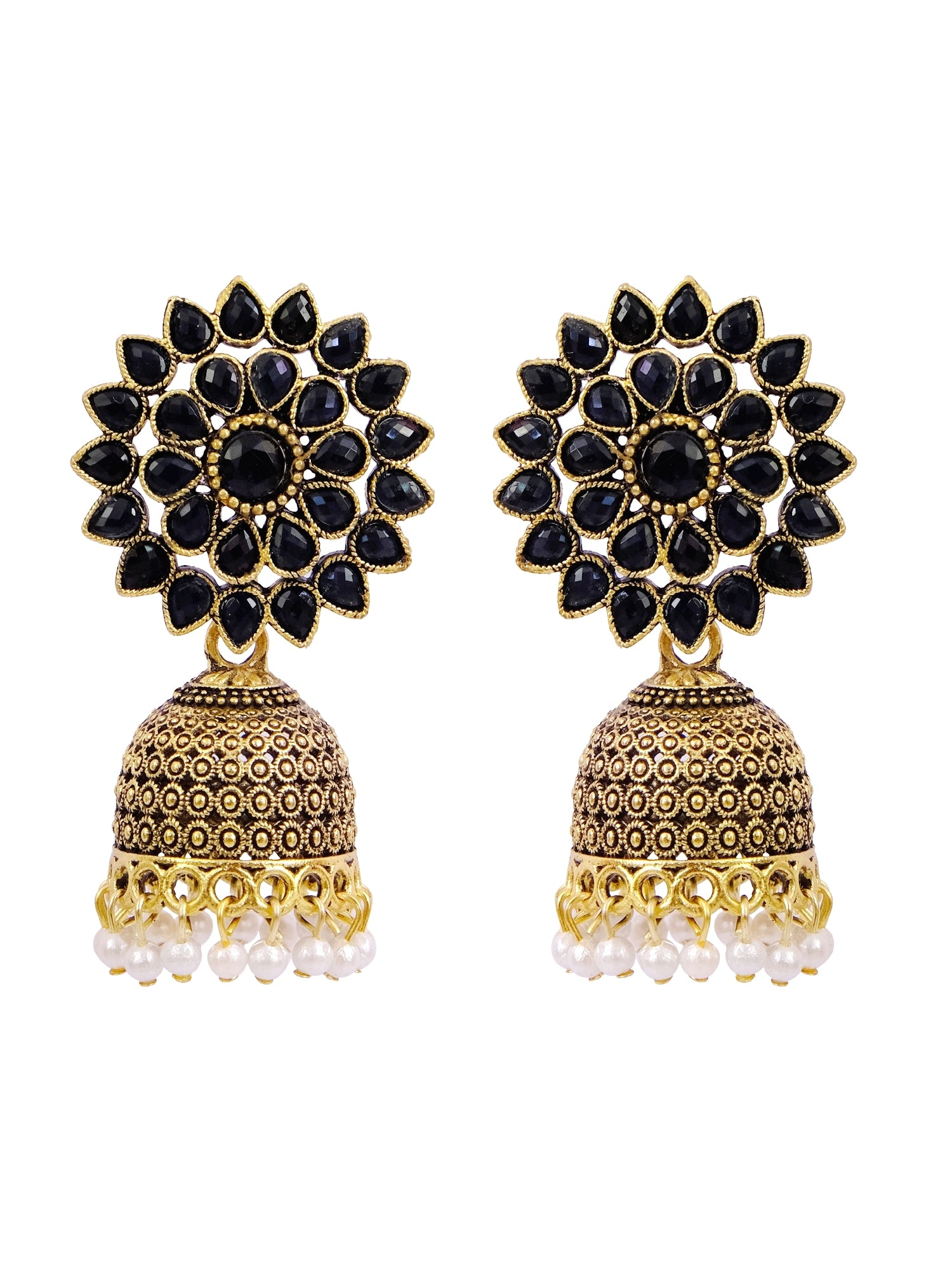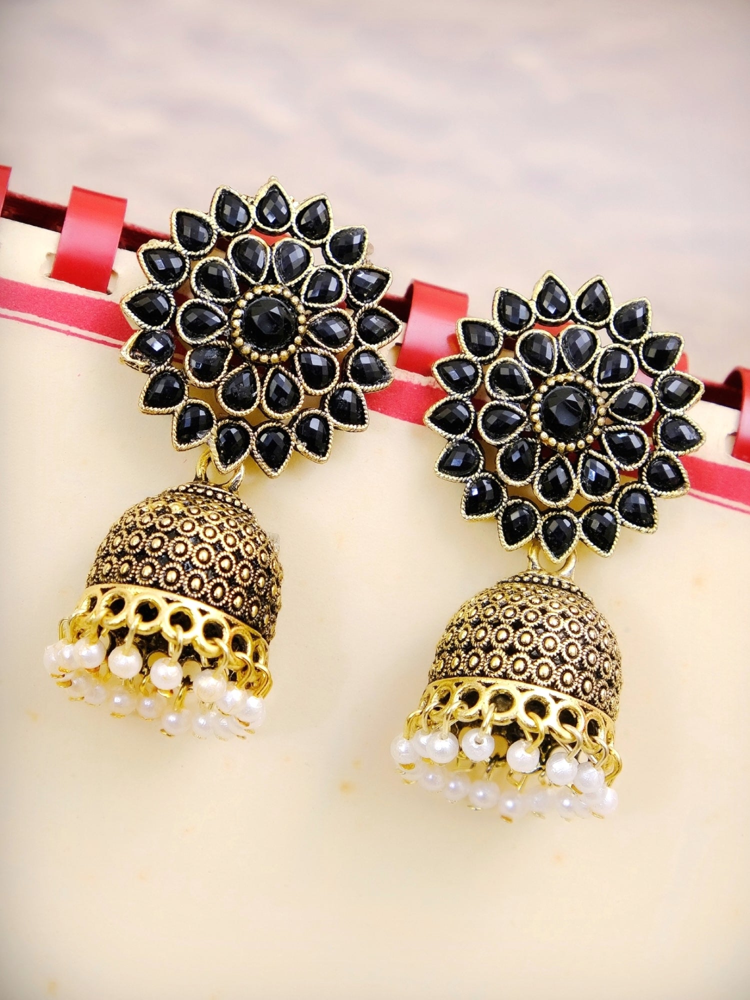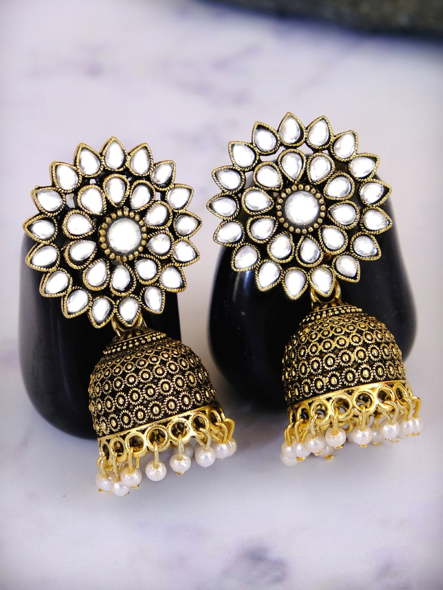 Risha Oxidised Gold Jhumka- Antique Gold Plated Floral Jhumki Earrings for Women