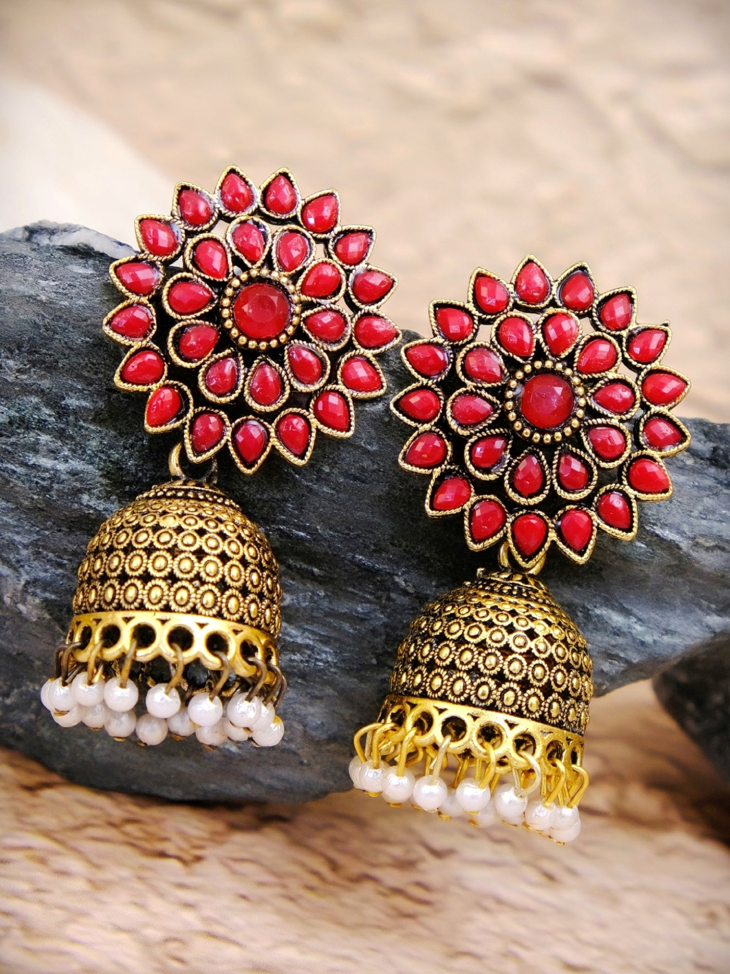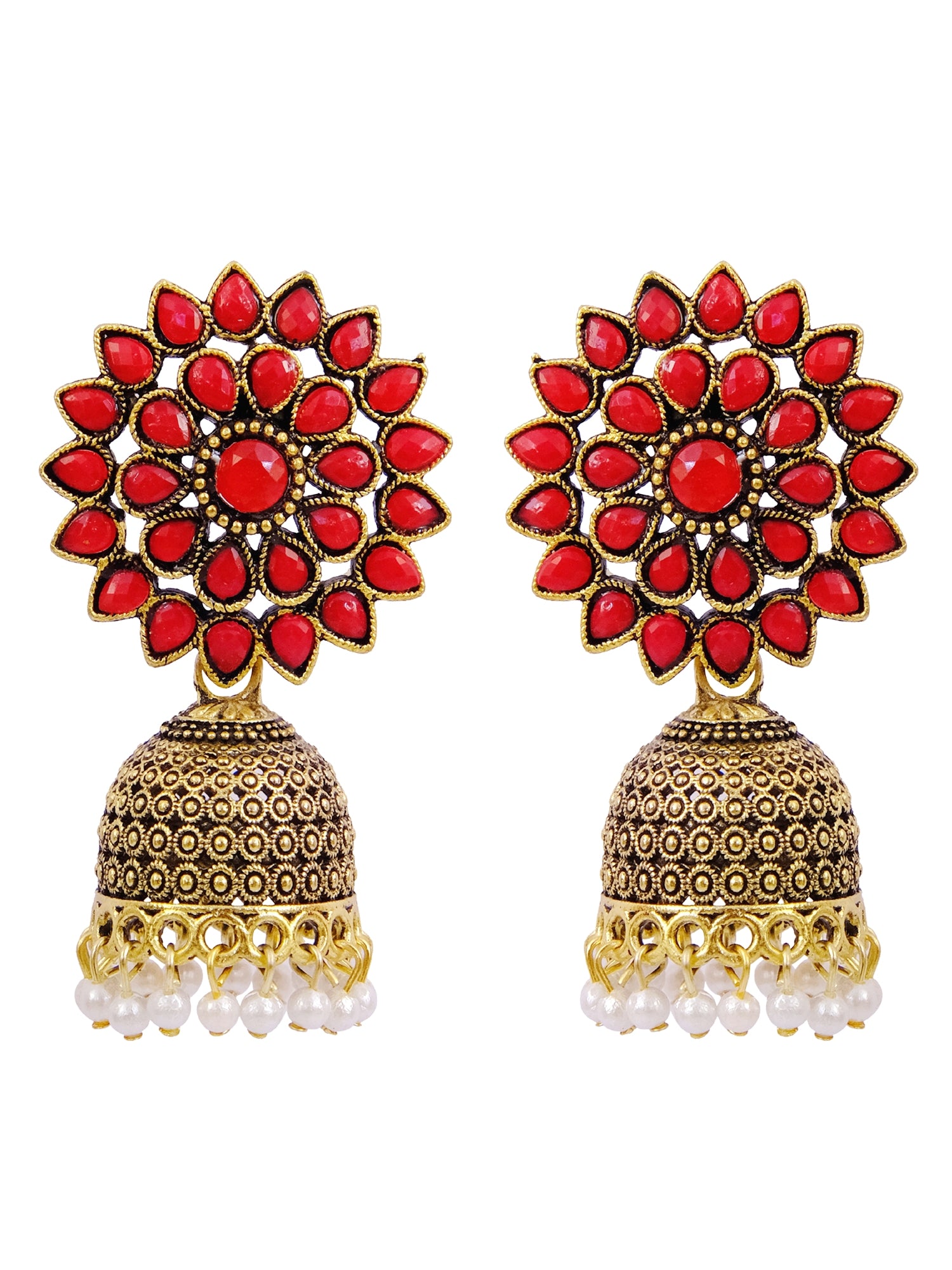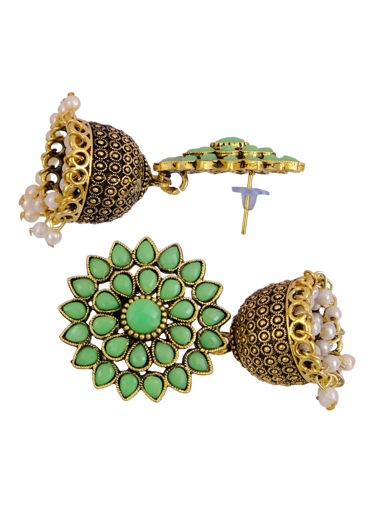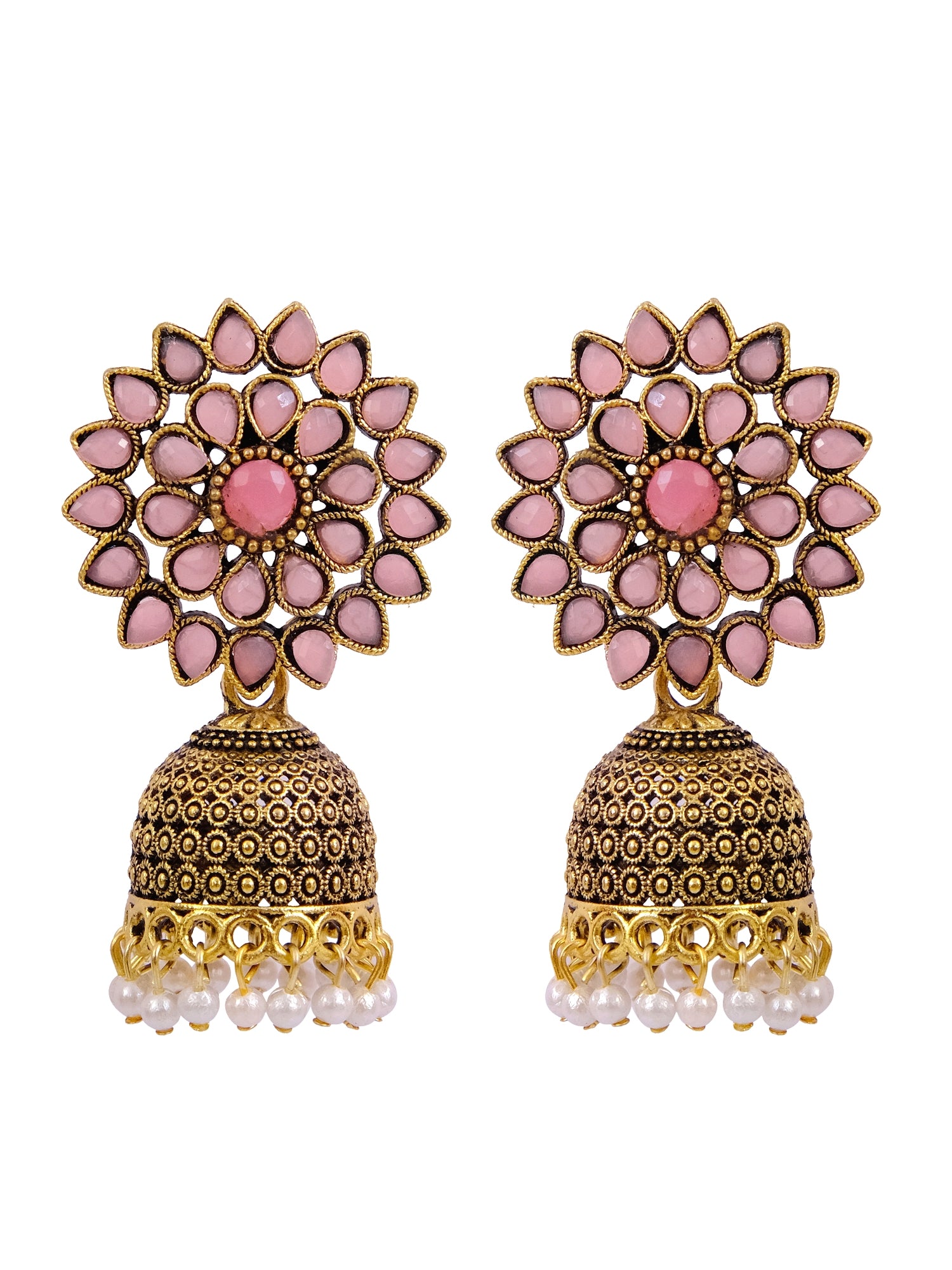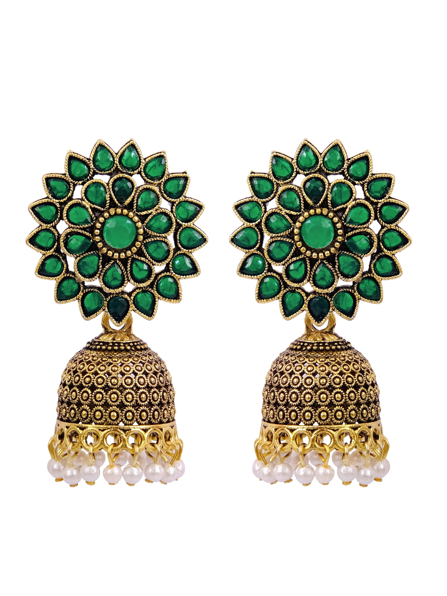 Risha Oxidised Gold Jhumka- Antique Gold Plated Floral Jhumki Earrings for Women