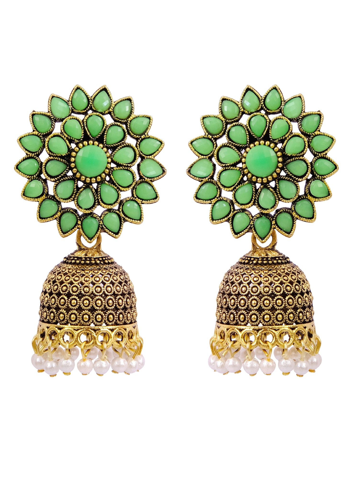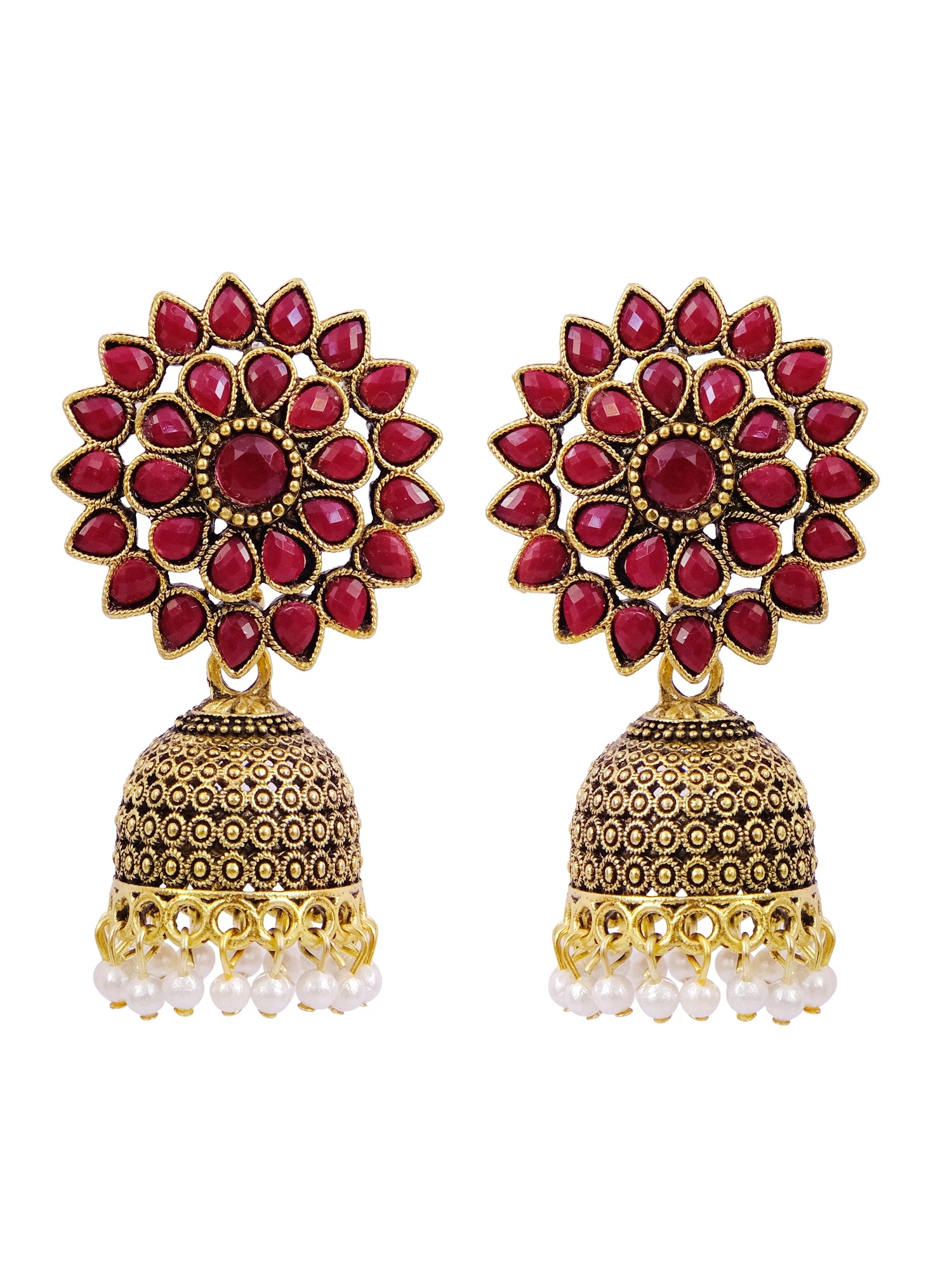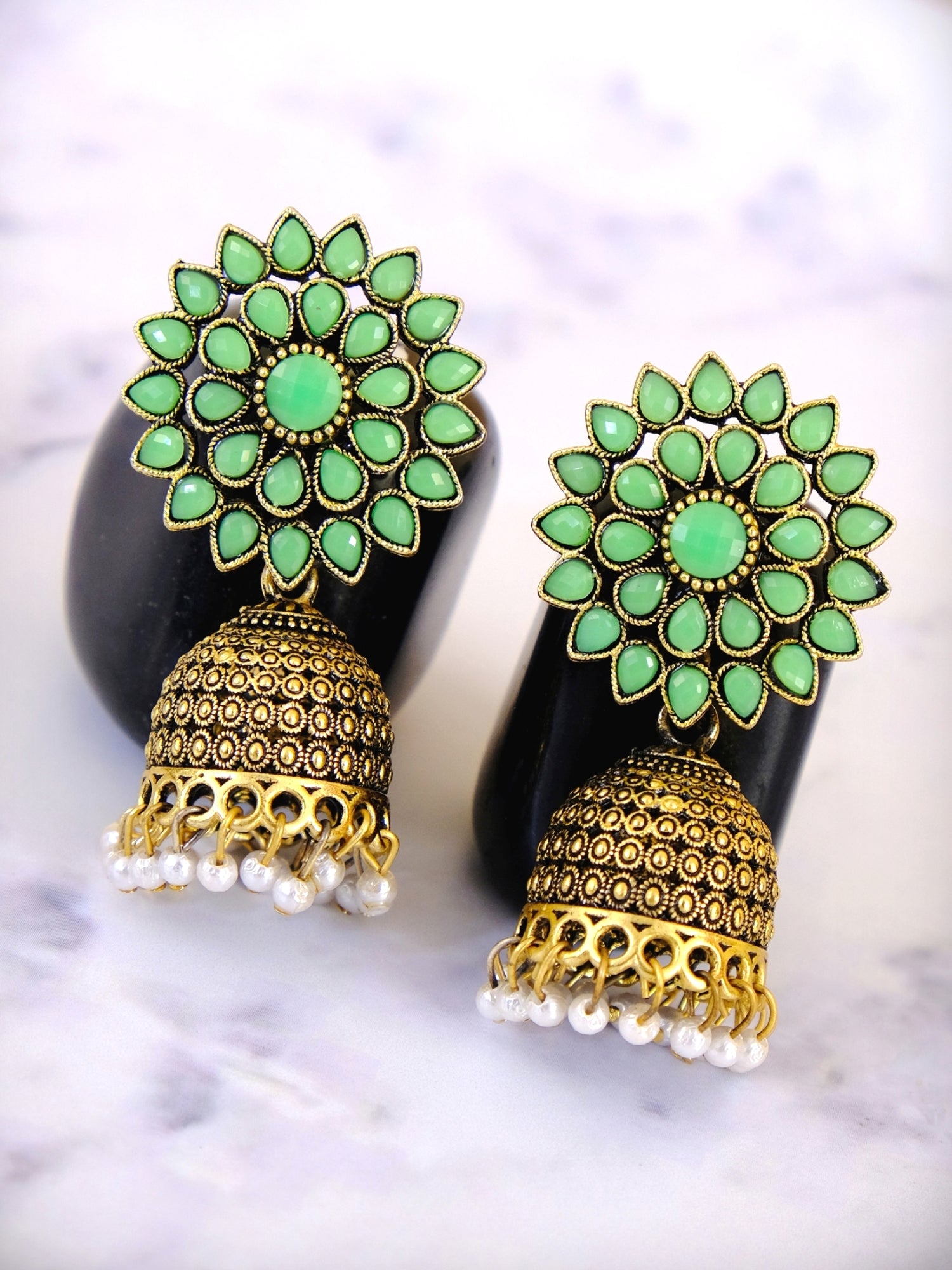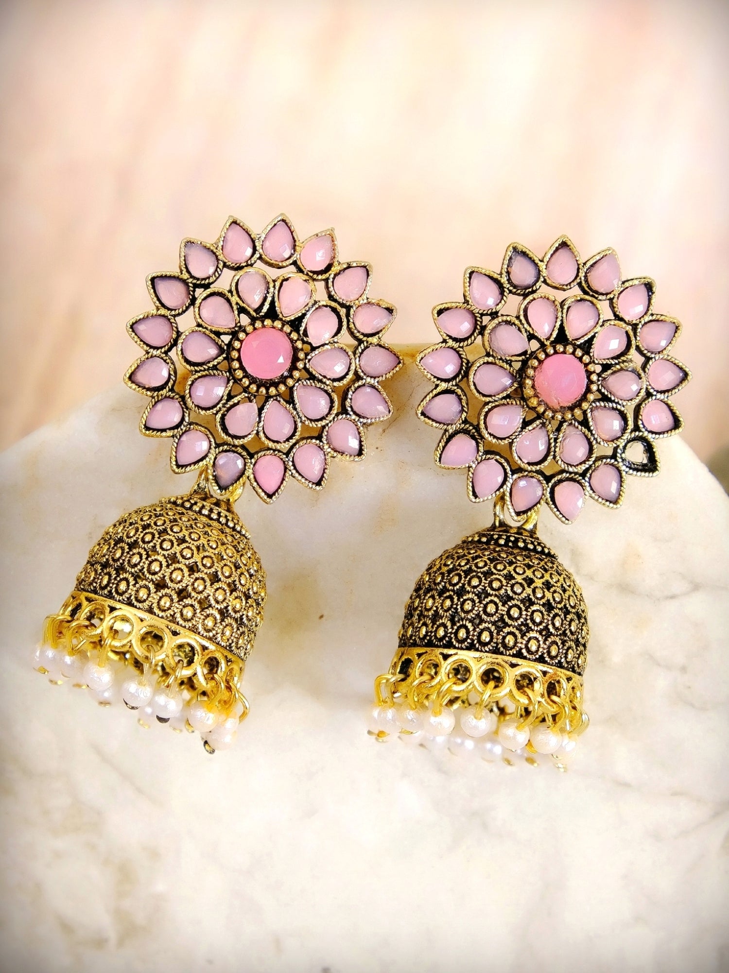 Risha Oxidised Gold Jhumka- Antique Gold Plated Floral Jhumki Earrings for Women