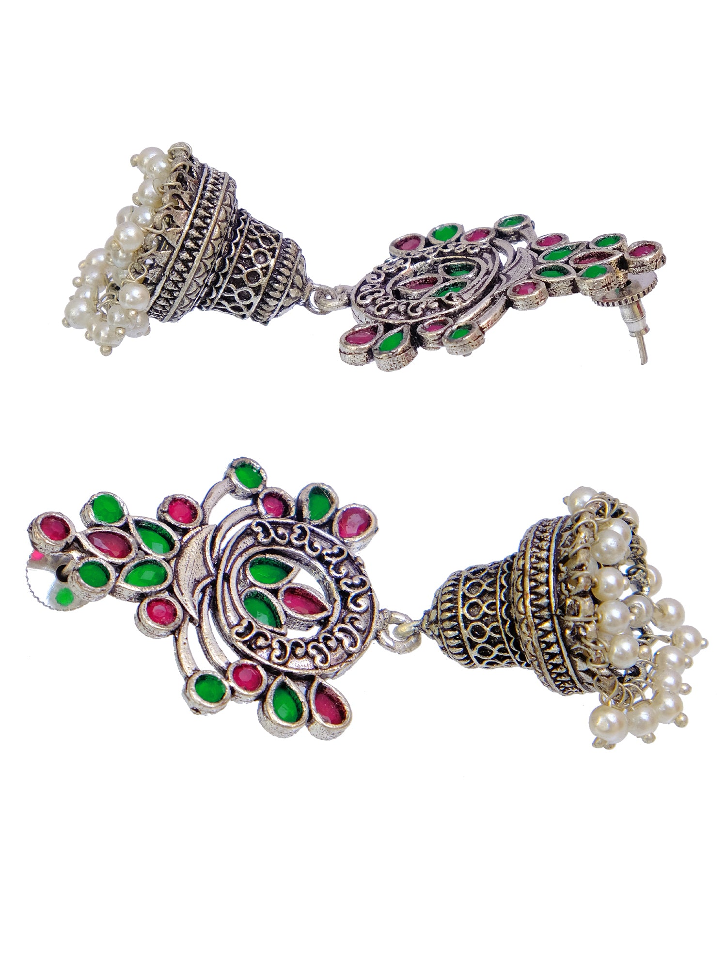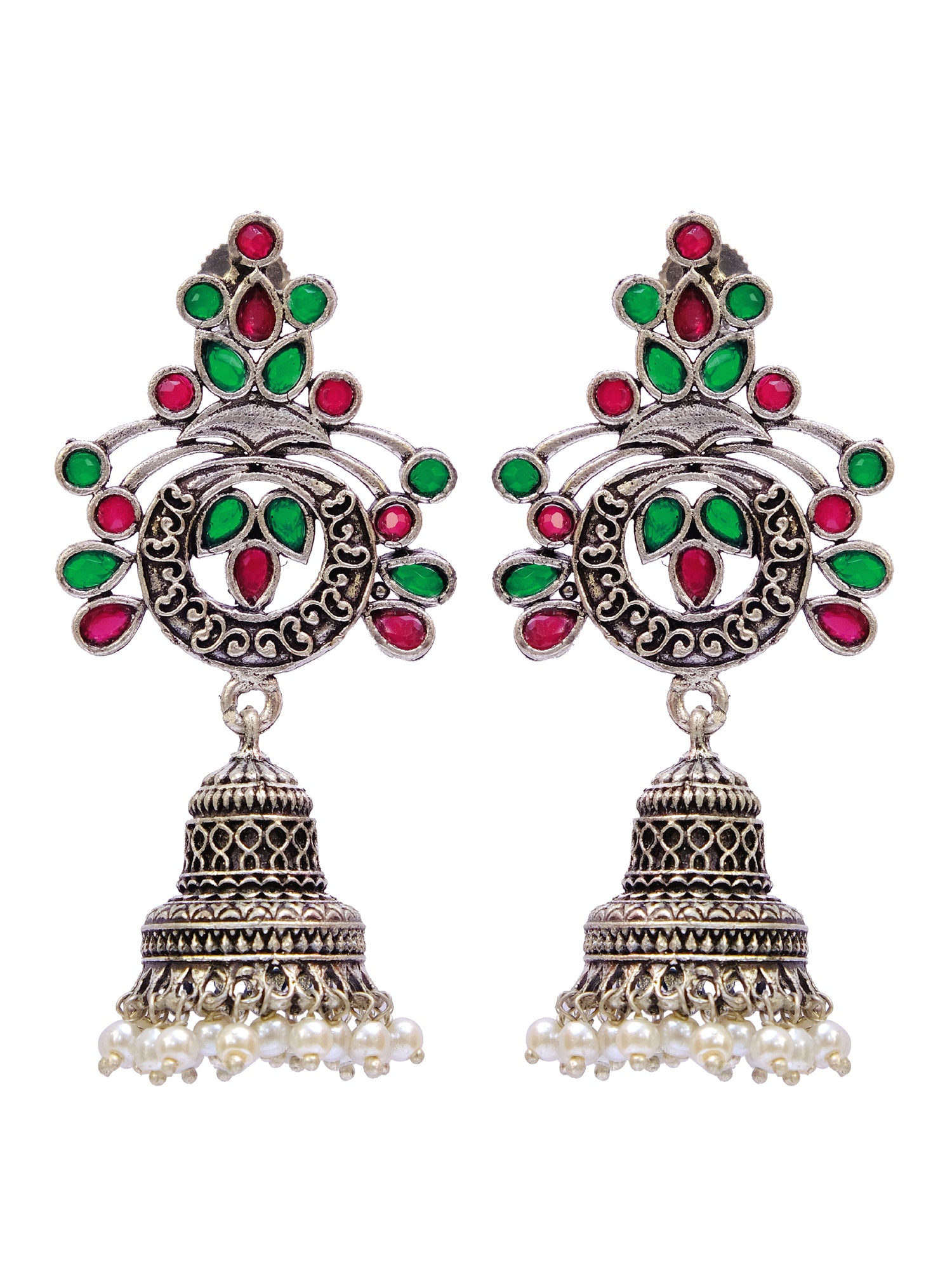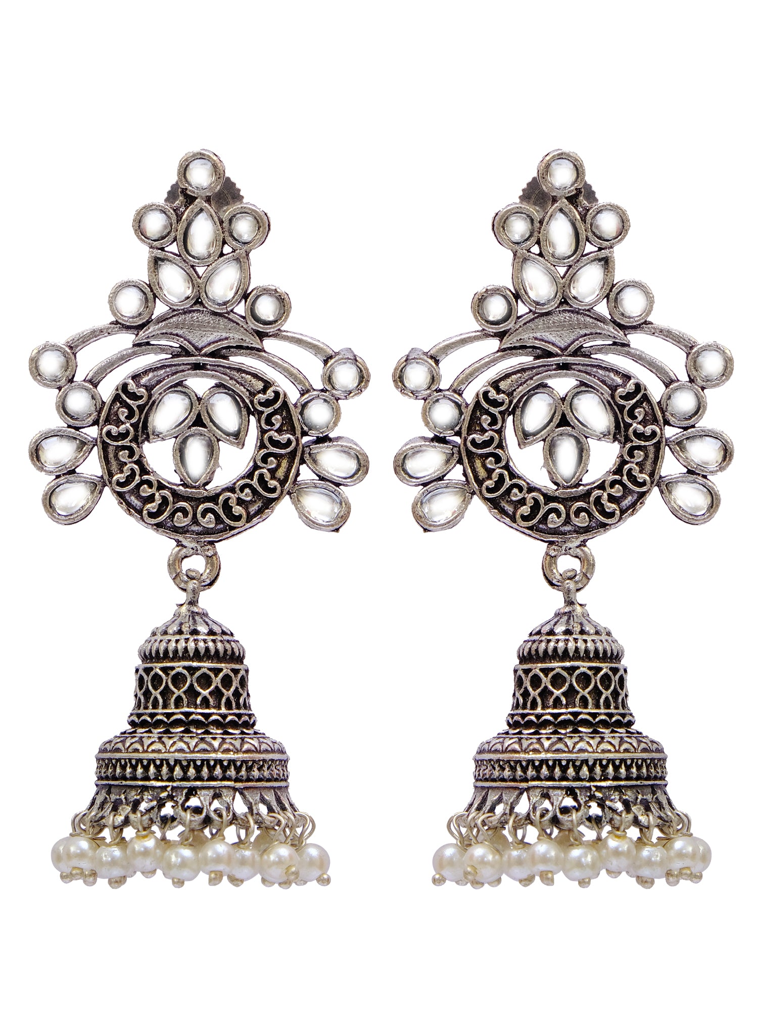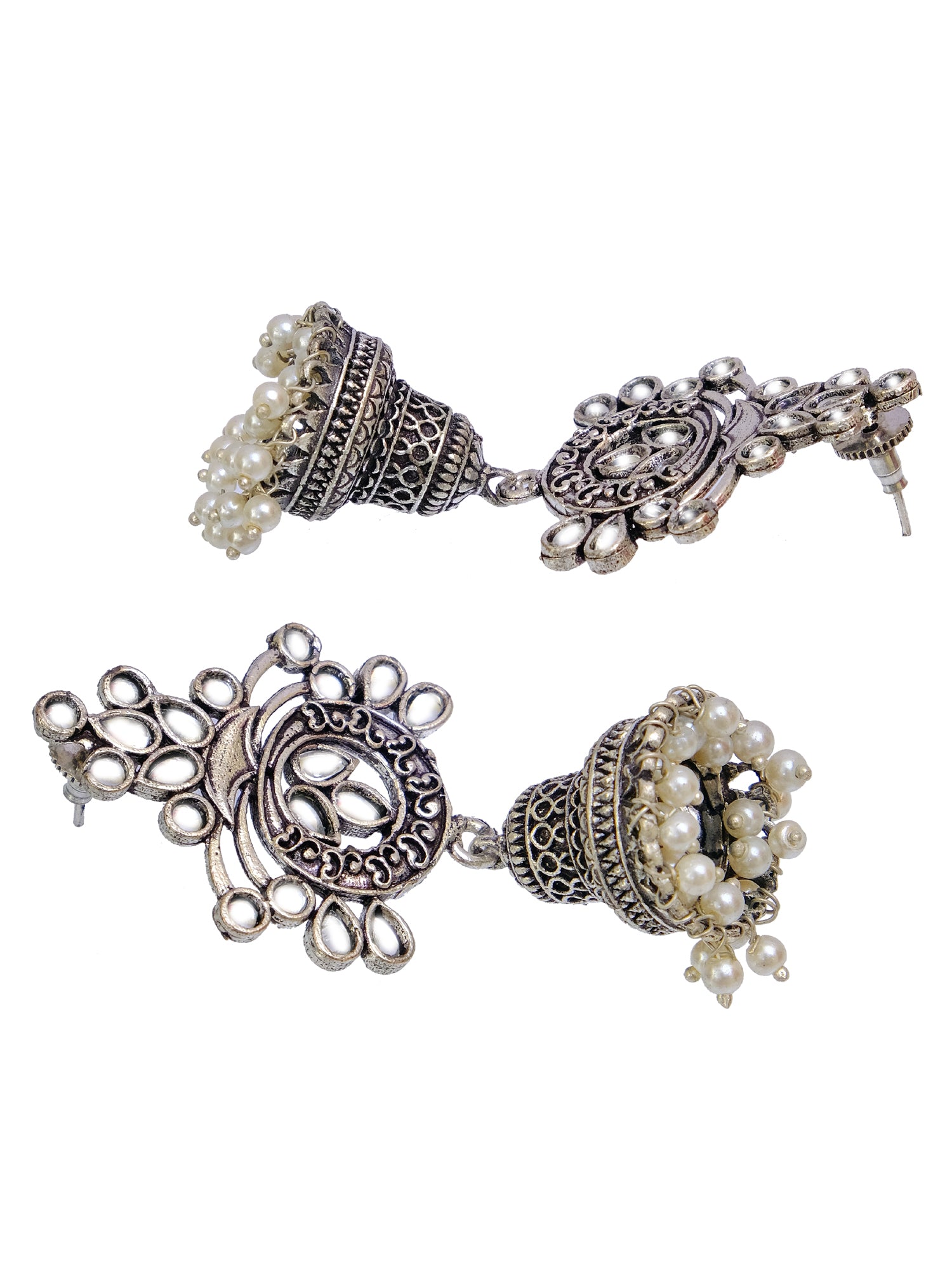 Oxidised German Silver Meenakri Floral Jhumka Earrings with Pearls for Women
