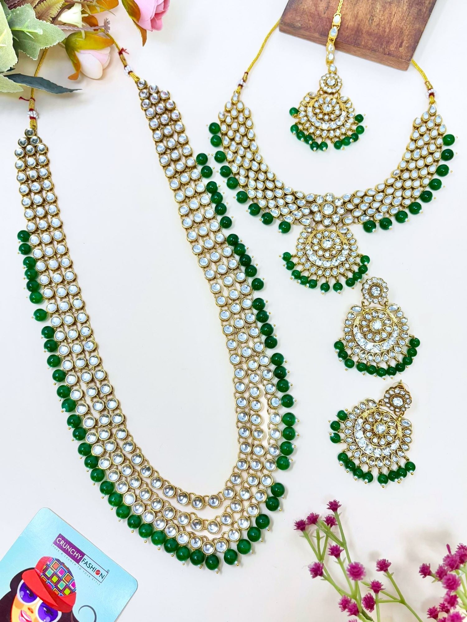 - Green Kundan Bridal Jewellery Set for Women, Girls