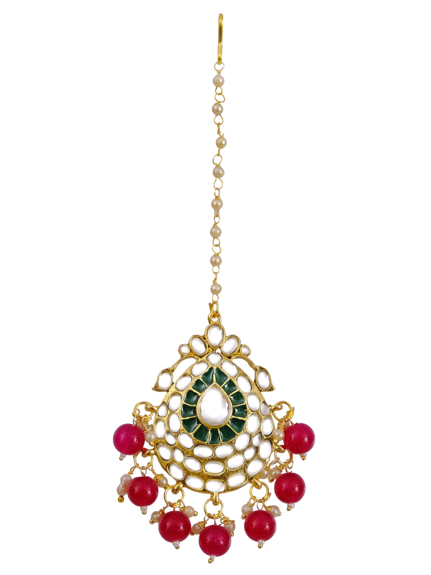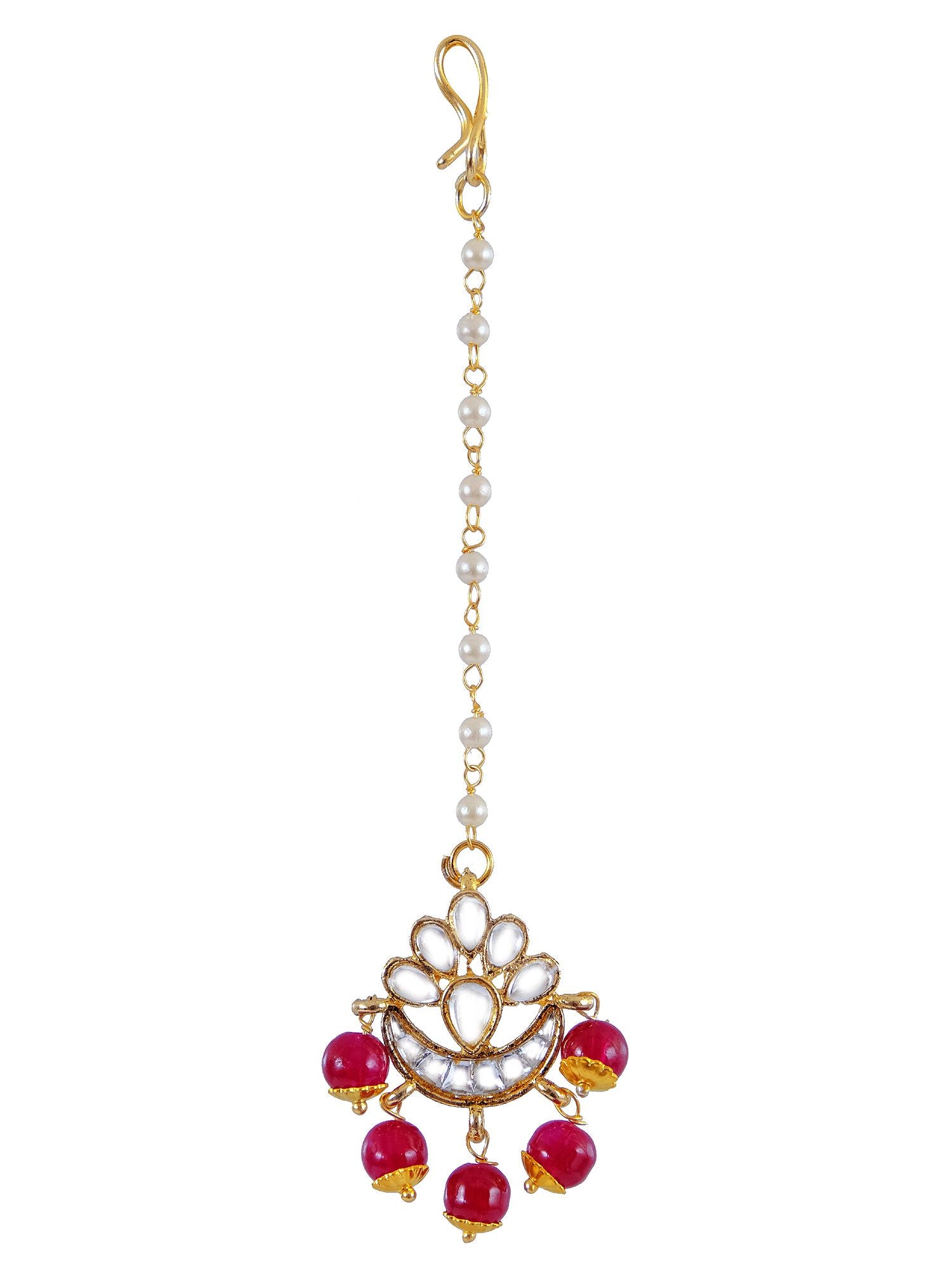 Kundan Studded Maroon Pearls Maang Tikka for Girls/Women