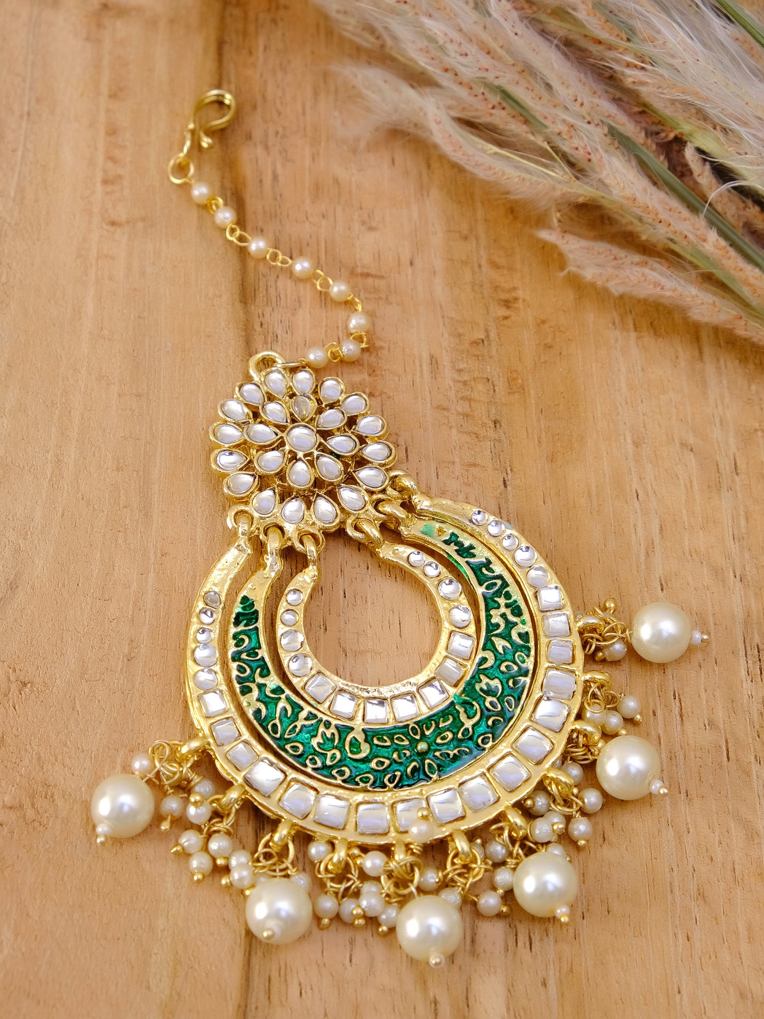 Green Drops Ethnic Maang Tikka for Weddings and Festivals