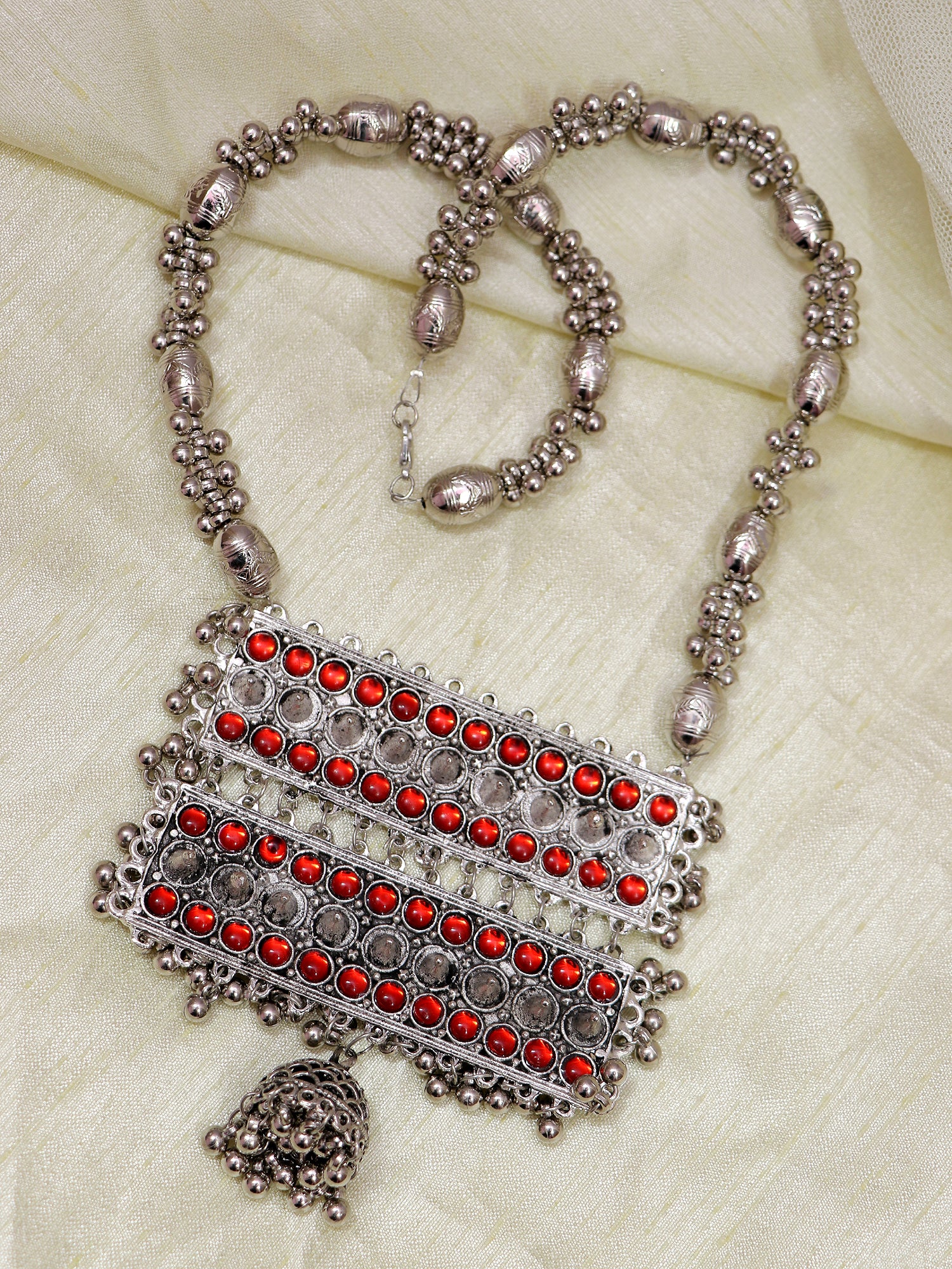 German Oxidized Silver Long Neck Chain Necklace in Radiant Red