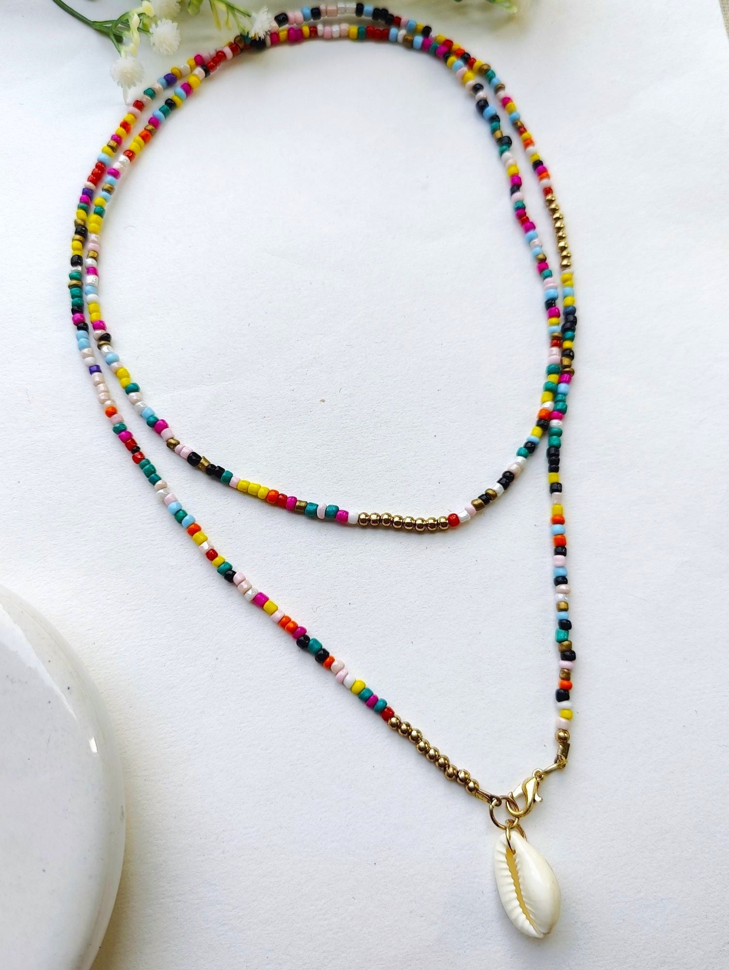 Swank Colorsplash Handcrafted Beach Seed Beaded Choker - A Quirky Multilayer Necklace