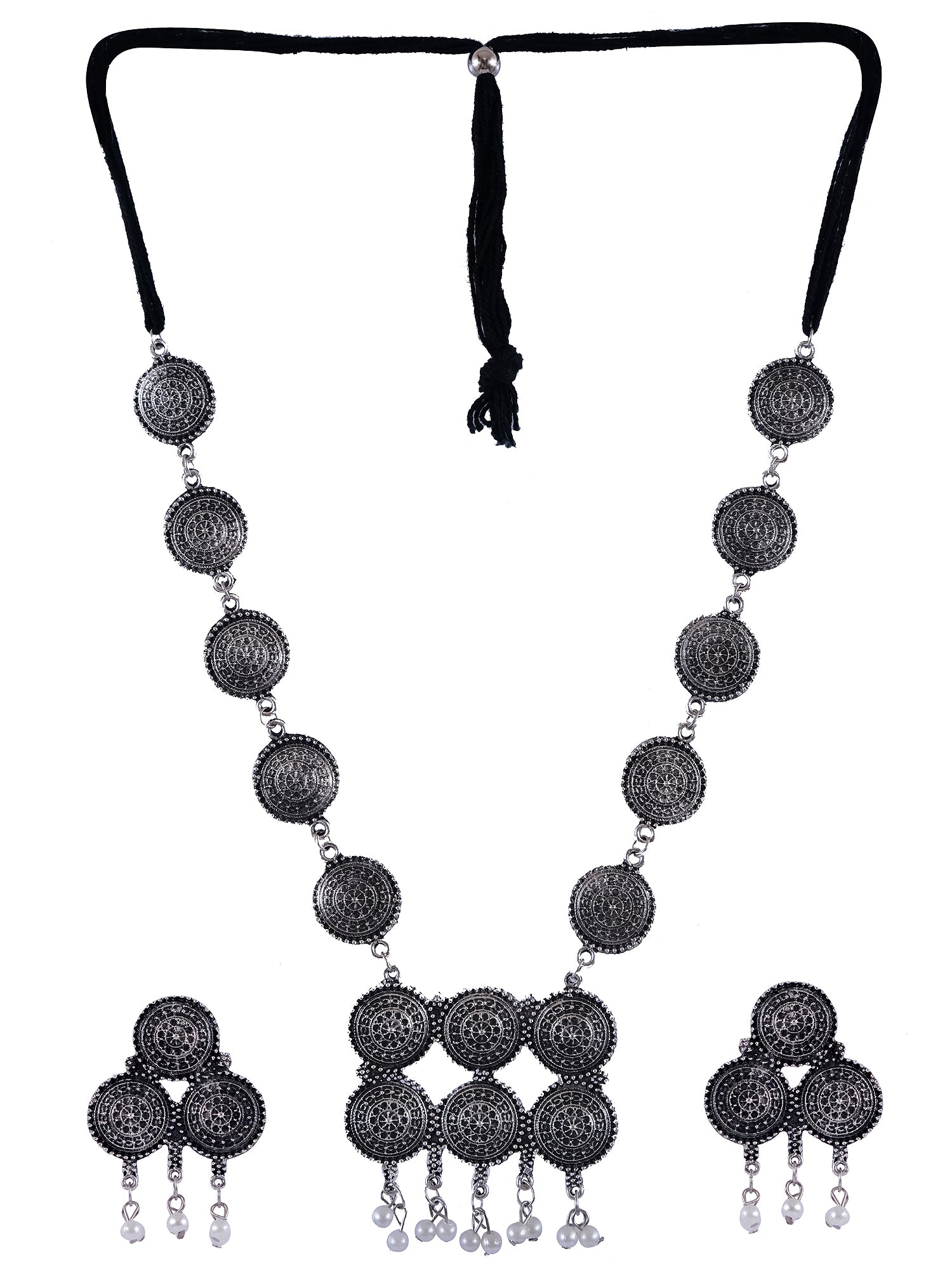 Meera Oxidized Silver Jewellry Set- Oxidized Silver Coin Banjara Necklace Set for Women