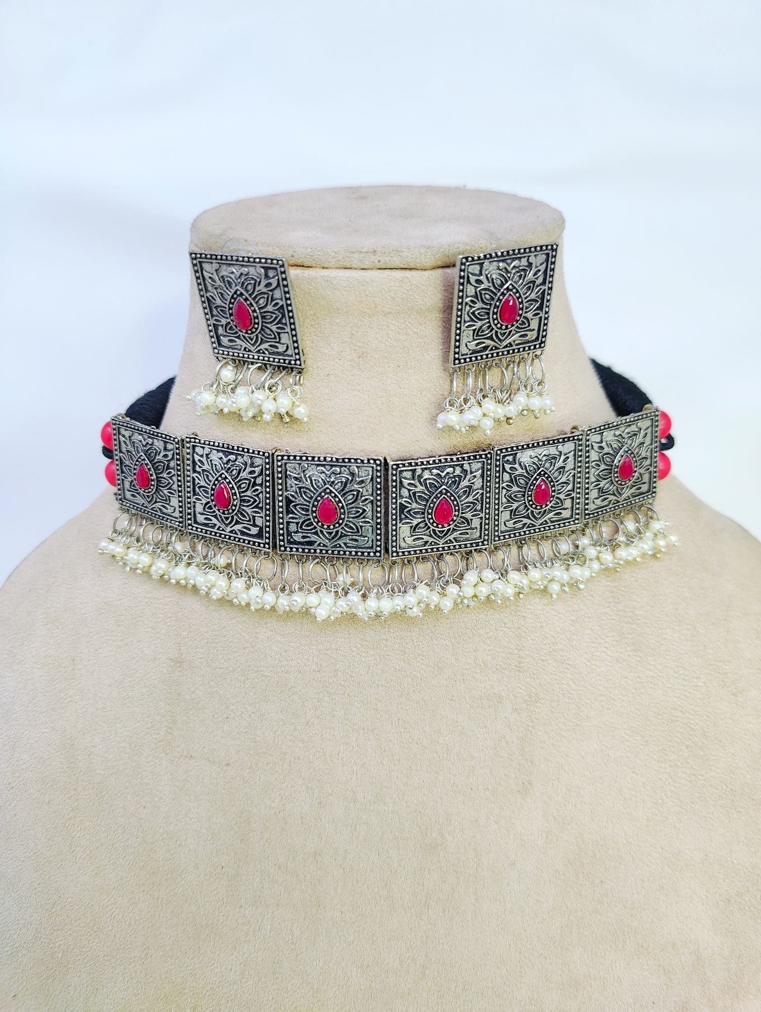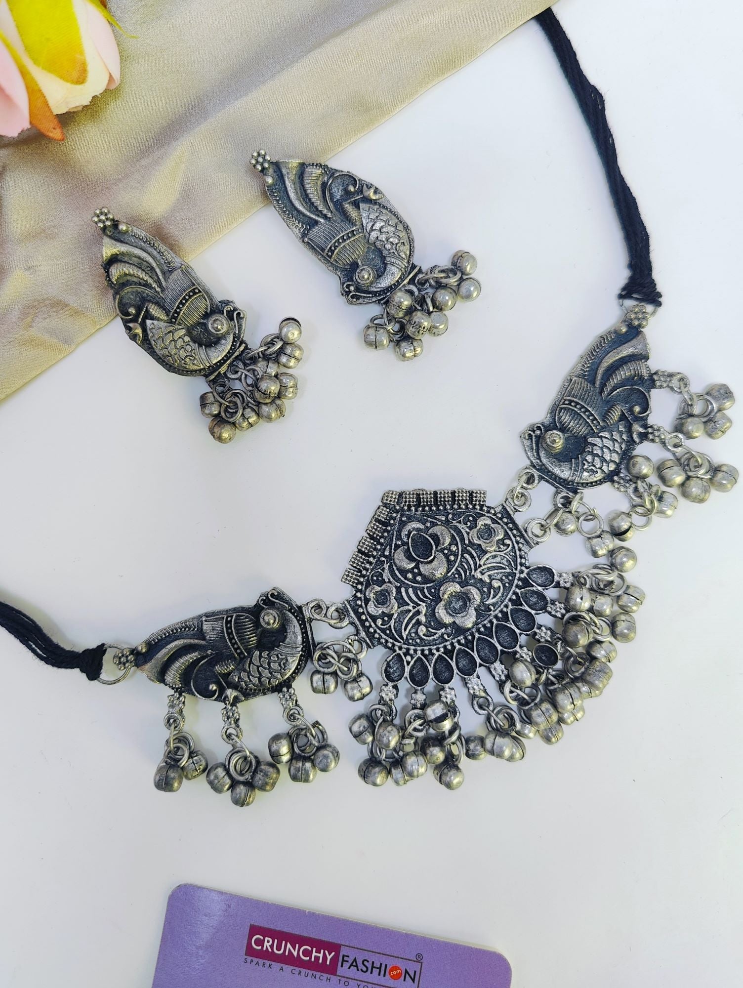 - Oxidised Silver Antique Choker Set for Boho Fashion