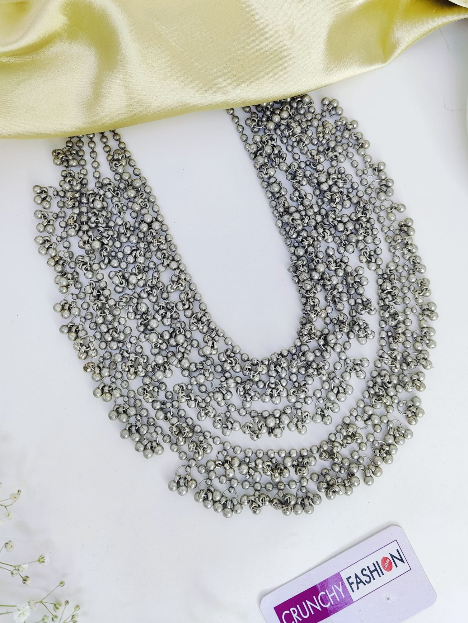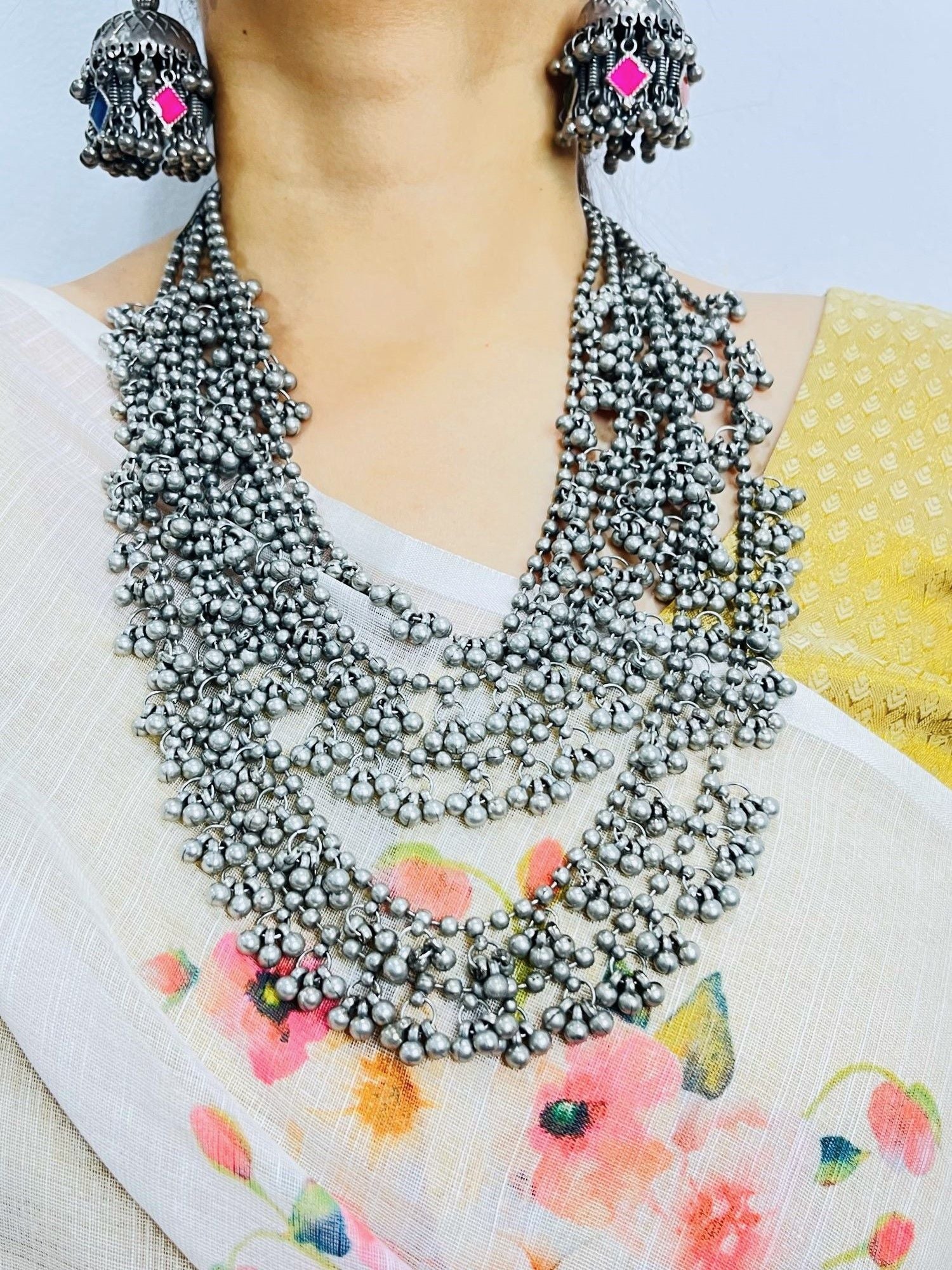 - Silver Oxidised Afghan Style Ghoongoo Necklace Set for Women & Girls