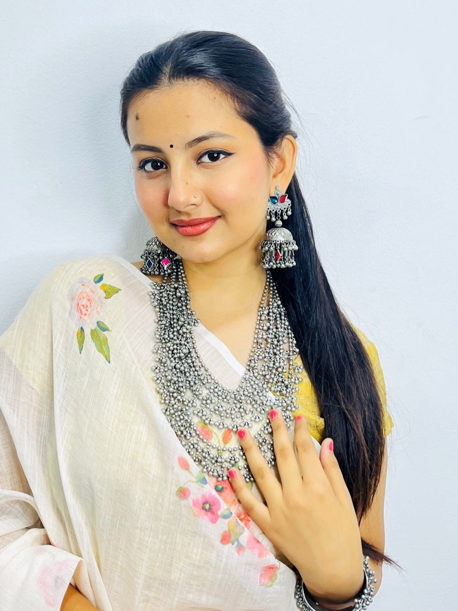 Silver Oxidised Afghan Style Ghoongoo Necklace Set for Women & Girls