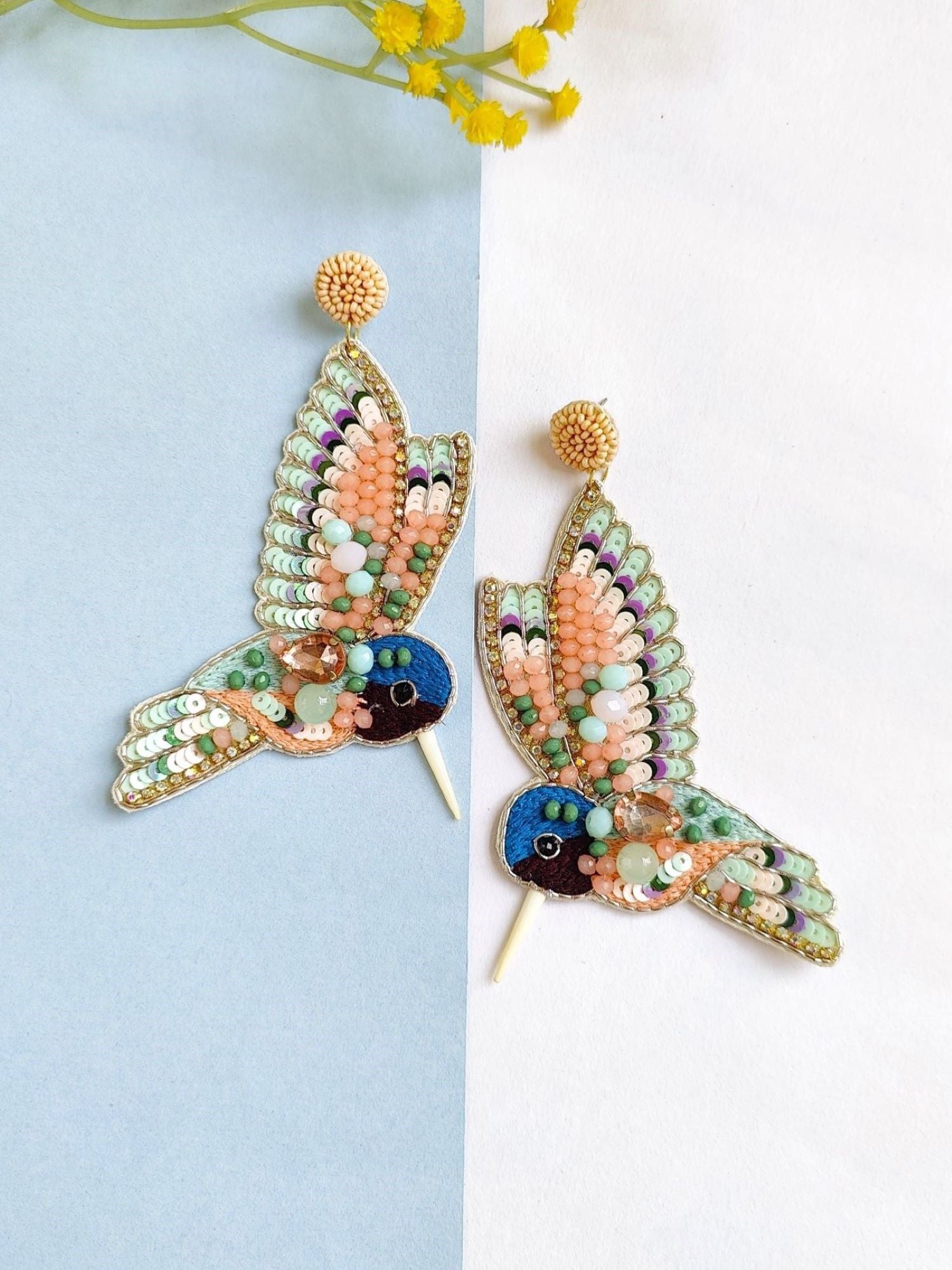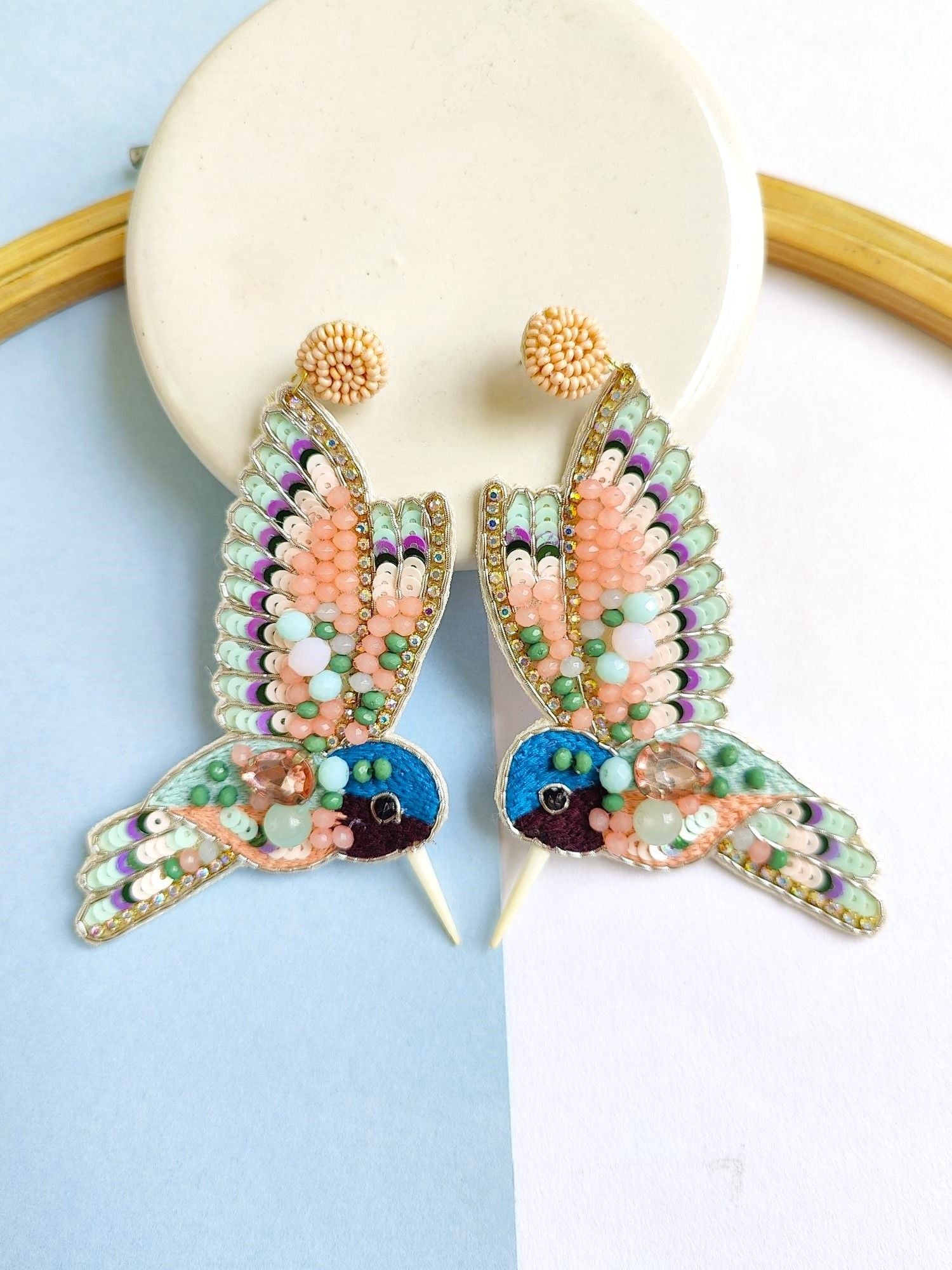 Colorful Handmade Beaded Bird - A Quirky Party Wear Earring for Women and Girls