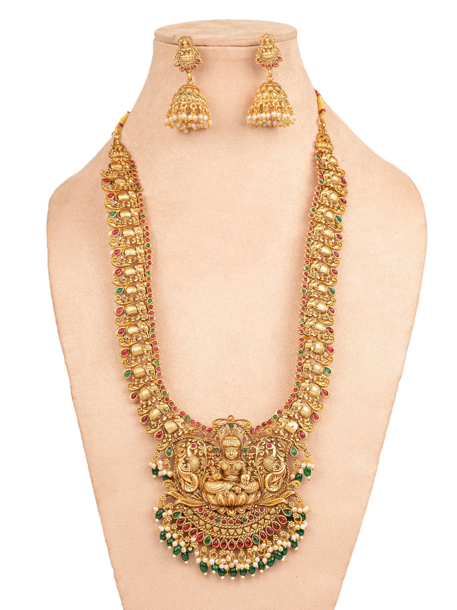 Traditional Indian Goddess Laxmi Long Temple Jewellery Set for Women