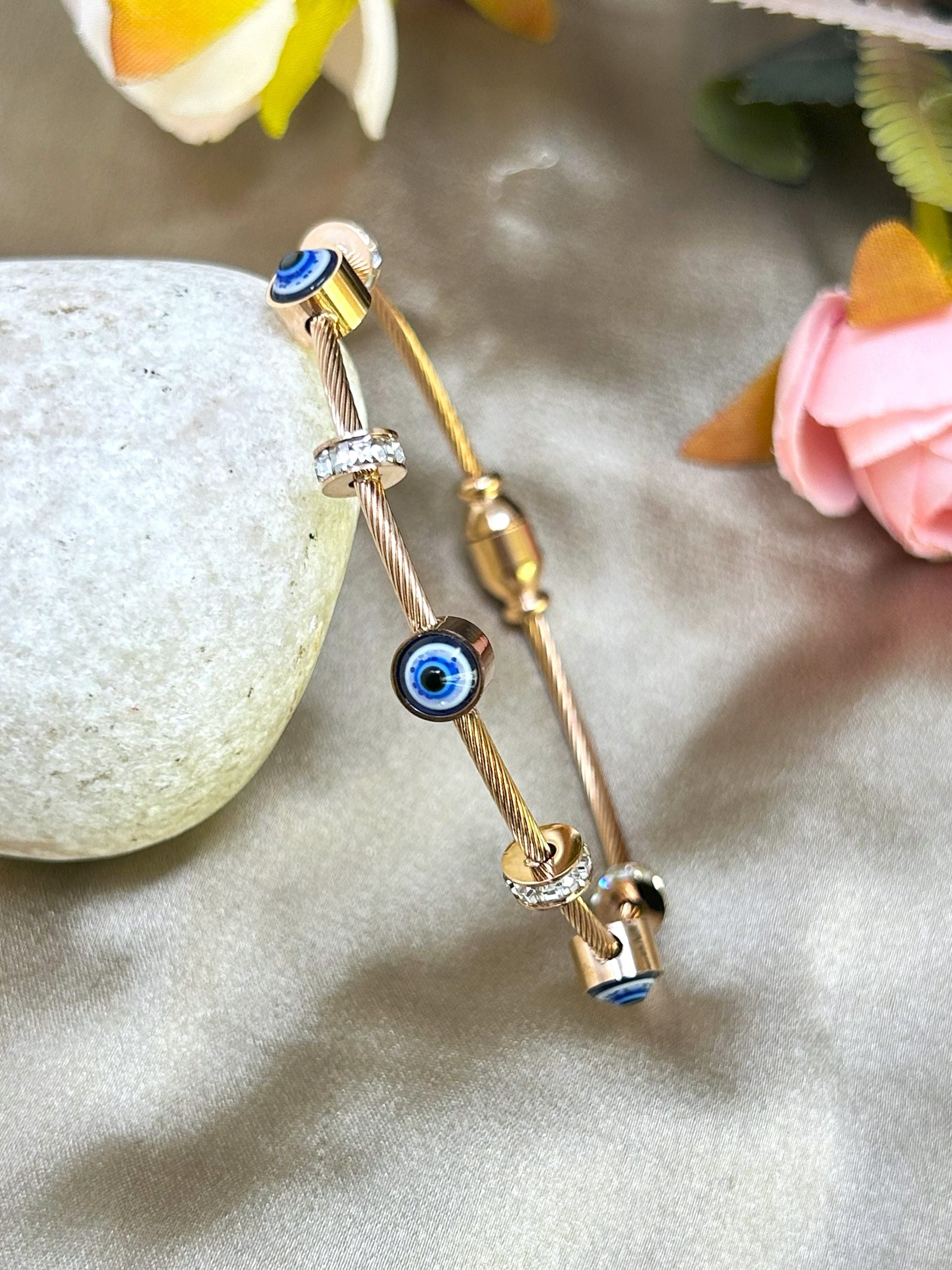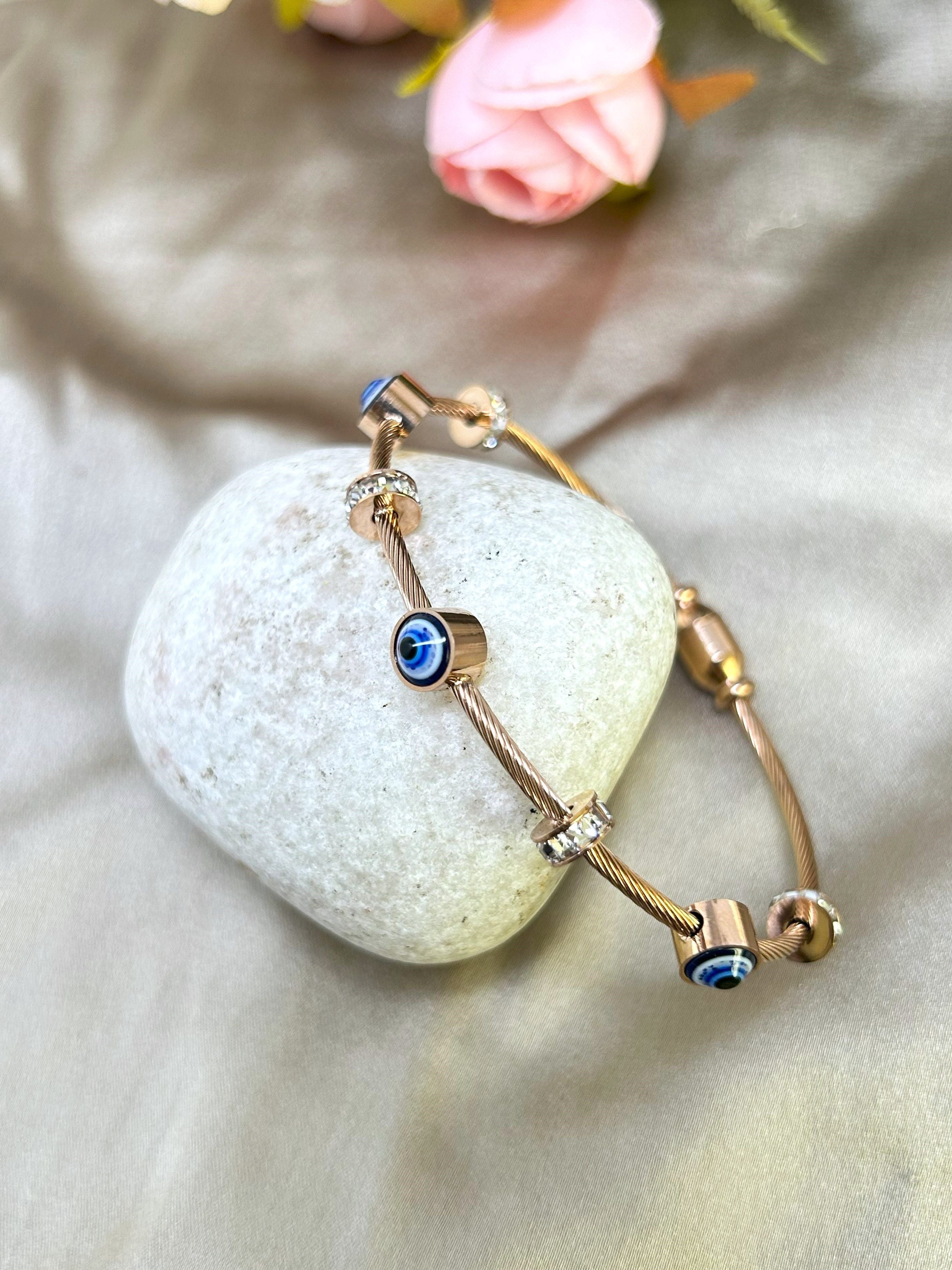 Classic Rose Gold Evil Eye Bracelet for Women-Girls: Anti-Tarnish and Water Proof