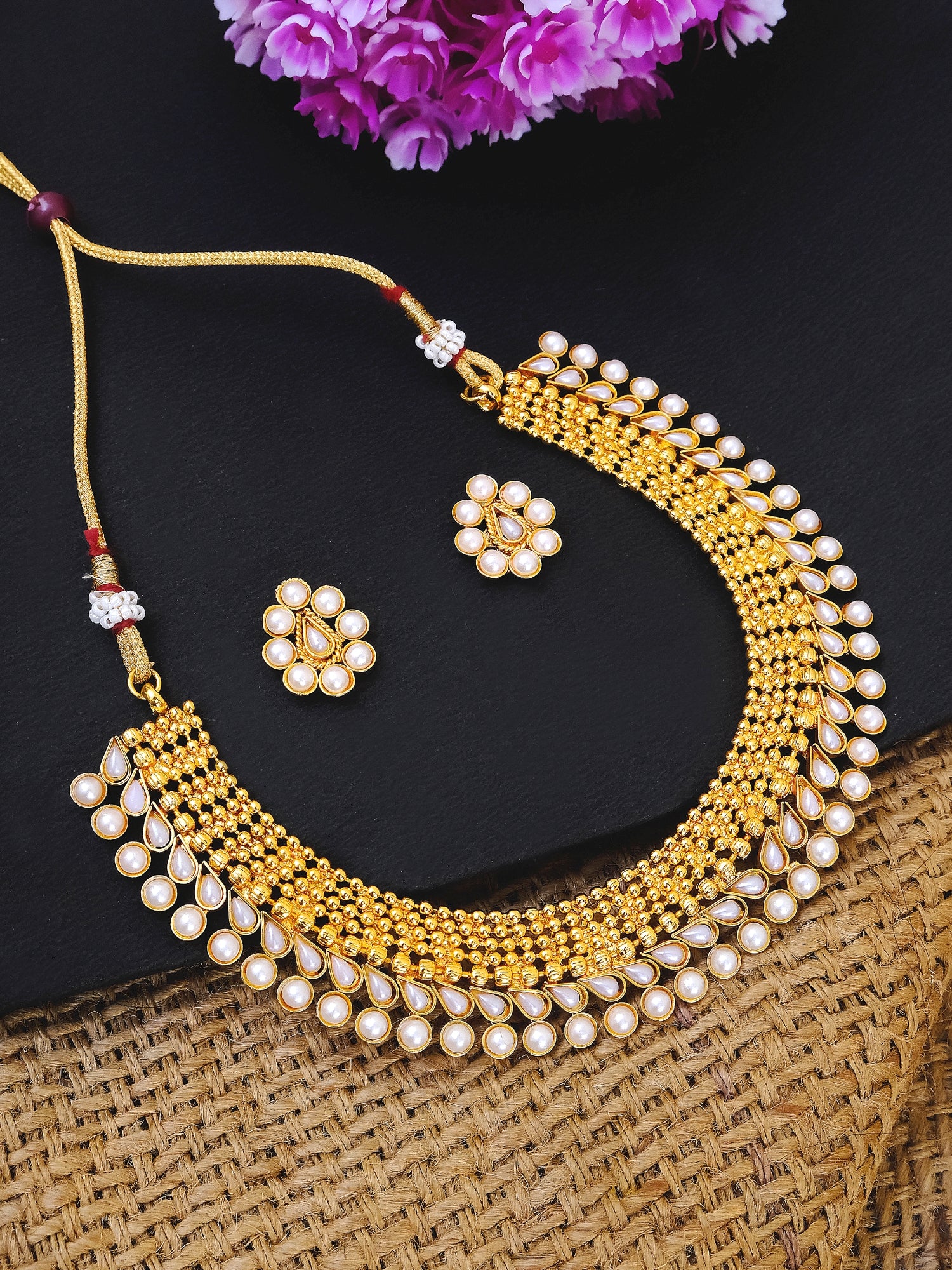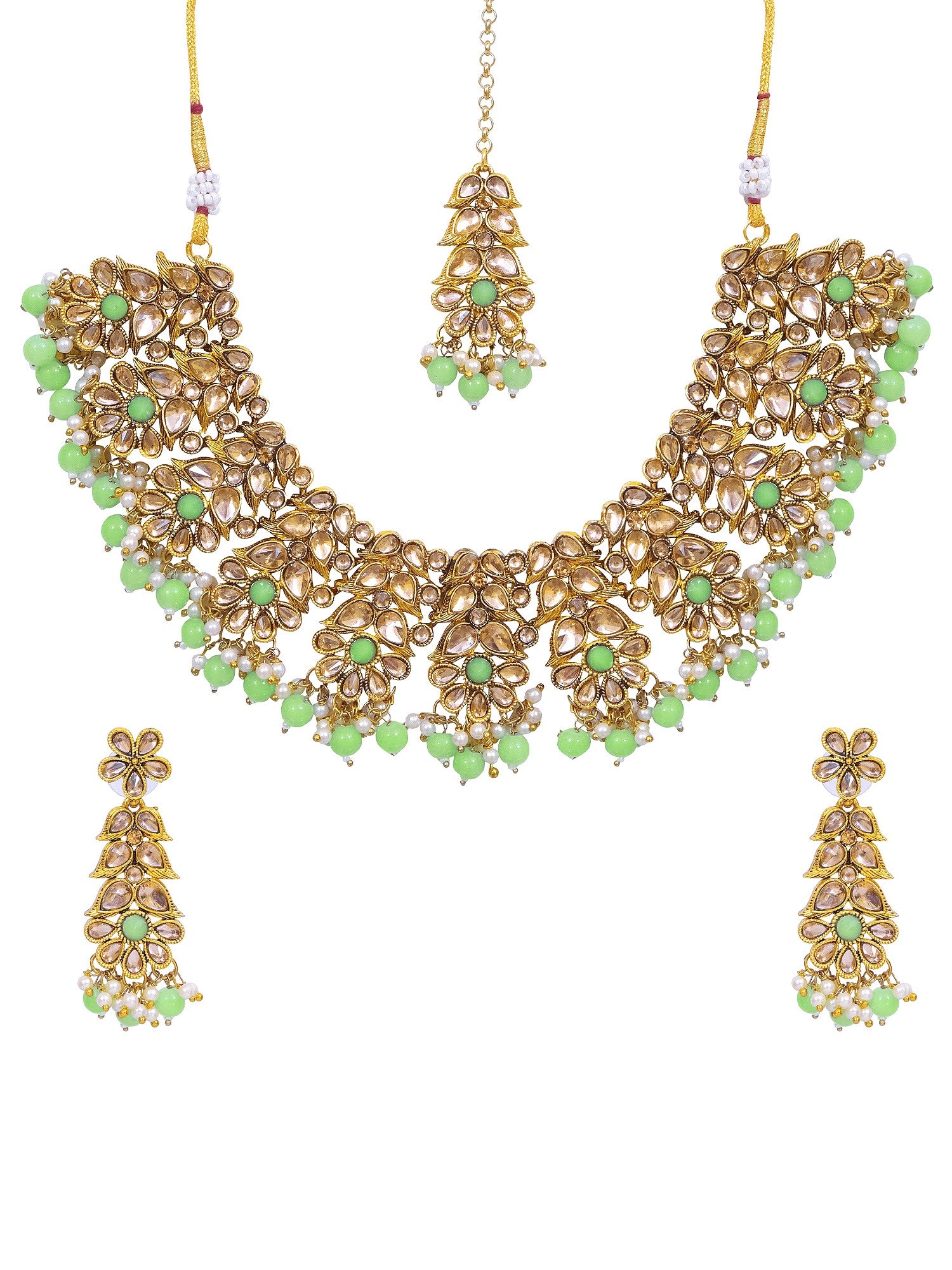 - Traditional Mint Green Gold Plated Kundan Necklace Set