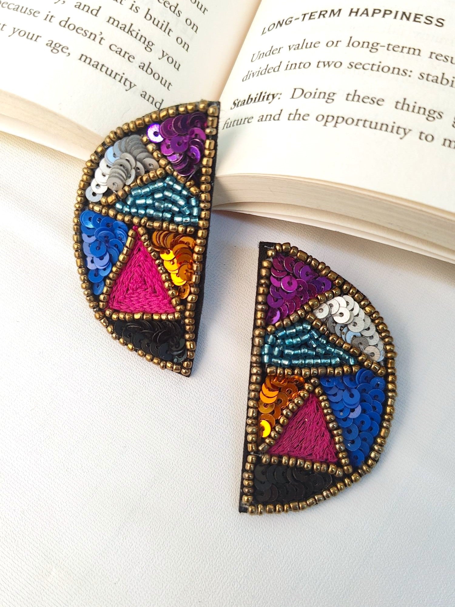 Ardh's Quirky Half-Moon Beaded Embroidery Earrings for Fashionistas