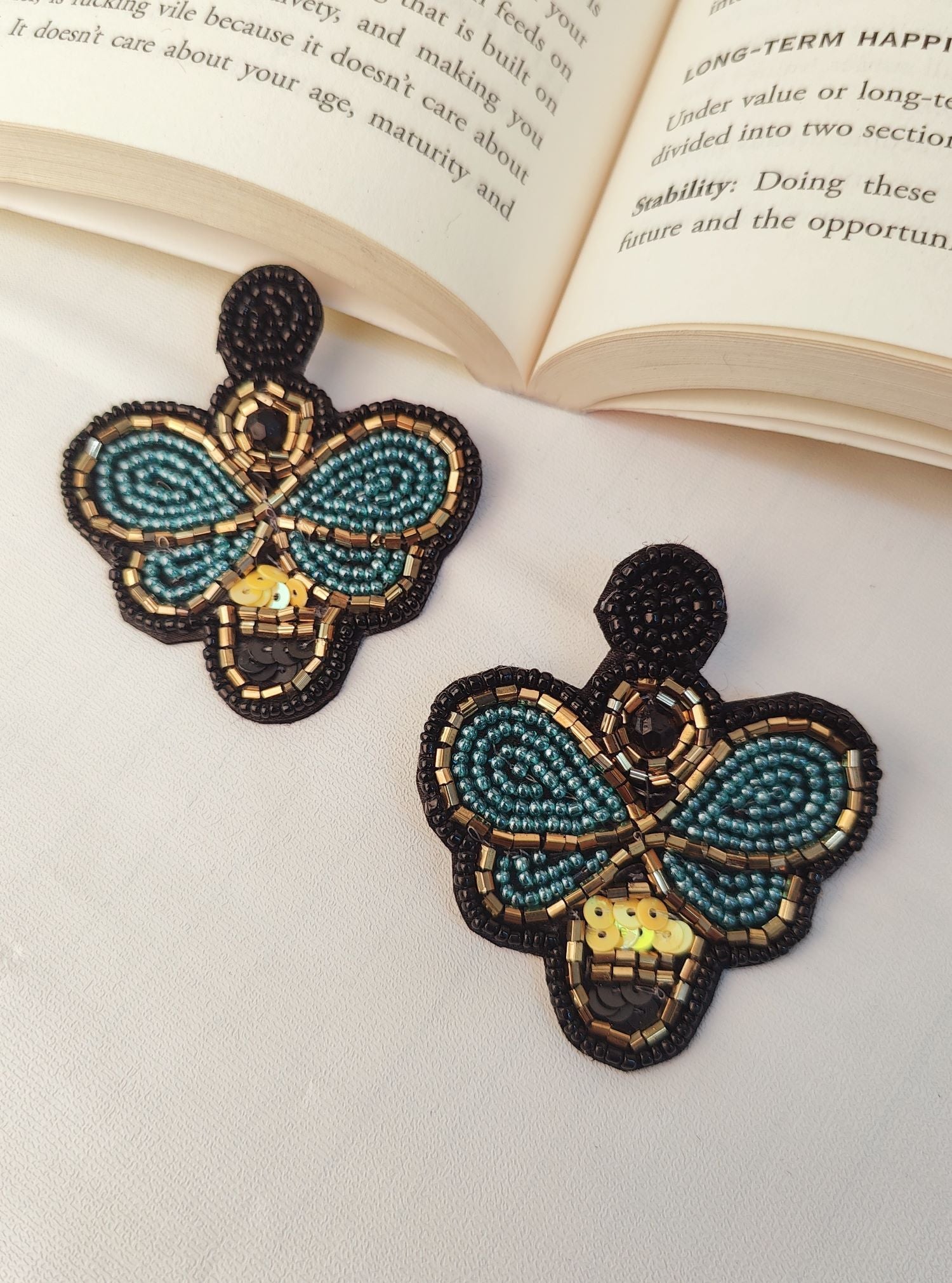 Flutterfly Charms: Handcrafted Multicolor Beaded Embroidered Earrings