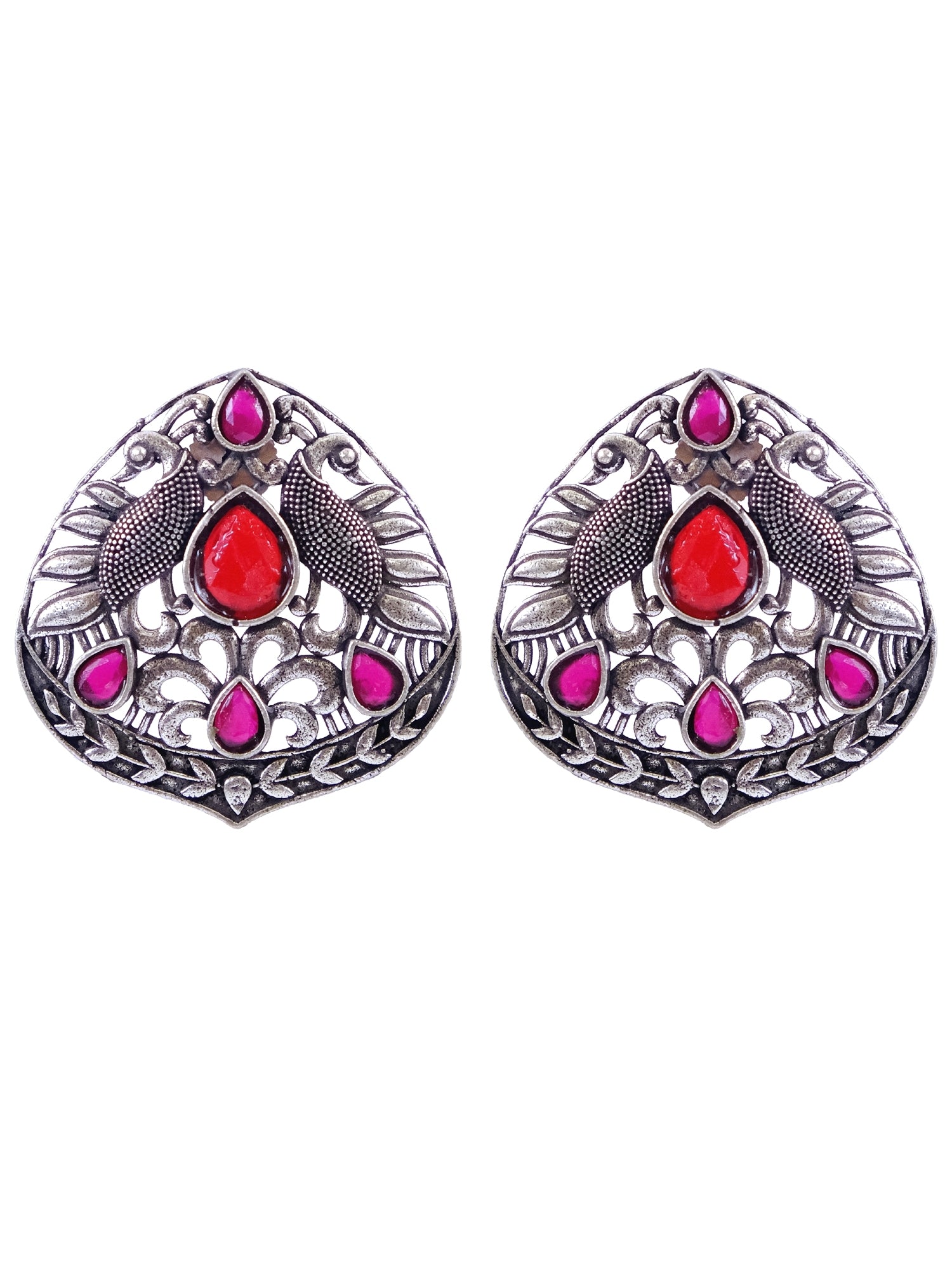 Oxidised Silver Plated Traditional Antique Peacock Stud Earrings for Women