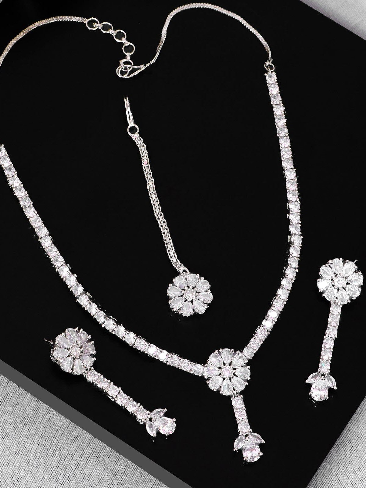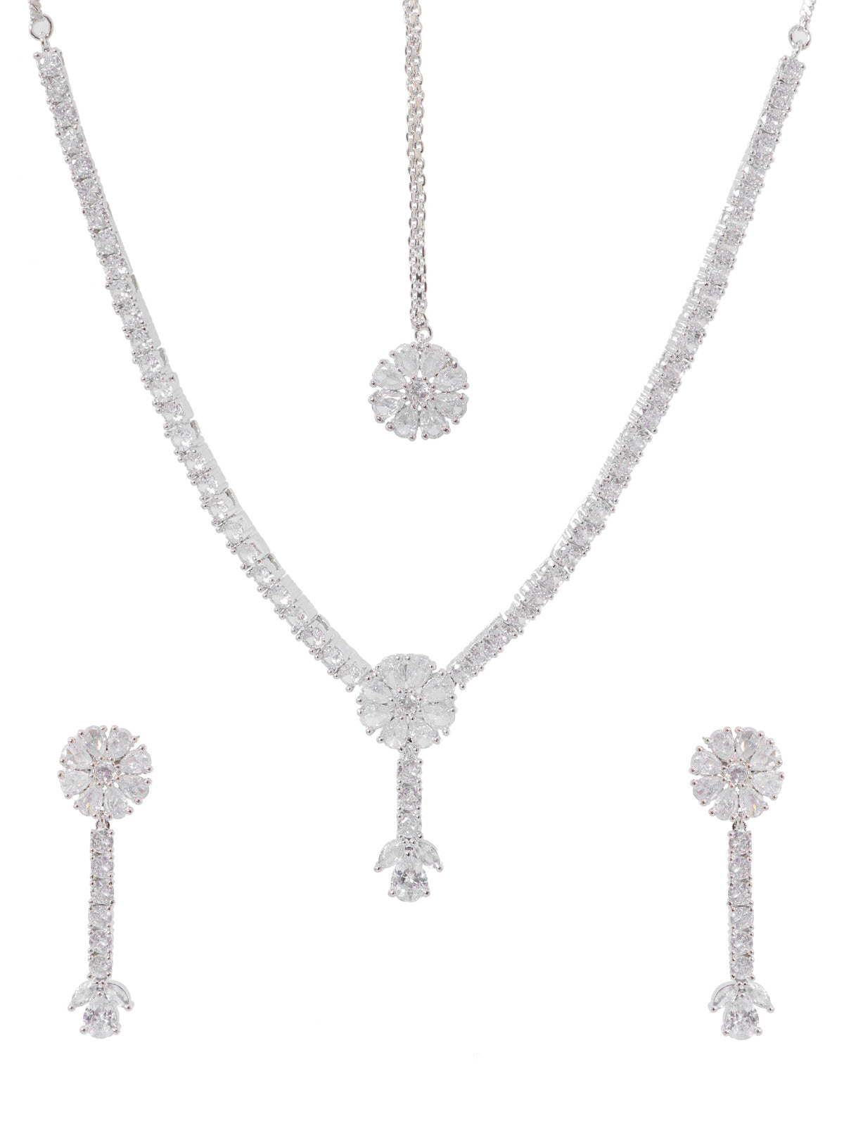 - SwaDev White Ruby Flower Silver-Pltaed American Diamond Jewellery Set SDJS0001
