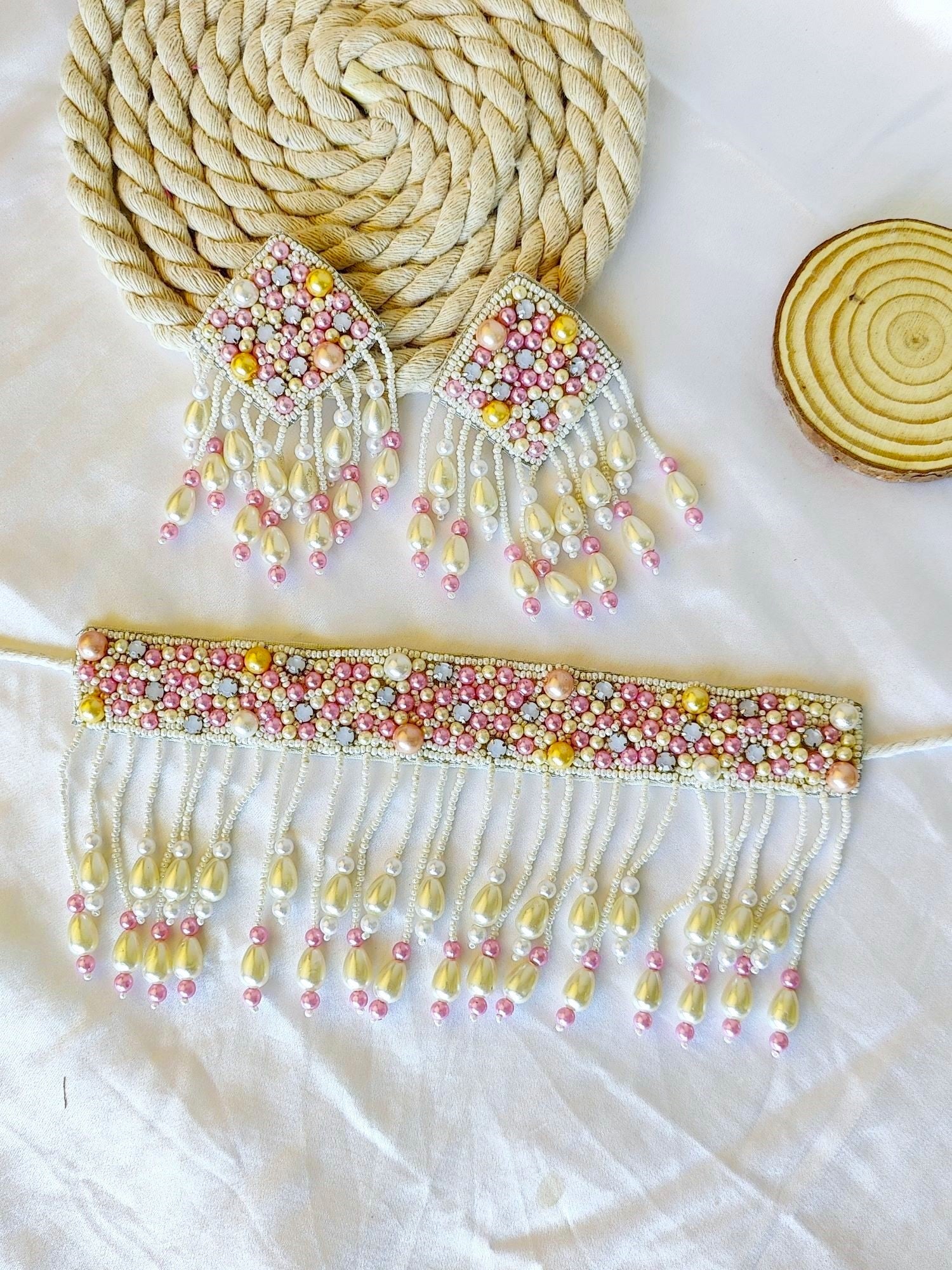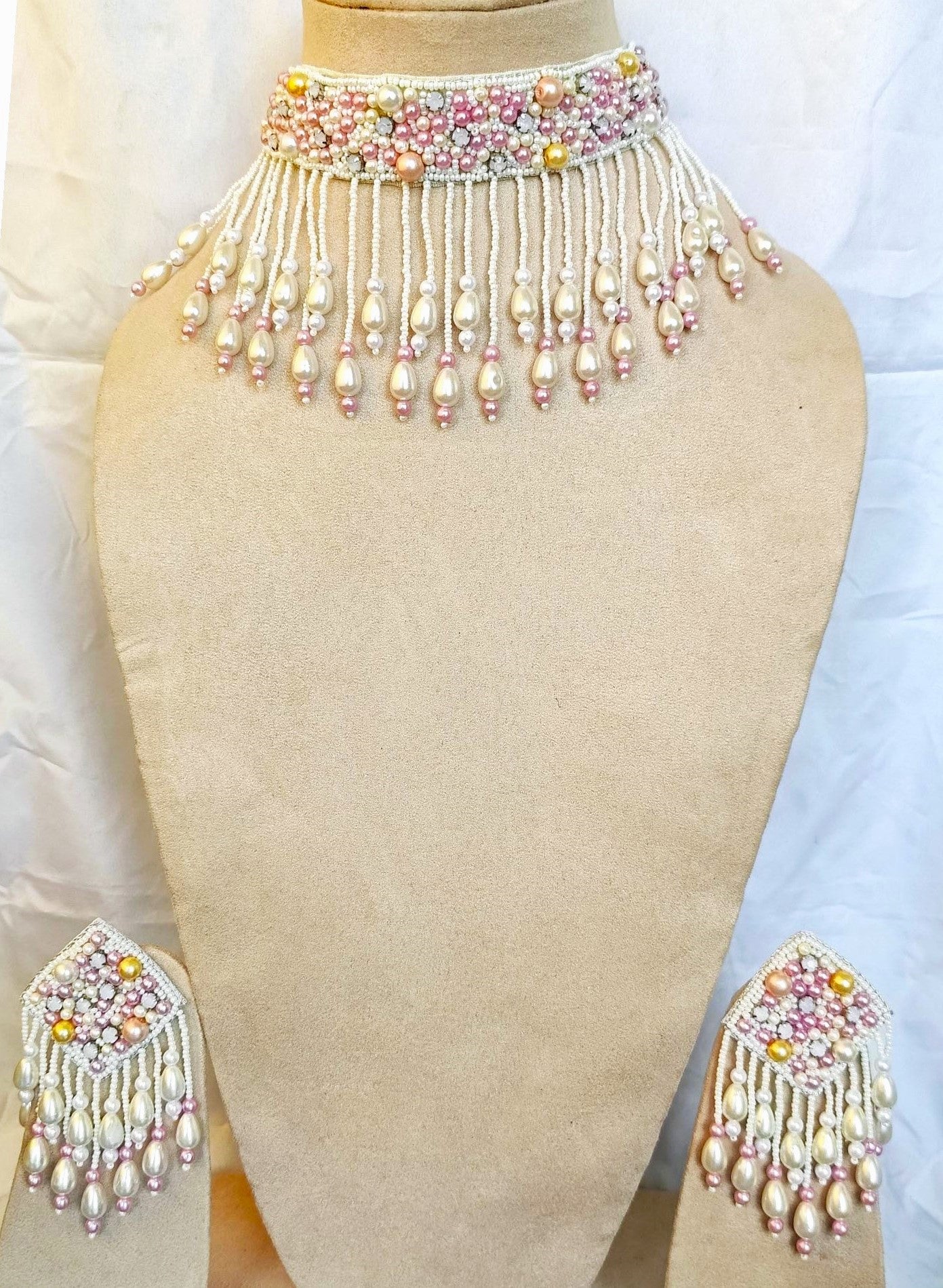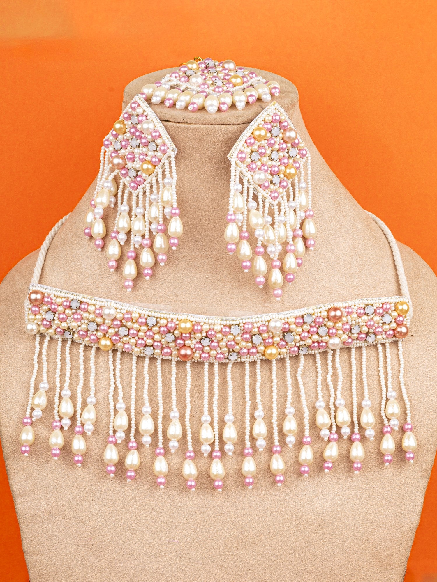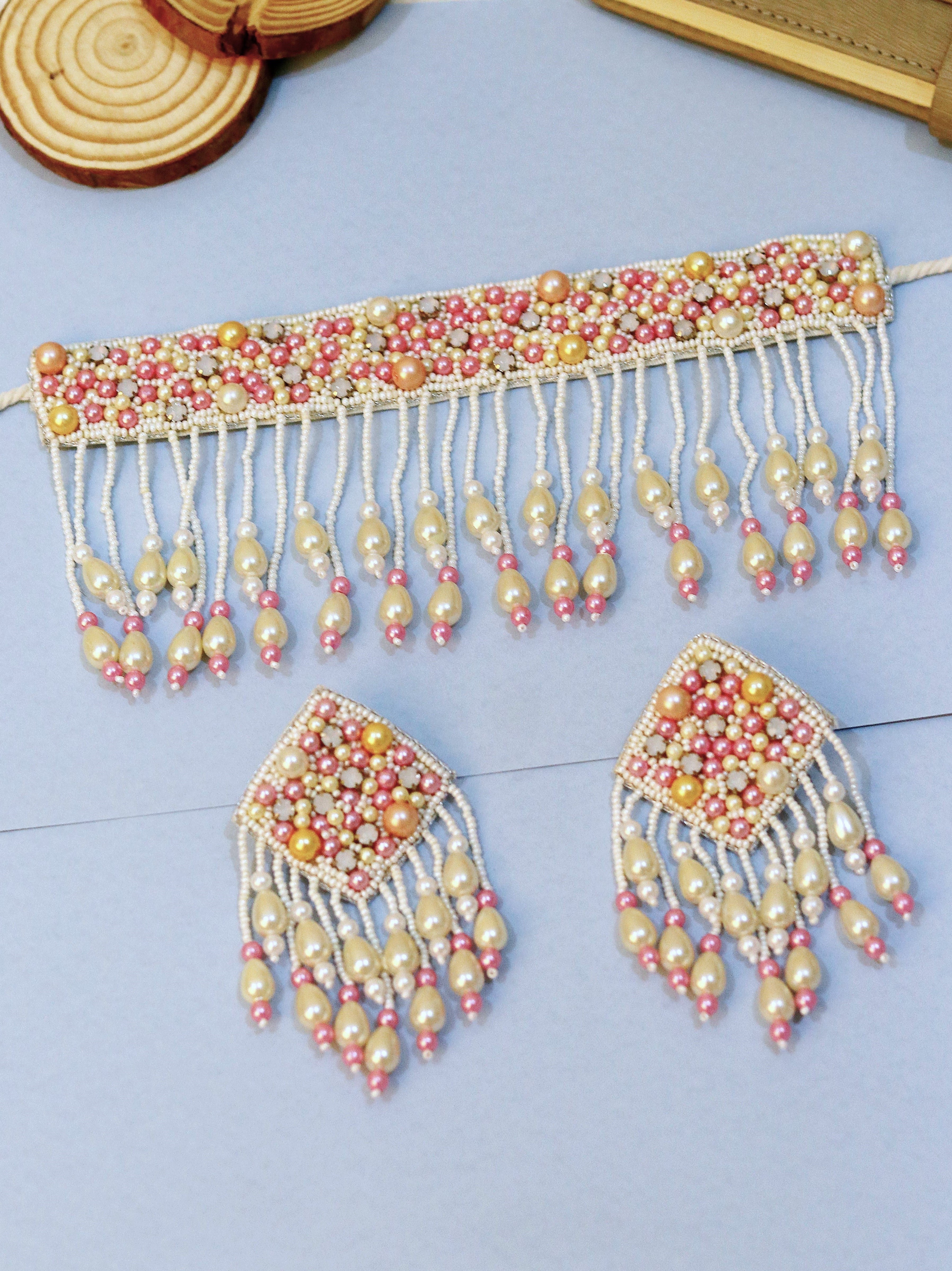 - Bubblicious Handmade Pearl Ensemble - Pink Beaded Necklace Set