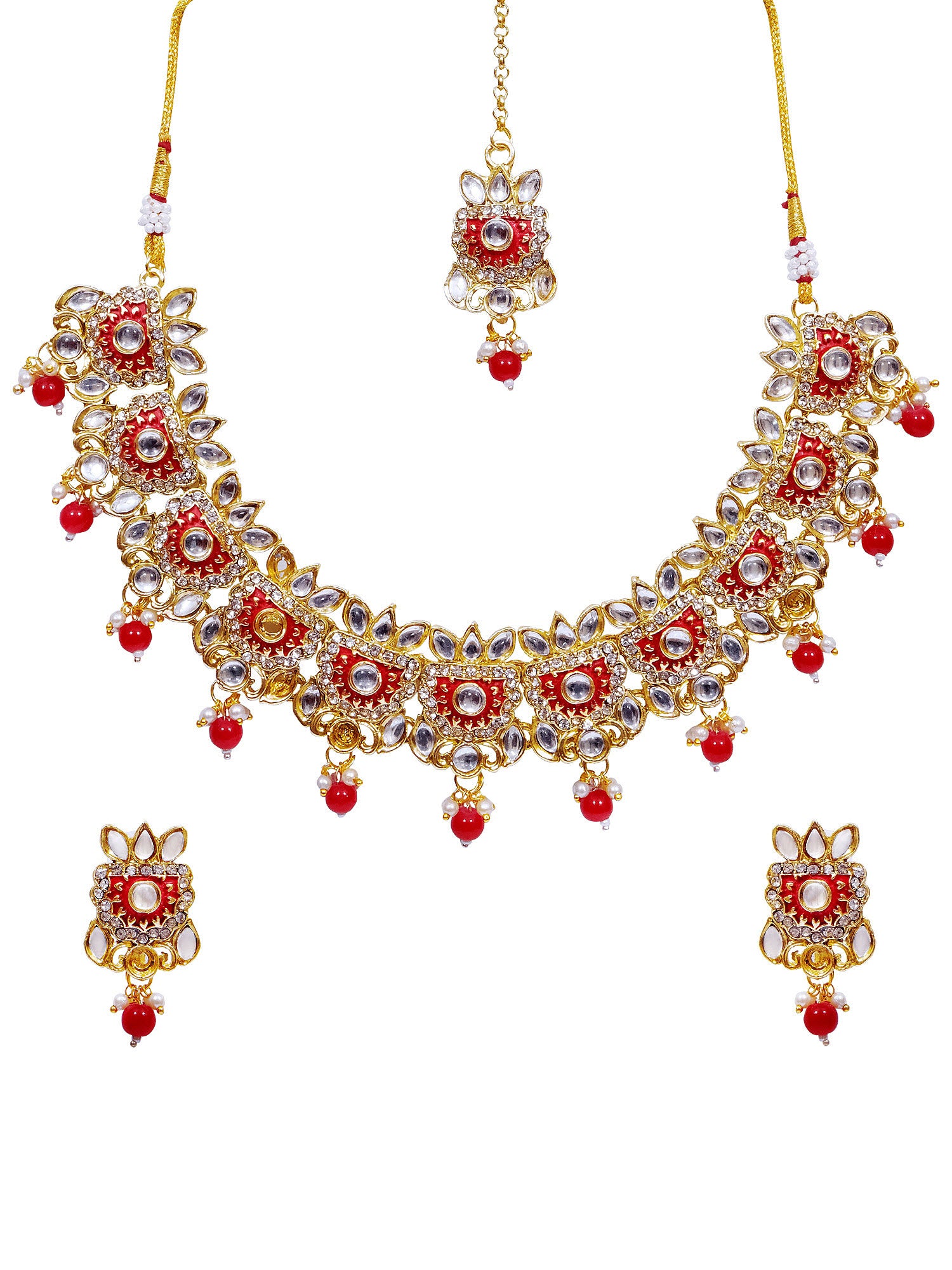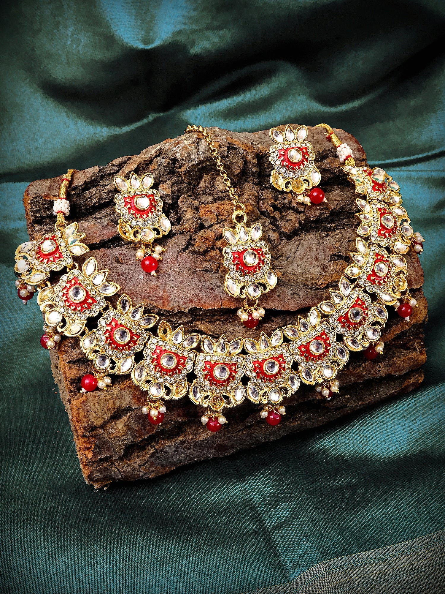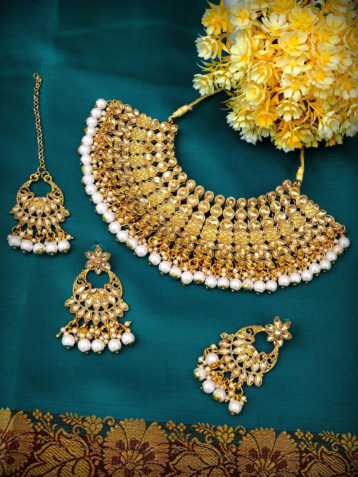 Traditional Gold Plated Choker Necklace Set with earrings & Maang Tika RAS0178