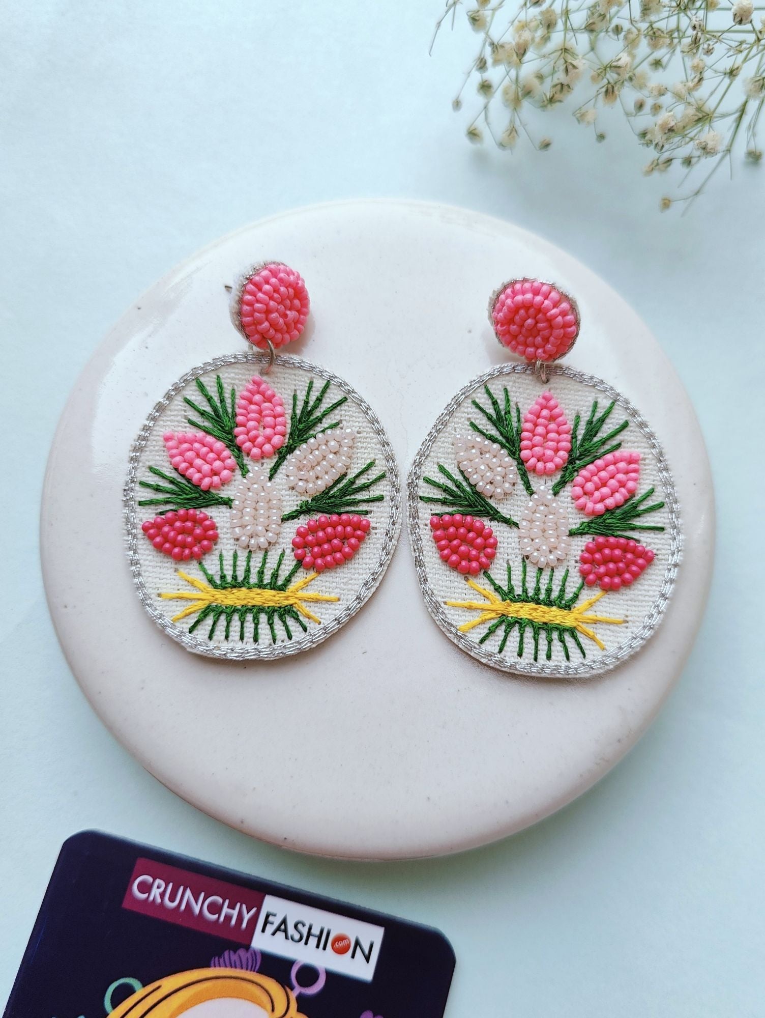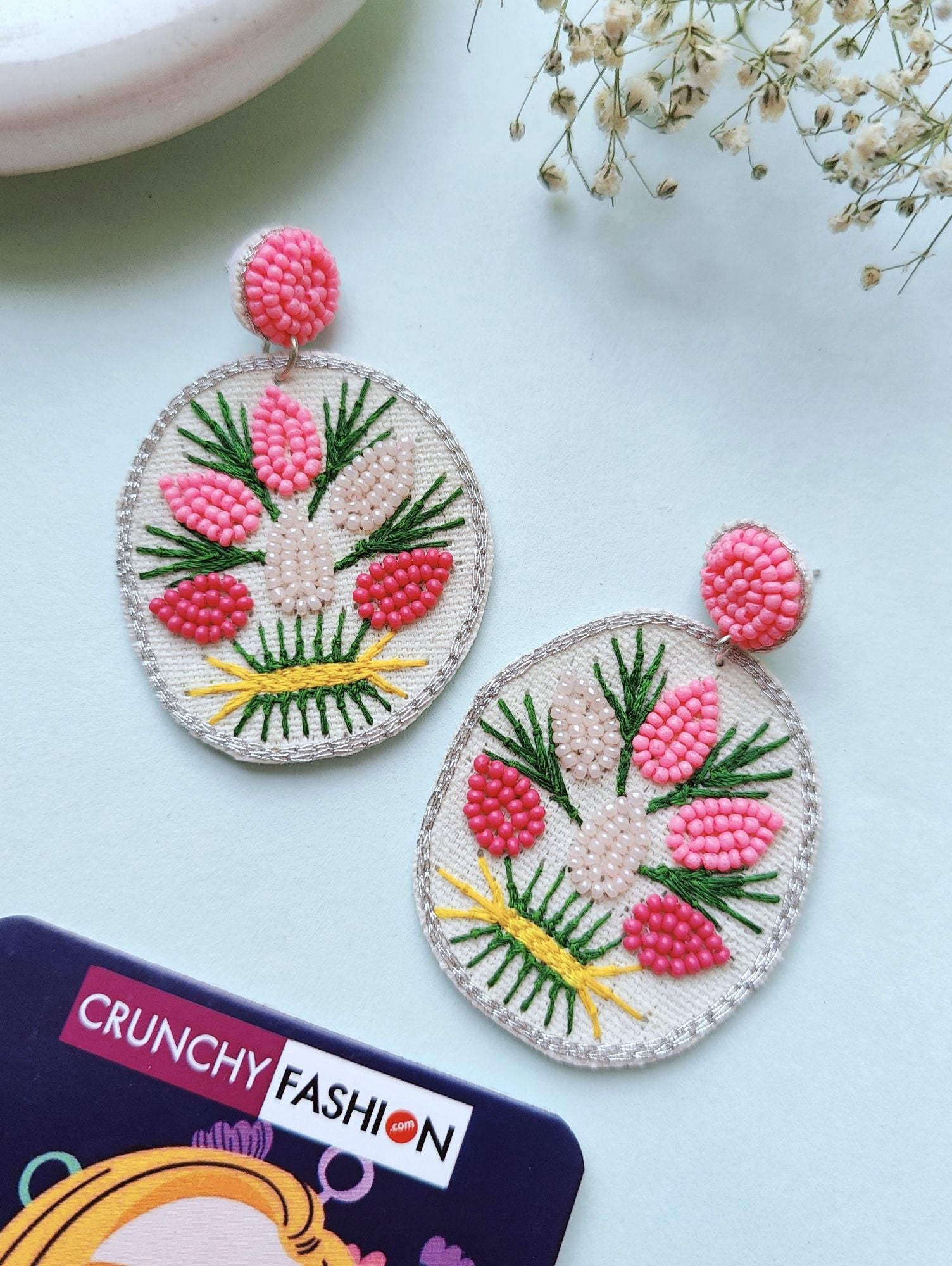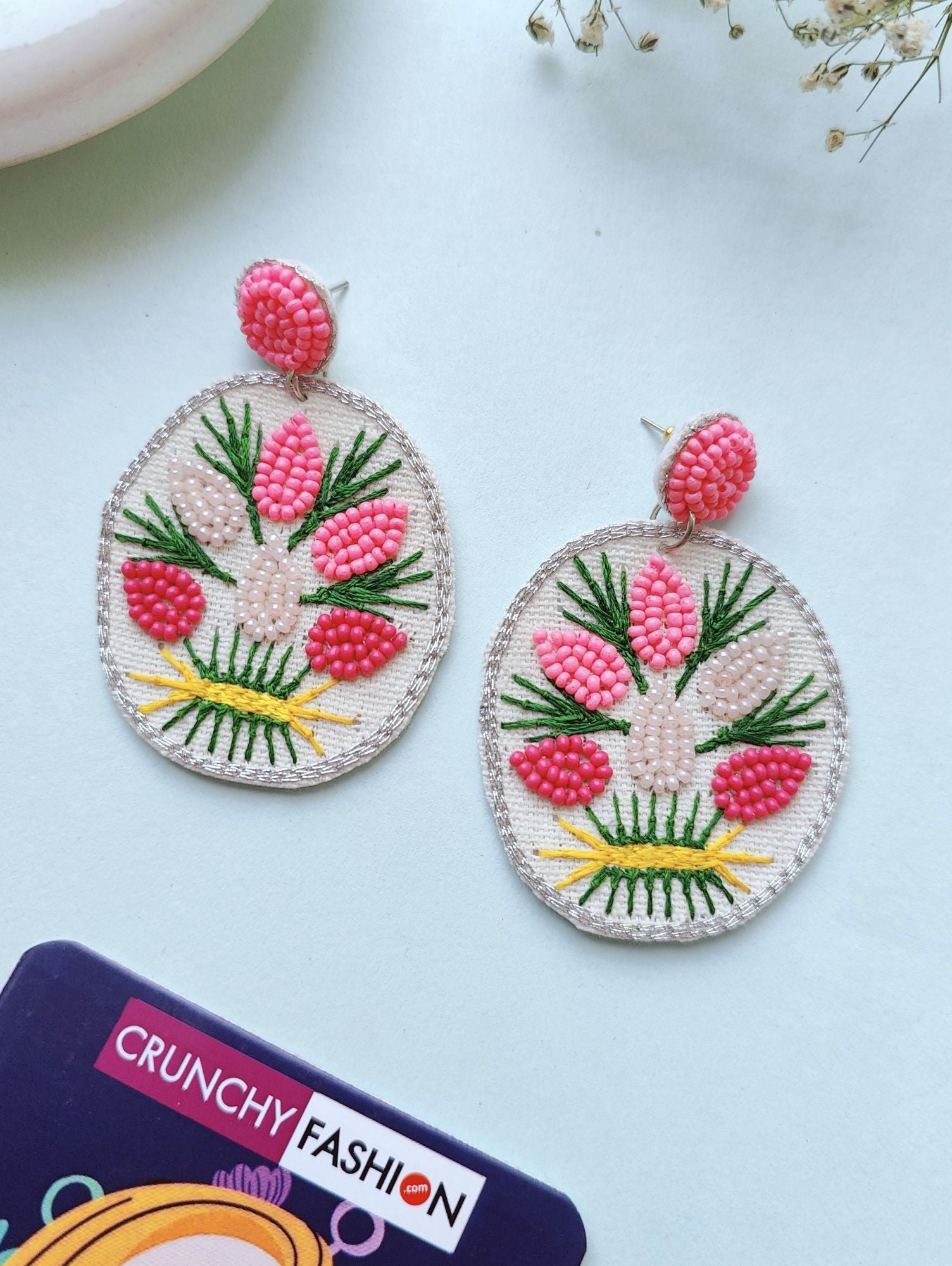 - Handcrafted White Flower Beaded Earrings, Women & Girls