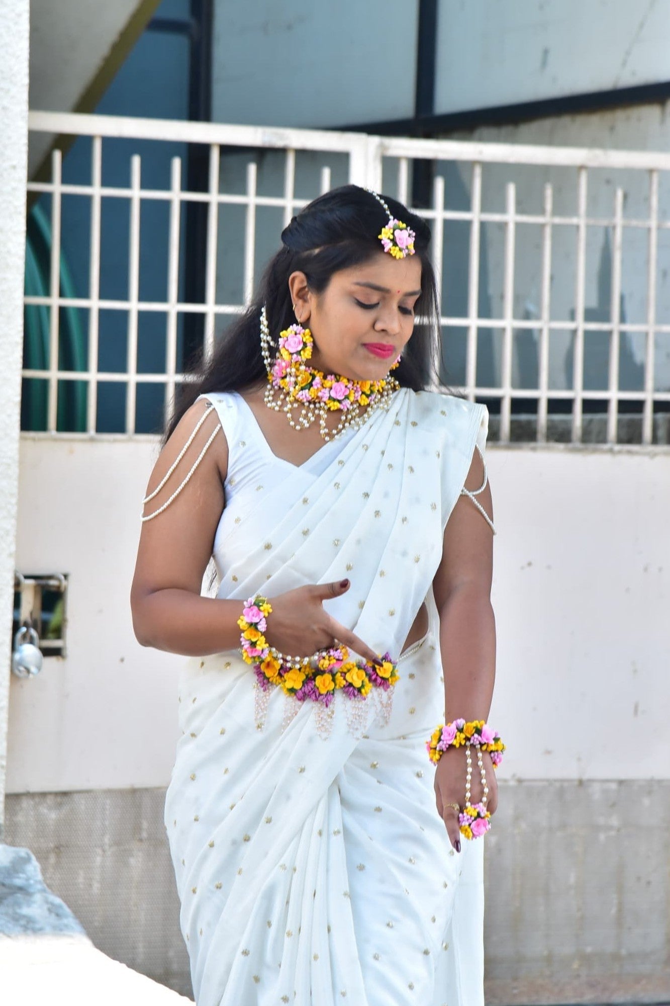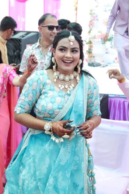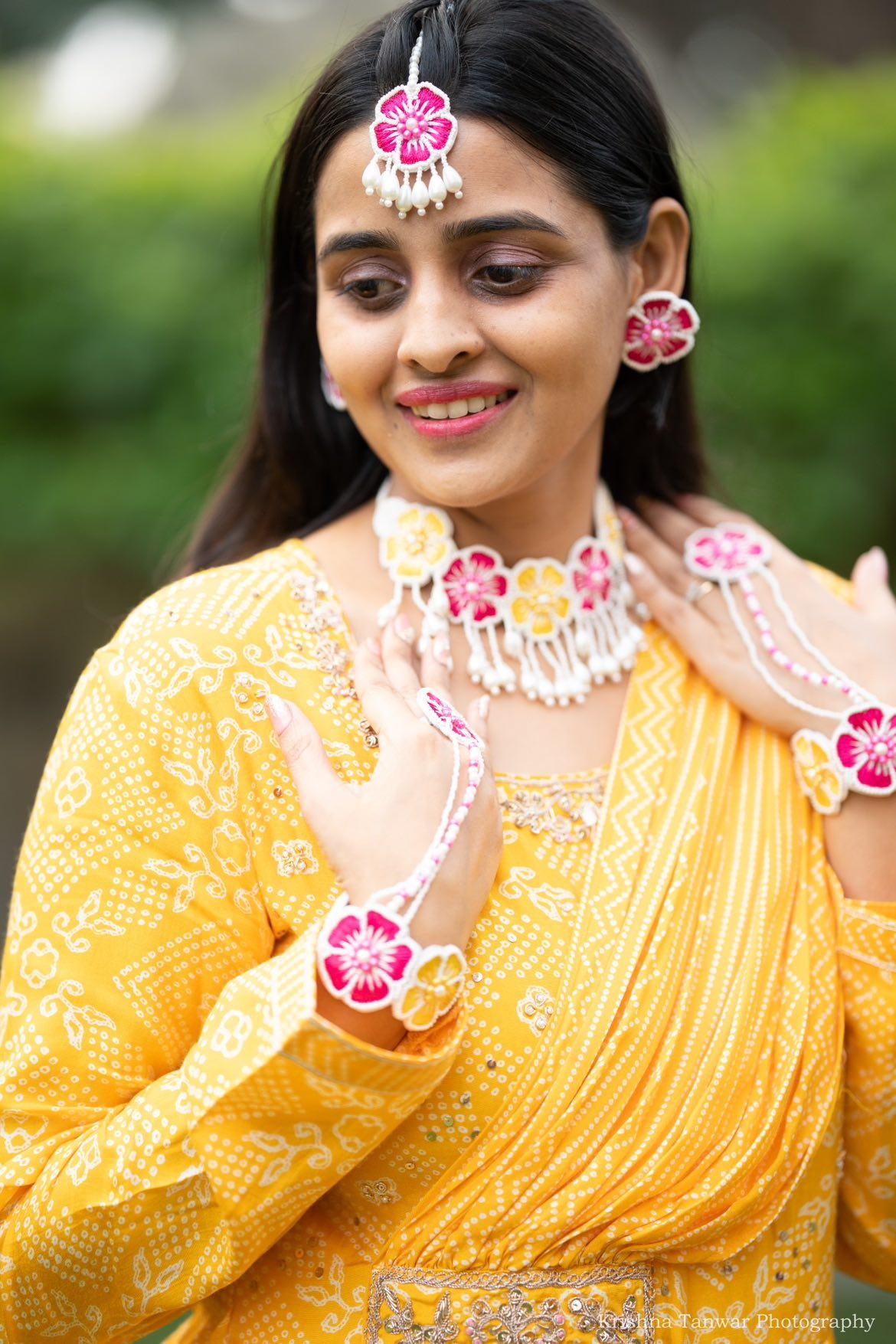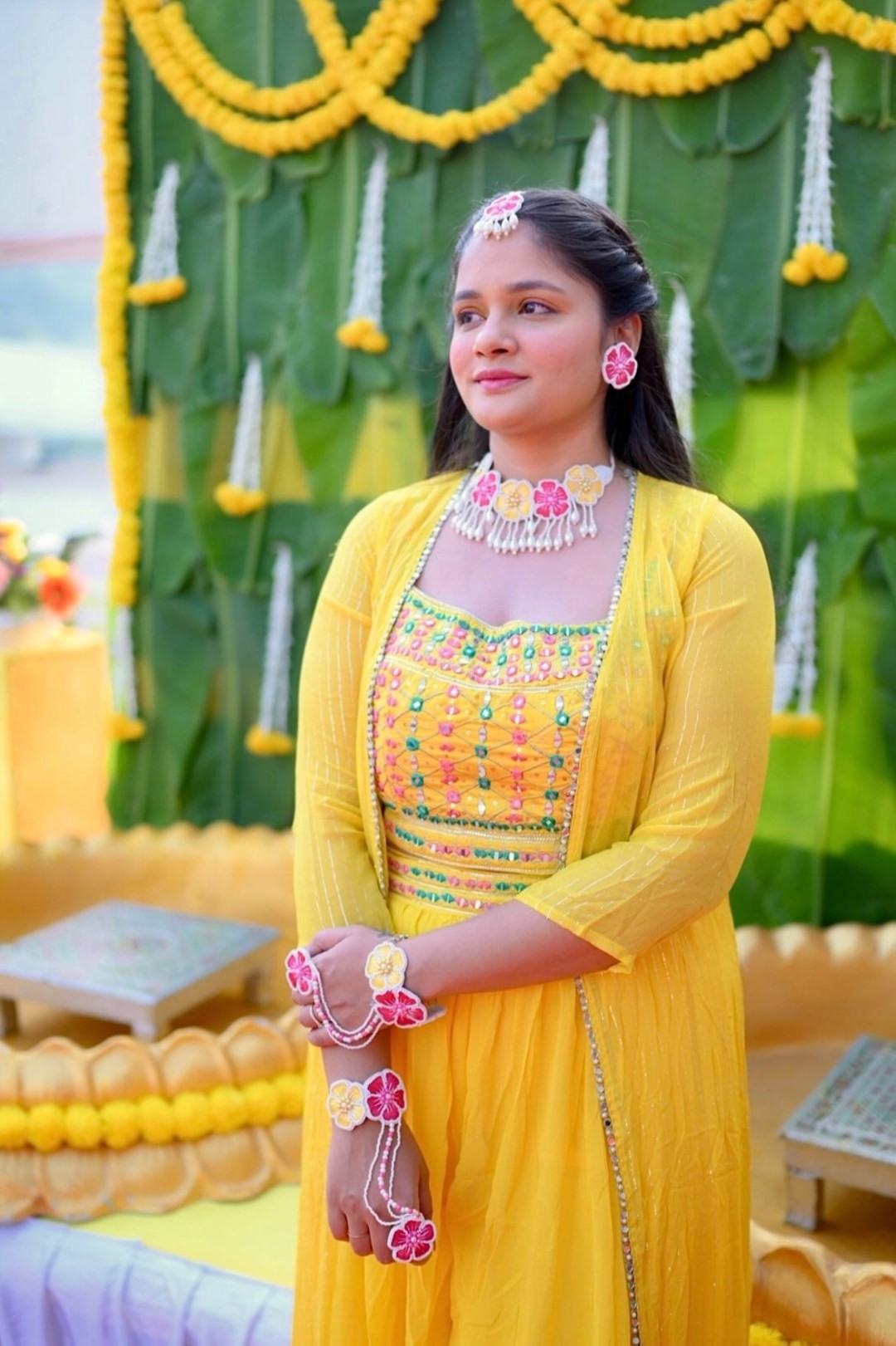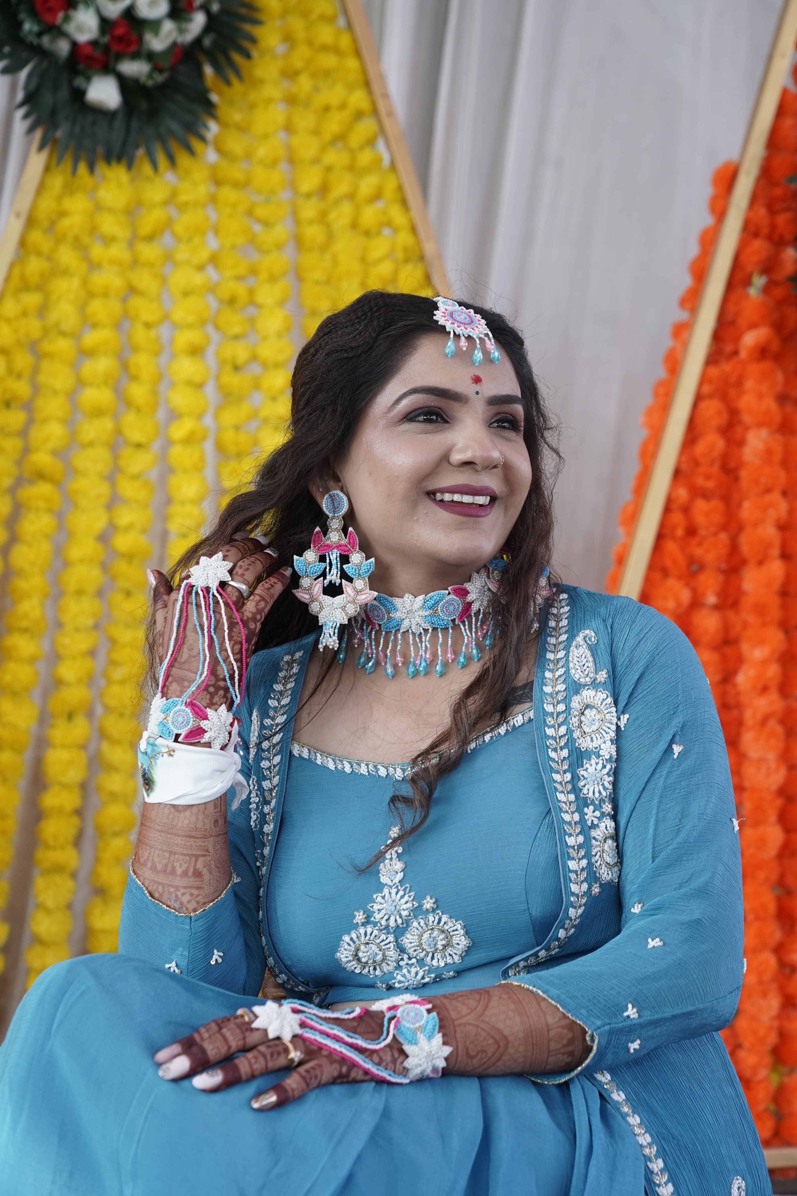 Discover the top-rated and most loved floral and beaded jewellery sets from our customers. Browse through real customer reviews and photos to see how our products have been styled for haldi ceremonies. Shop now for the perfect set to make your haldi ceremony unforgettable