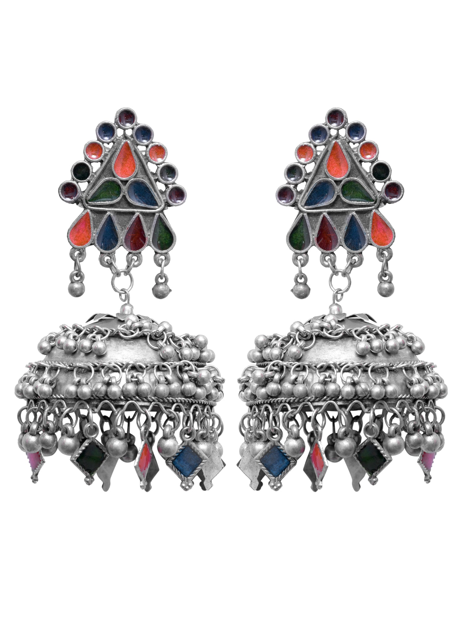 - Adhira Banjara Jhumka- Oxidised Silver Boho Big Size Jhumka Earrings for Women