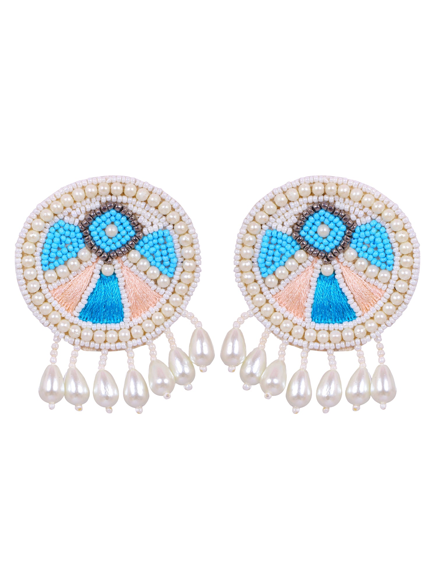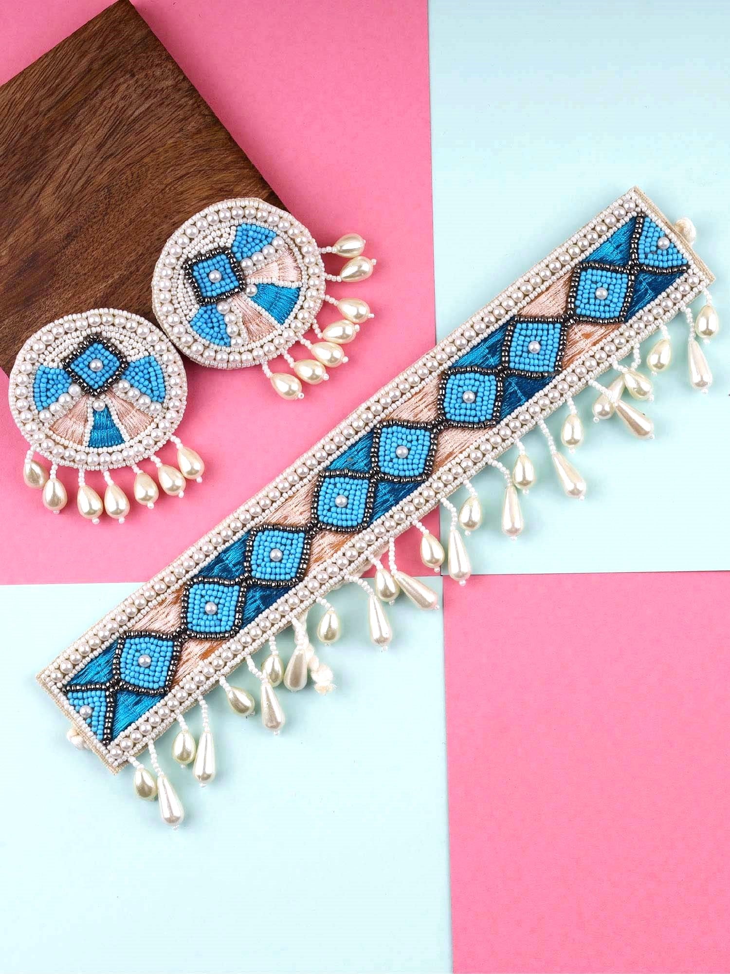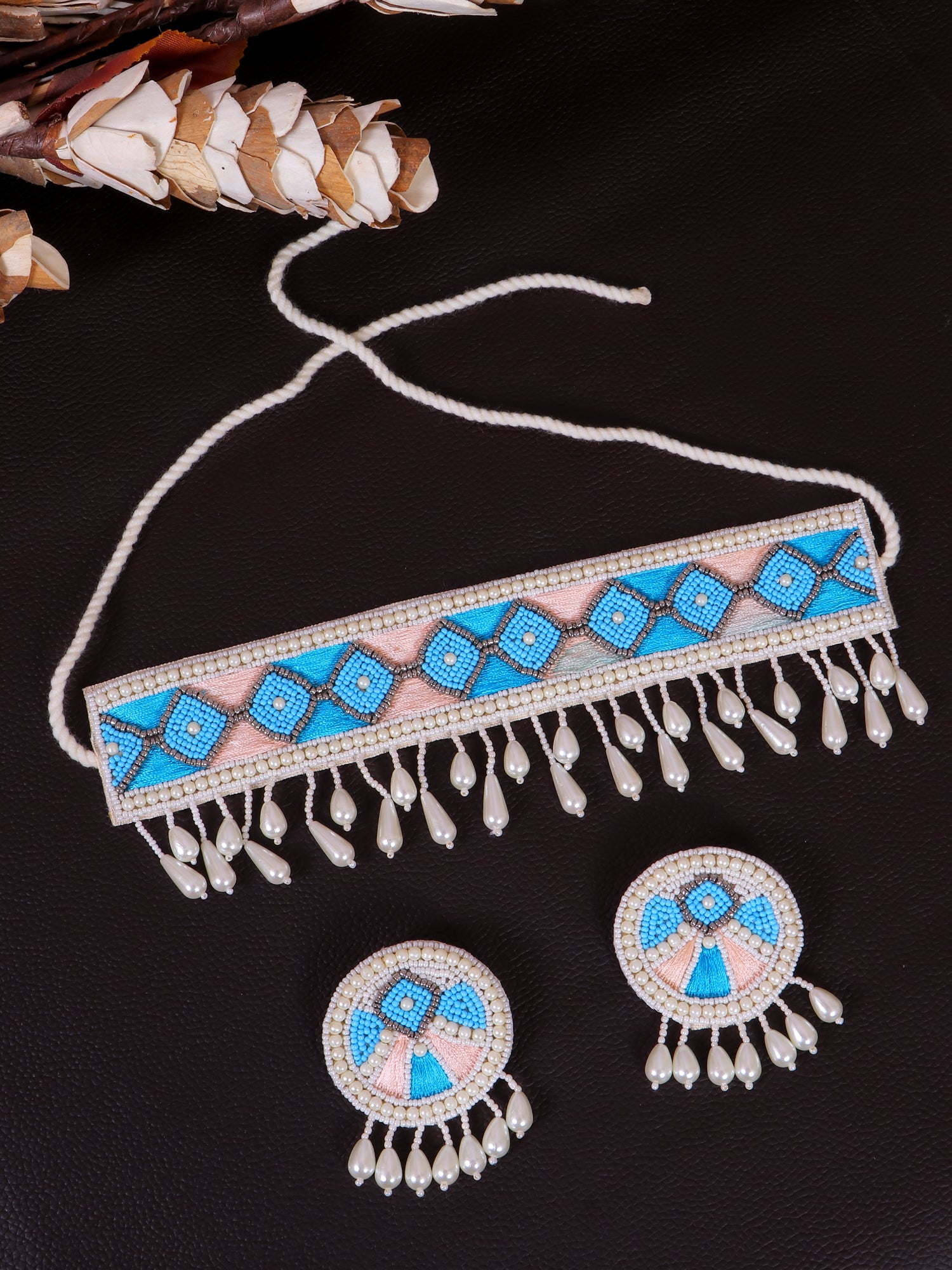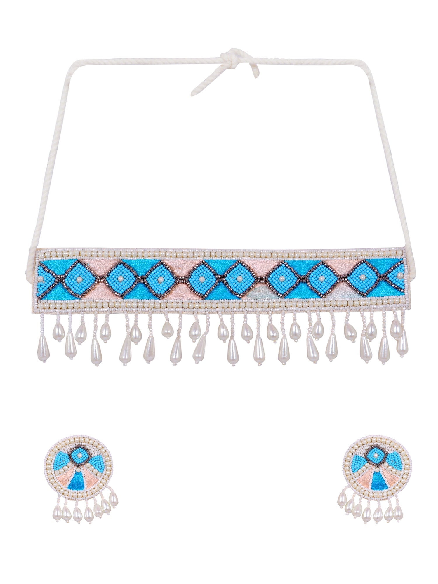 Afina Elegance: Vibrant Blue-Peach Handcrafted Choker Jewellery Set
