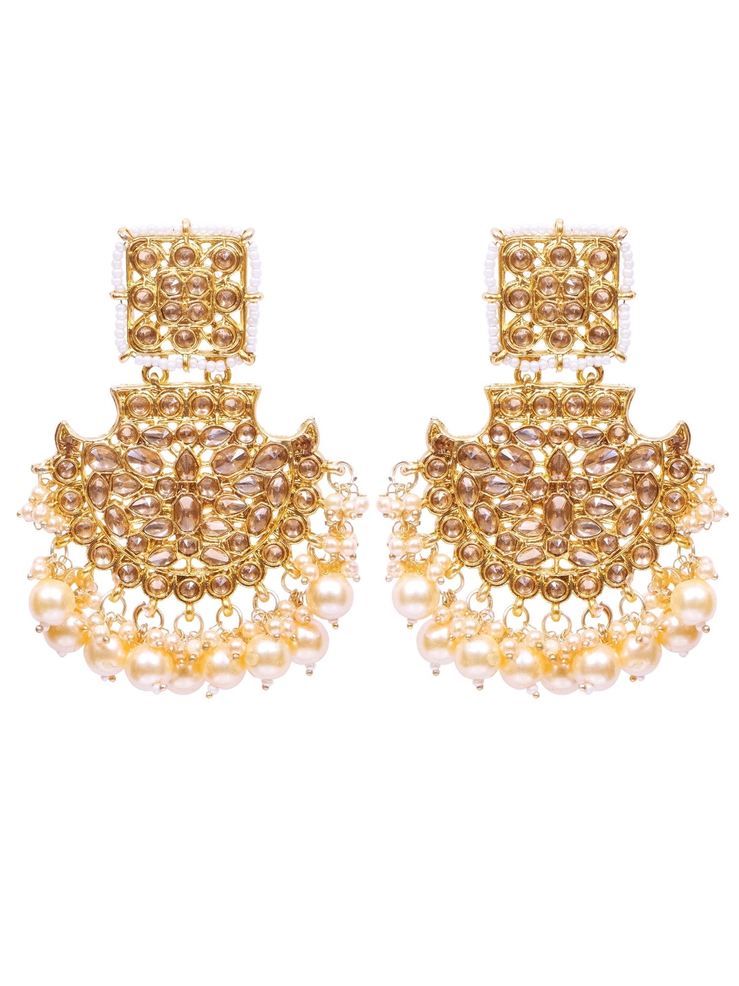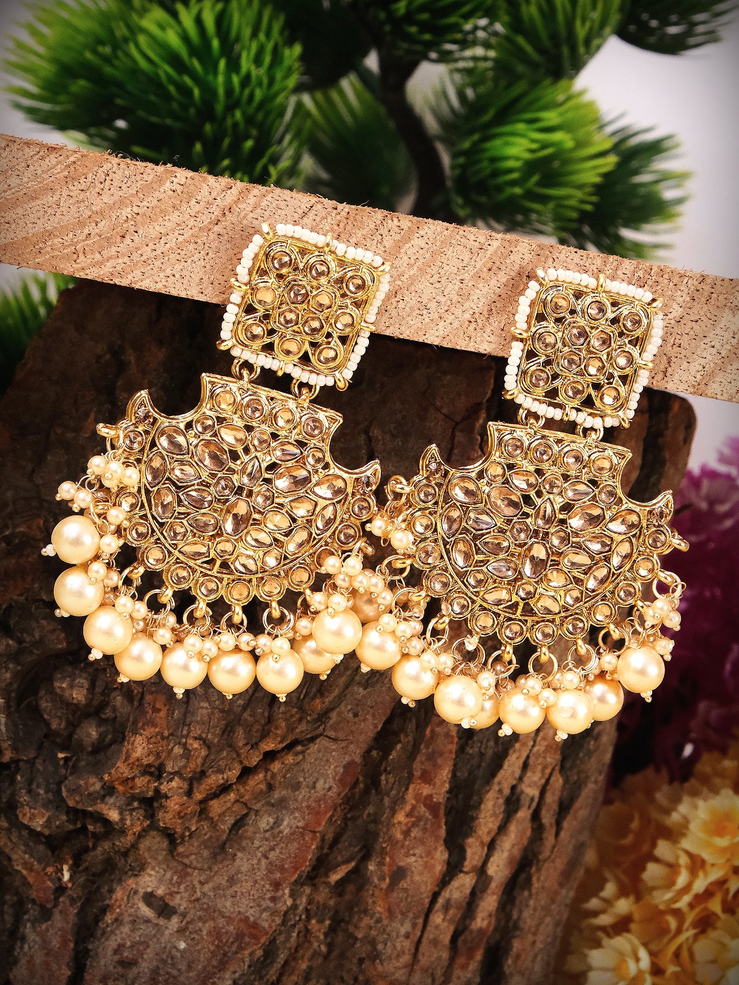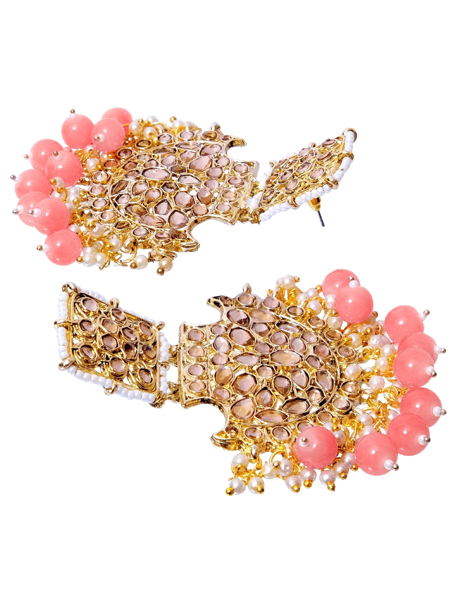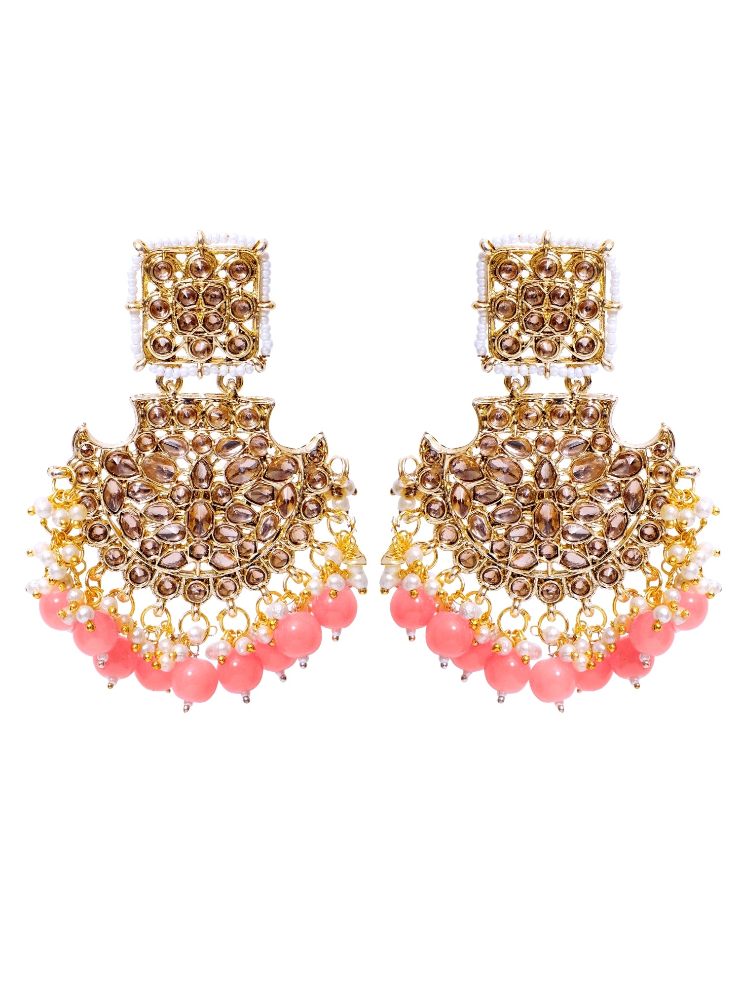 Fashionable Pink Pearl Gold Dangler Earrings for Stylish Women and Girls