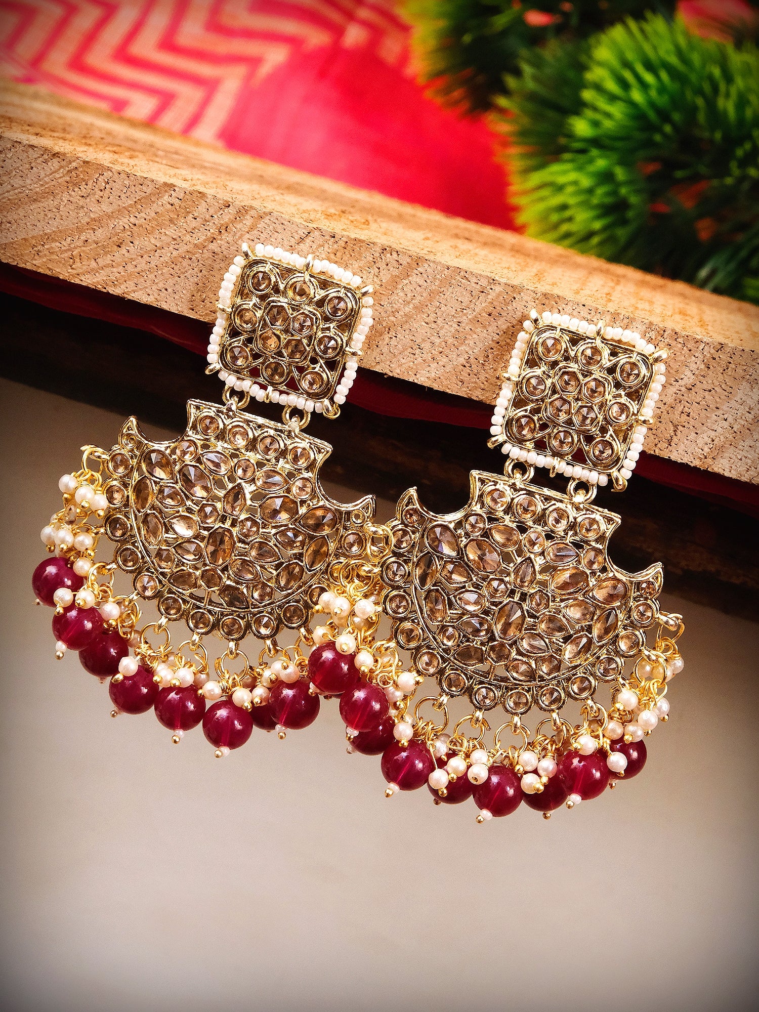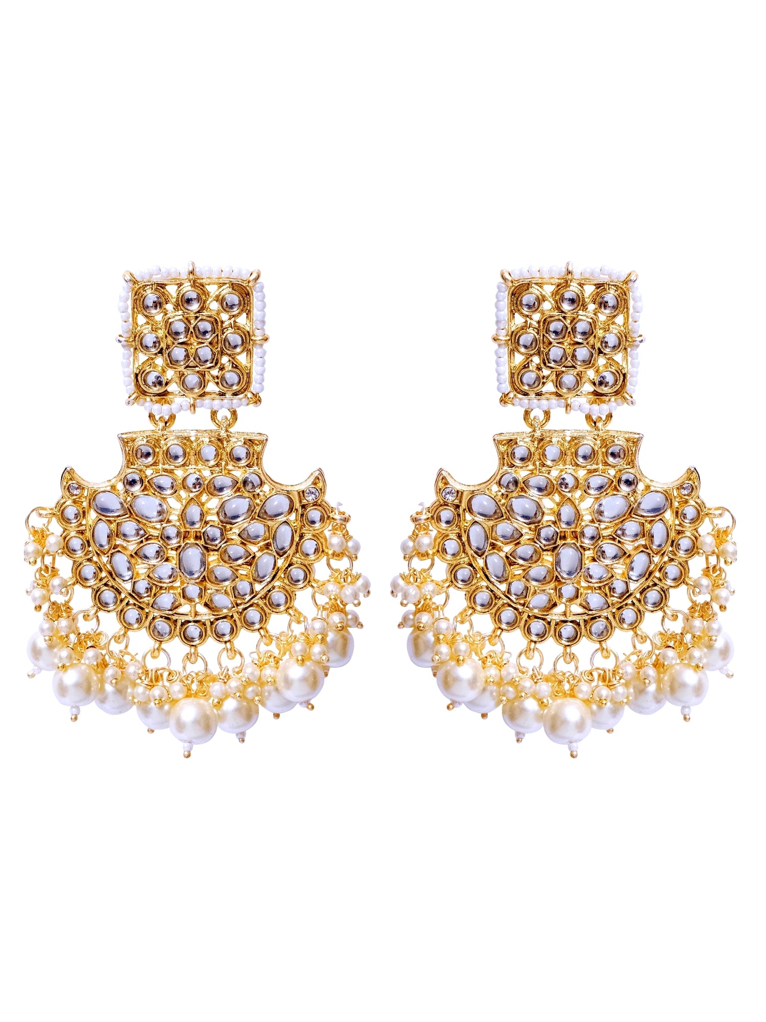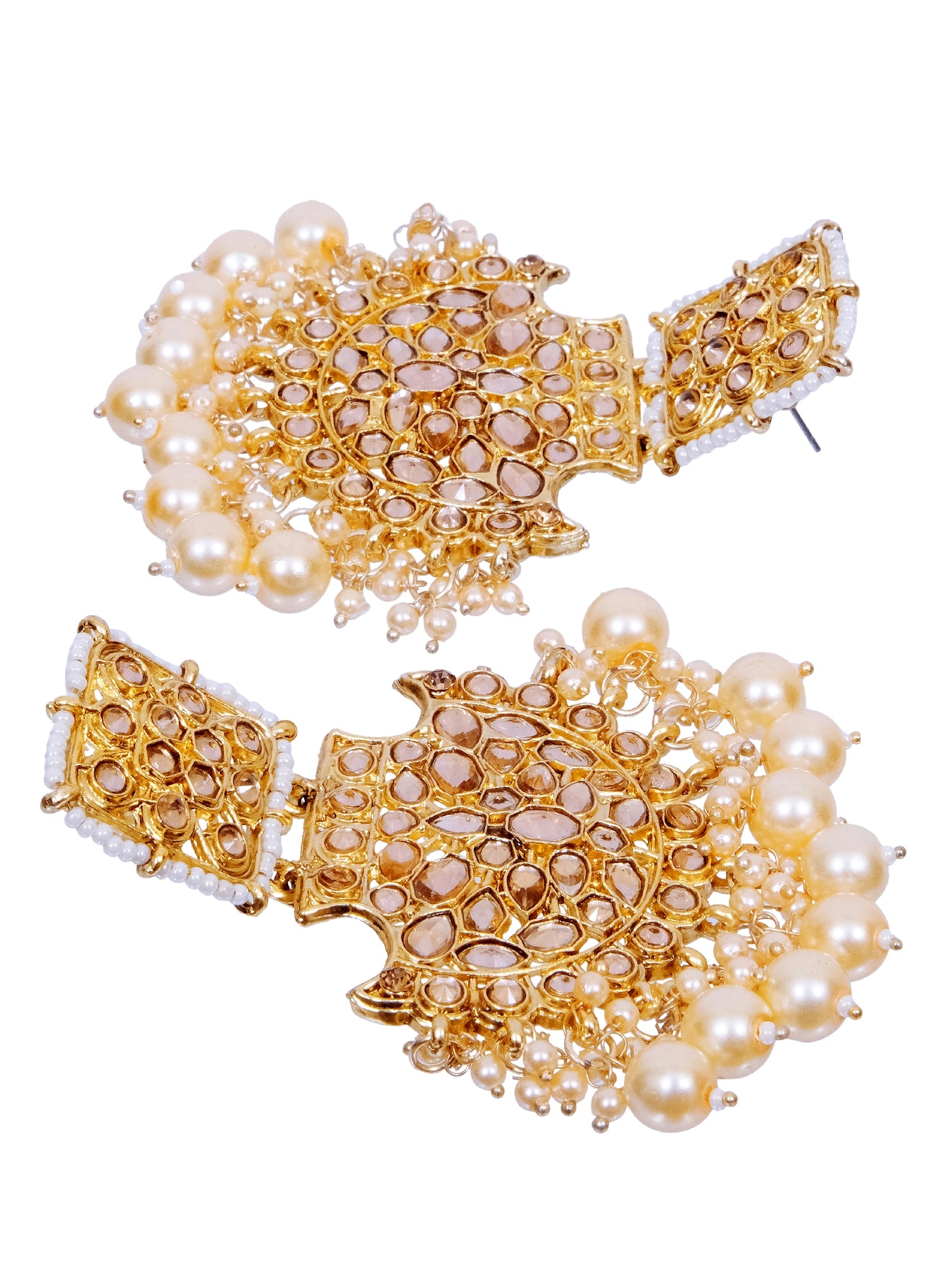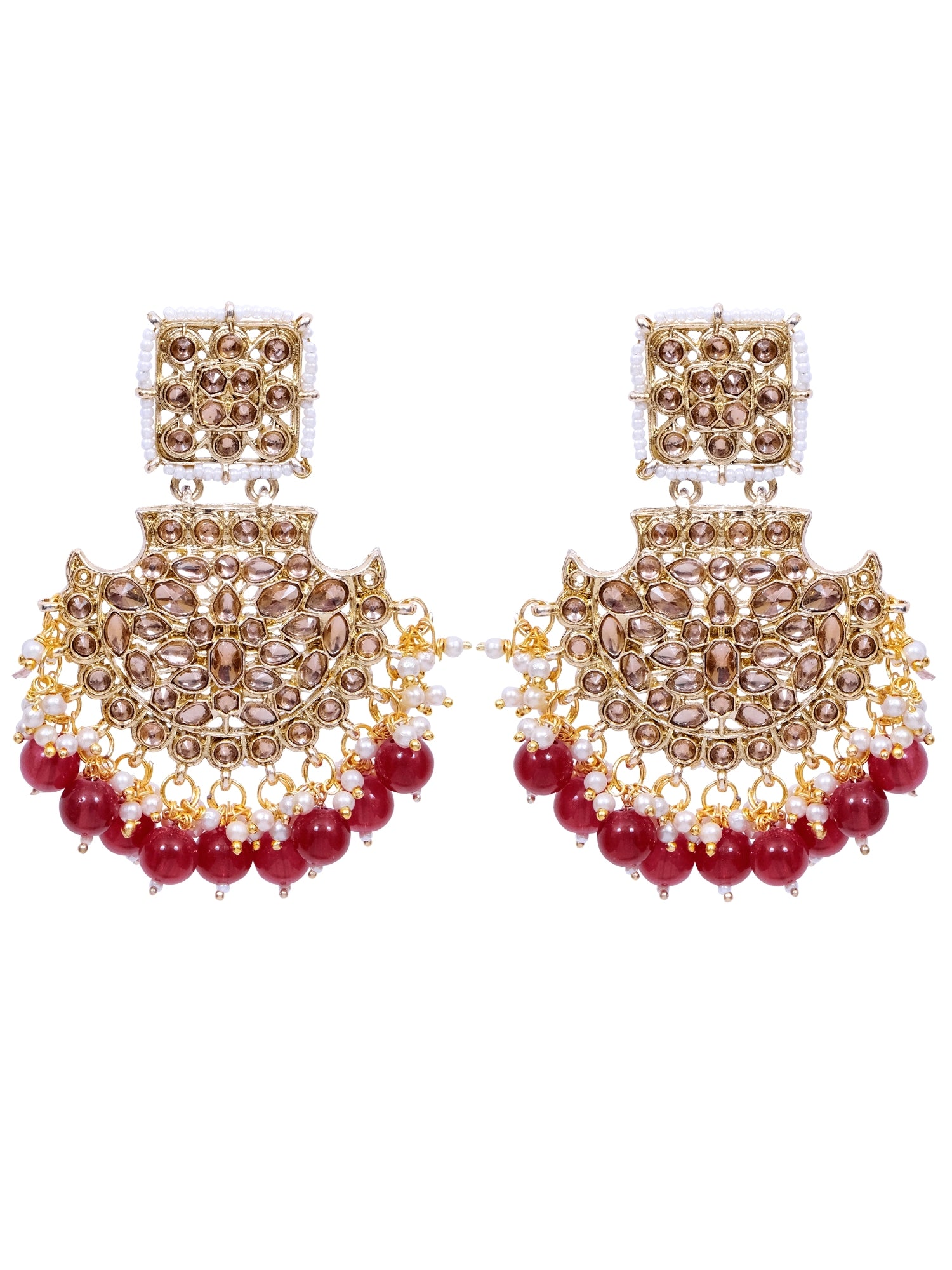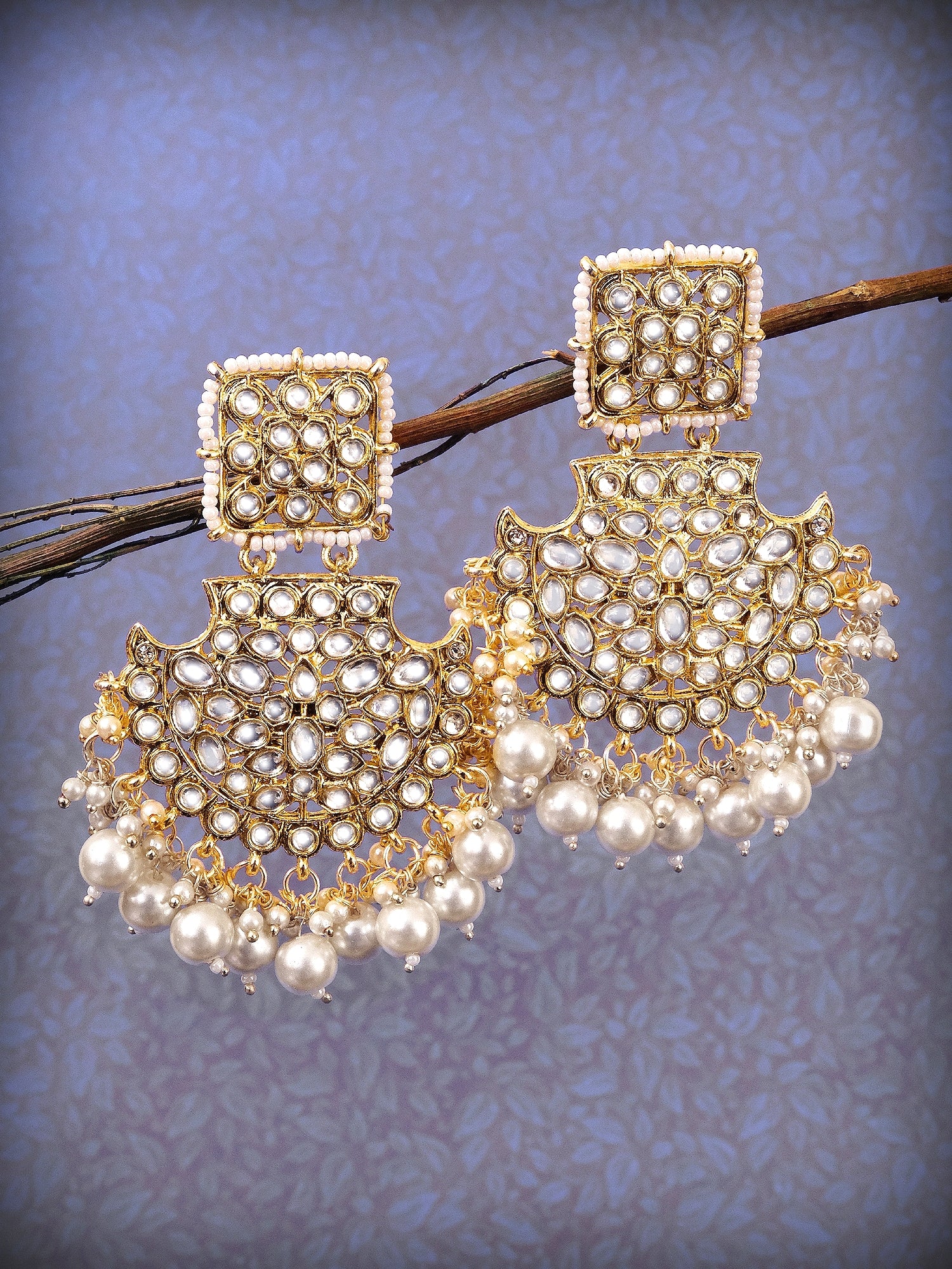 Fashionable Pink Pearl Gold Dangler Earrings for Stylish Women and Girls