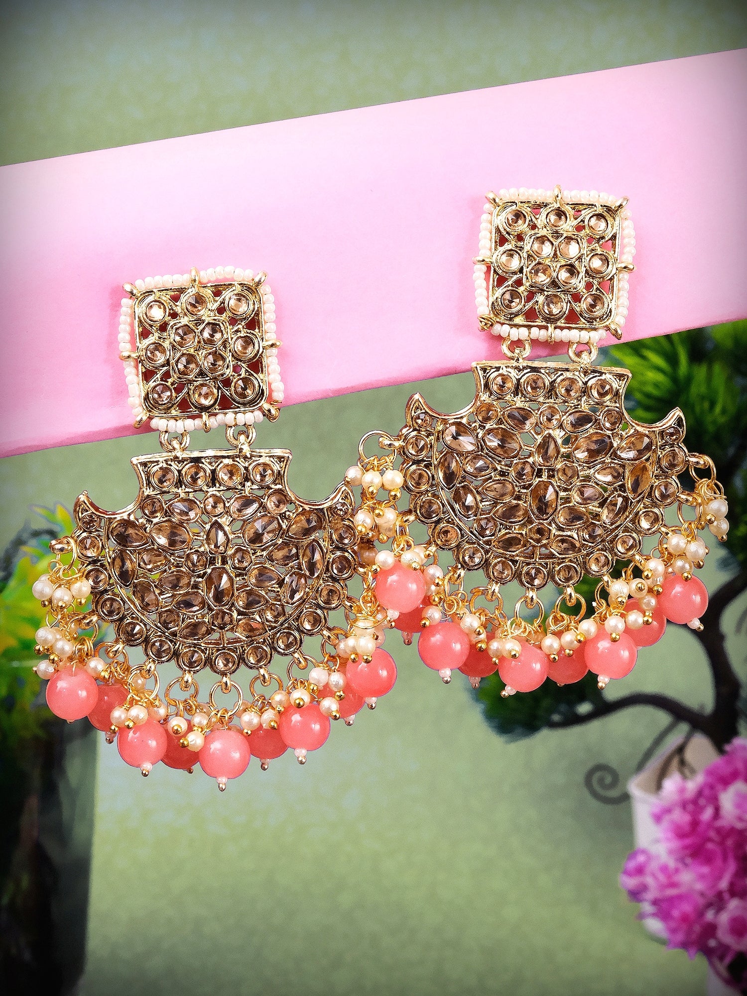 - Fashionable Pink Pearl Gold Dangler Earrings for Stylish Women and Girls