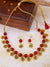 Maroon gold-plated polished alloy necklace and earring set, ideal for women and girls on engagements, anniversaries, festivals, and weddings. Traditional yet modern kundan bridal jewellery set.