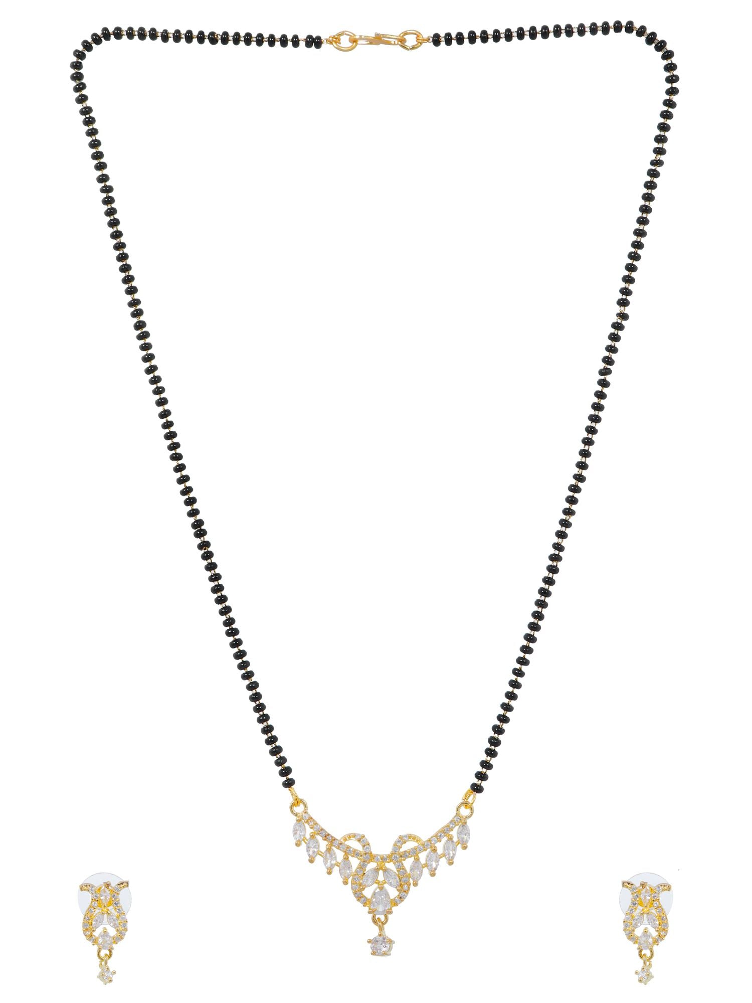 - Antique Gold Plated AD Studded Crown Design Patti Mangalsutra with Black Beads