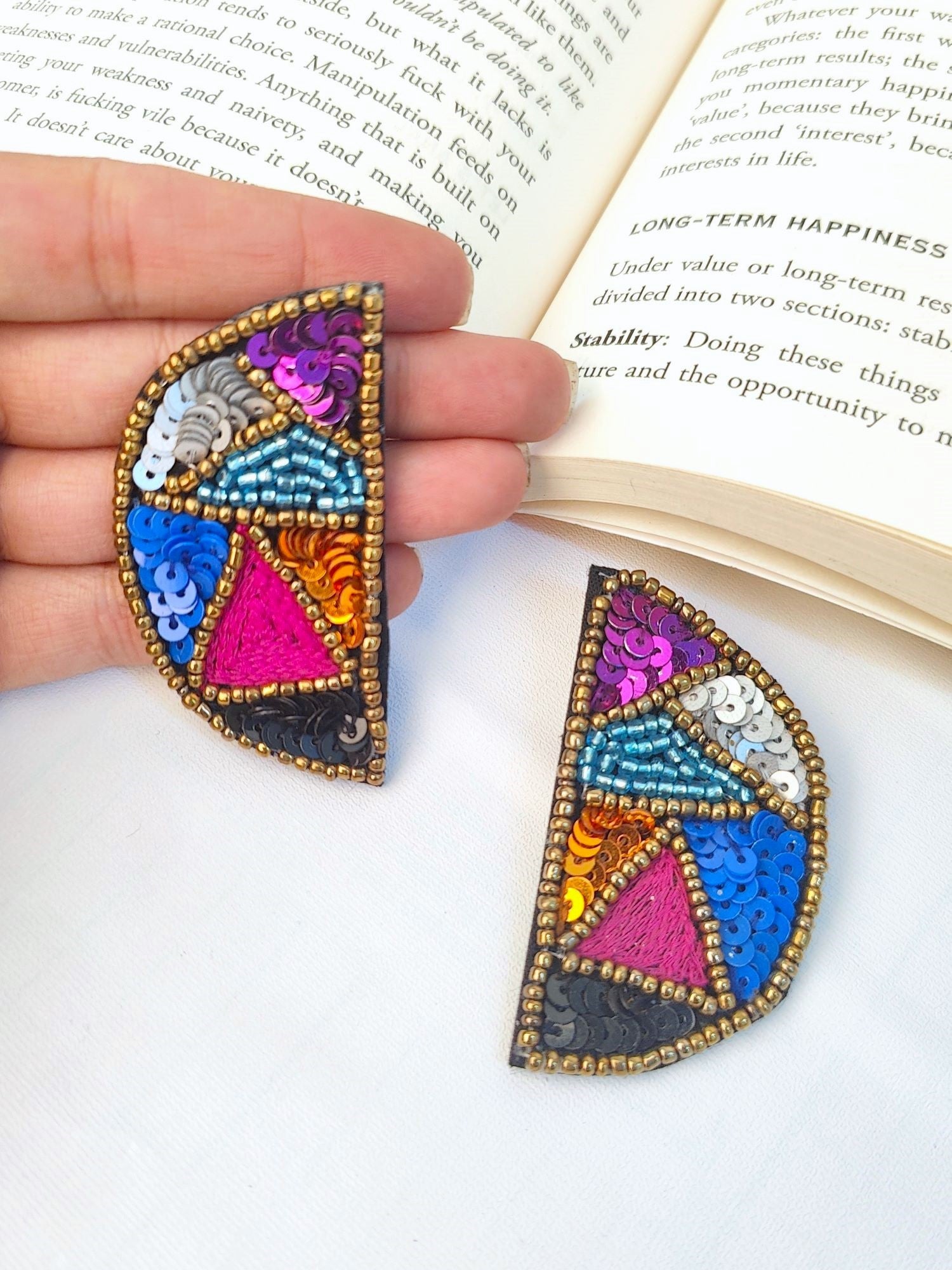 Ardh's Quirky Half-Moon Beaded Embroidery Earrings for Fashionistas