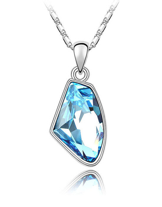 Lustrous Asymmetrical Silver-Plated Necklace with Traditional Crystal Pendant
