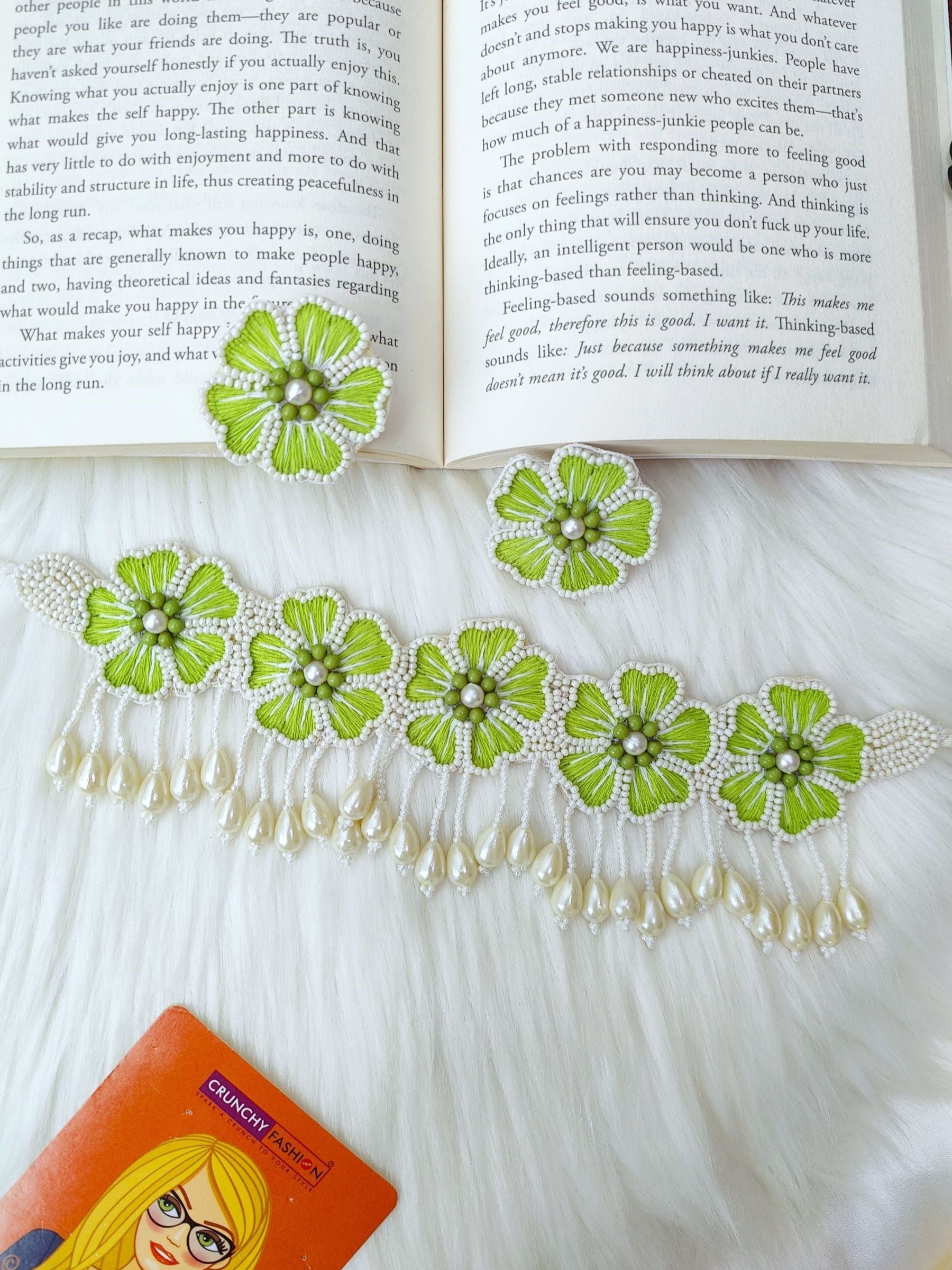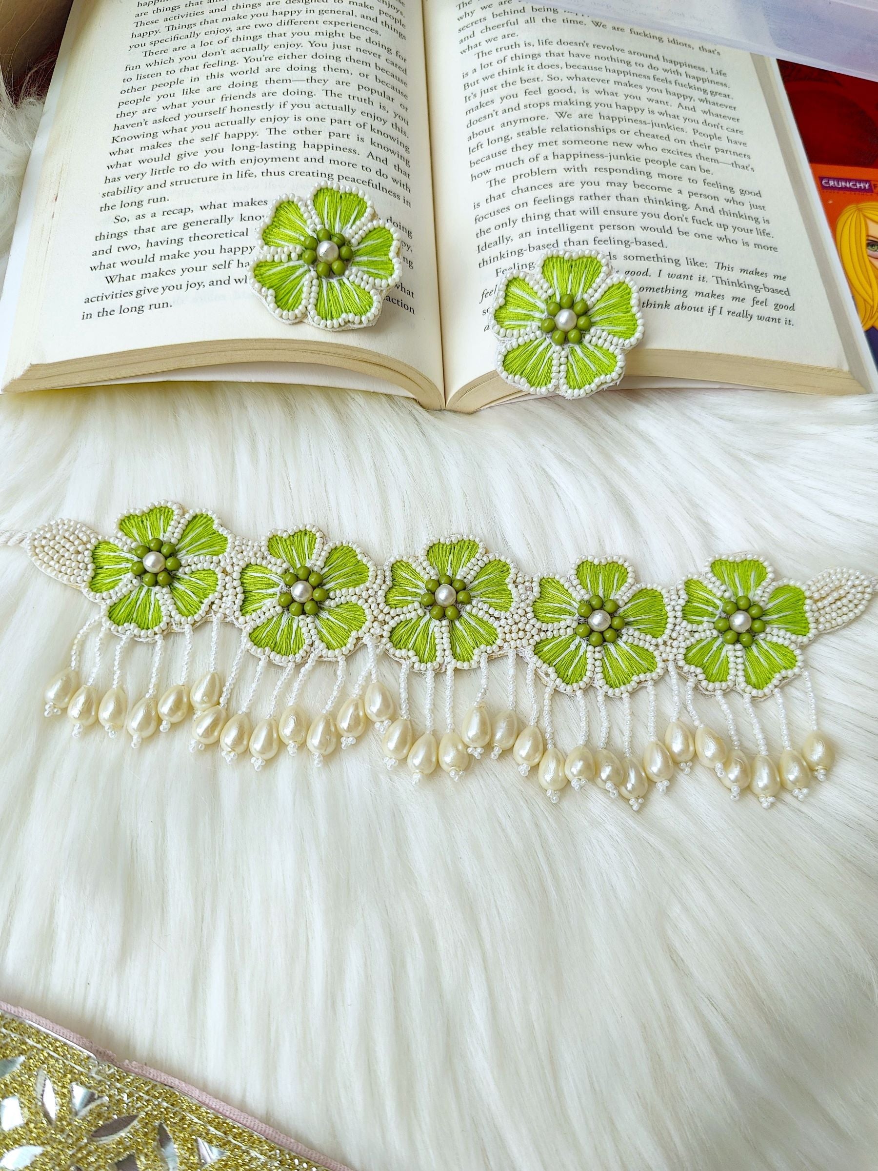 Verdant Blossom: Handmade Beaded Choker Jewellery Set in Green & White